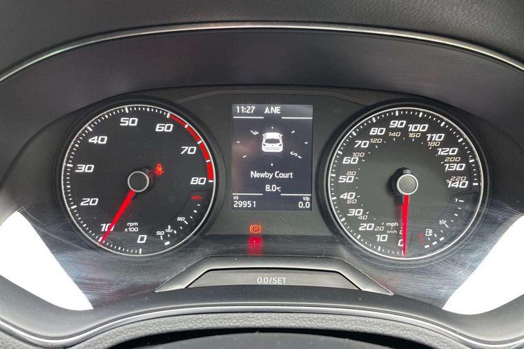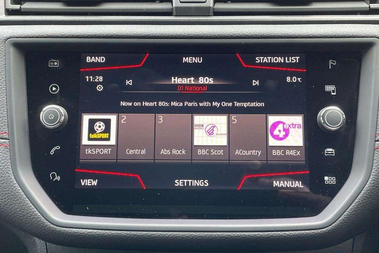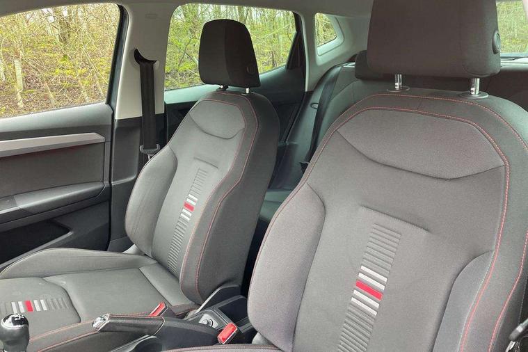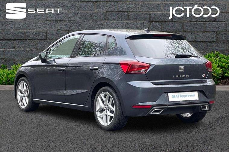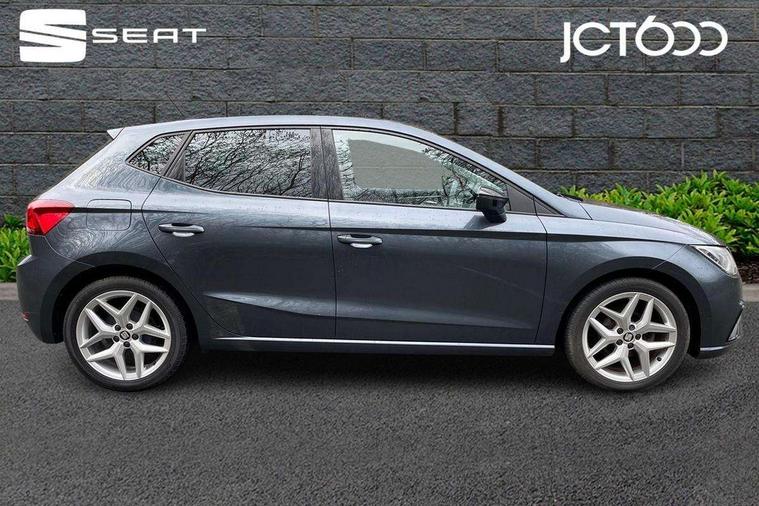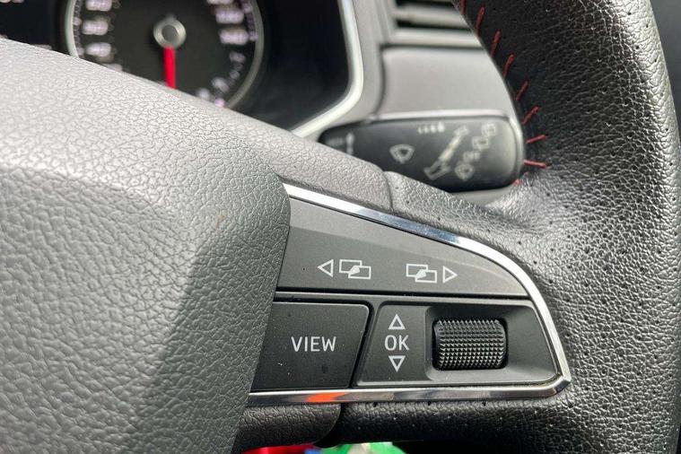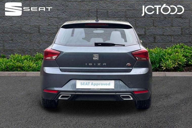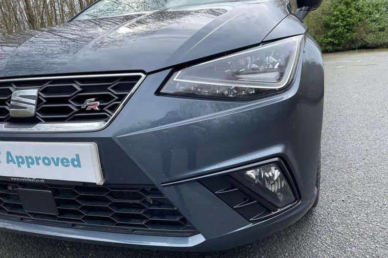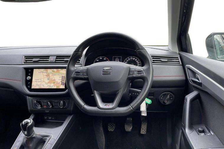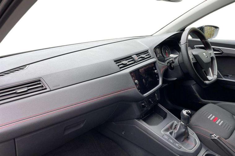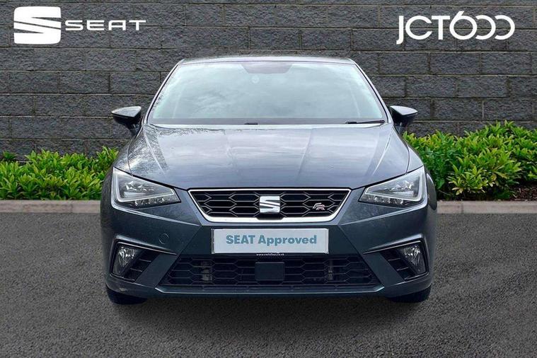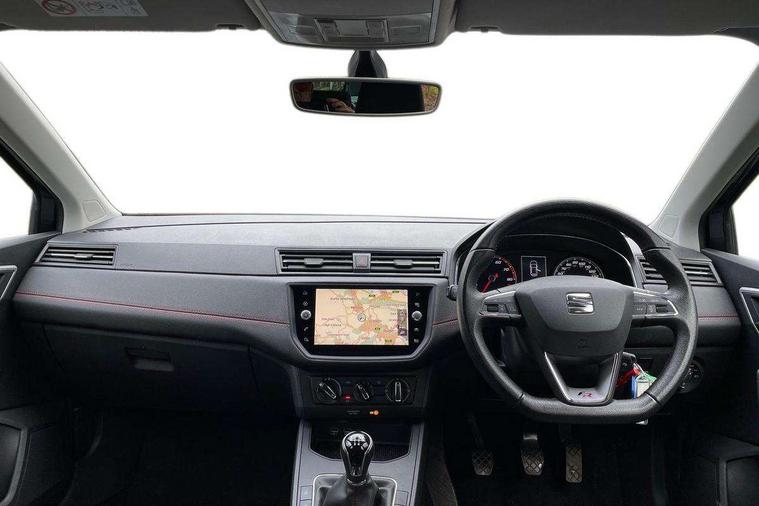 'Lights On' Reminder warning buzzer, Bluetooth Handsfree Phone Connection, Cruise control, Digital clock, Full Link Smartphone Integration with Mirror Link, Apple Car Play, Google Android Auto, Low fuel warning light, Outside temperature gauge, Power Steering, Satellite navigation system with 3D mapping, 8" touch screen, voice control and additional USB port, SEAT Drive profile, SEAT logo boot release, Trip computer, Sports suspension, 6 speakers, Auxiliary input socket, CD player, Digital Audio Broadcast (DAB) Tuner, Radio/MP3 player, SD card slot, SEAT USB media cable, Steering wheel mounted controls, USB port, Anti theft roof antenna, Auto dimming rear view mirror, Automatic headlights, Automatic rain sensing wipers, Body colour bumpers, Body colour door handles, Brilliant black door mirrors, Chrome front grille frame, Chrome grille, Coming/leaving home lighting function, Cornering front fog lights, Dark tinted rear windows, Electric folding door mirrors, Electric front windows, Electric headlight adjustment, Electrically adjustable and heated door mirrors, Exclusive FR rear bumper, Full LED headlights, LED daytime running lights, LED tail lights, Rear fog lights, Twin exhaust pipes, 3 rear headrests, 60/40 split folding rear seat, Air conditioning, Door and steering wheel ice metal decorative inserts, Driver's sunvisor with ticket holder/vanity mirror, Dust/pollen filter, Flat bottomed perforated leather steering wheel with red stitching and FR logo, Front courtesy lights, Front cupholders x 2, Front reading lights, Gear shift indicator, Glovebox, Height adjustable driver's seat, Height adjustable front/rear head restraints, Height adjustable passenger seat, Height/reach adjust steering wheel, Illuminated boot, Instrument lighting with brightness control, Leather handbrake, Multi-colour ambient interior lighting, Nora cloth upholstery, Passenger sunvisor, Rear top tether child seat ISOFIX attachment, Sports seats, Full LED headlight pack - Ibiza, 3 point seatbelts on all 3 rear seats, ABS, Active front headrests, Child locks on rear doors, Curtain airbags, Driver/Front Passenger airbags, ESP+EBA, Front assist (AEB), Front passenger airbag deactivation, Front side airbags, Hill hold control, Multi-Collision braking, Seatbelt warning, Tiredness recognition system, Tyre pressure monitoring system, Electronic engine immobiliser, Locking wheel bolts, Remote central locking + deadlocks, Volumetric alarm with back up horn, Leather dashboard, 17" Dynamic alloy wheels,