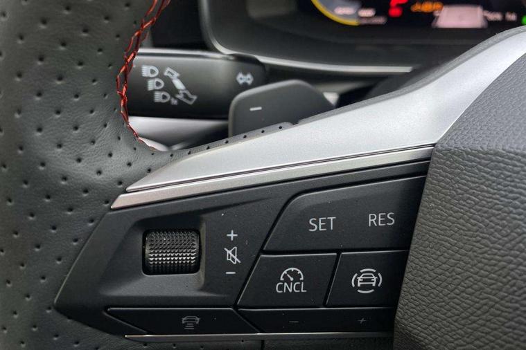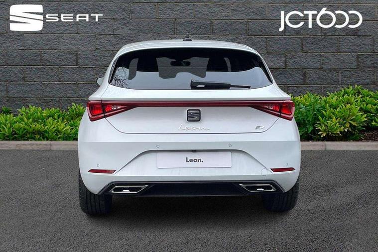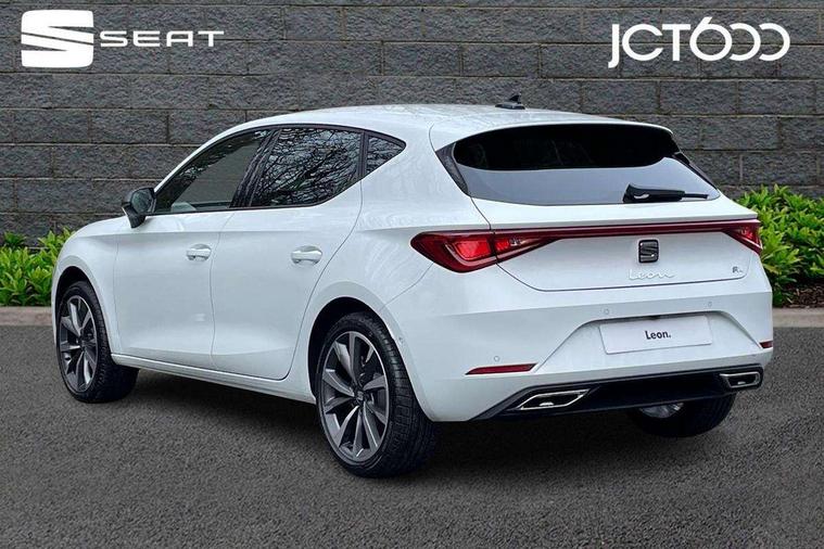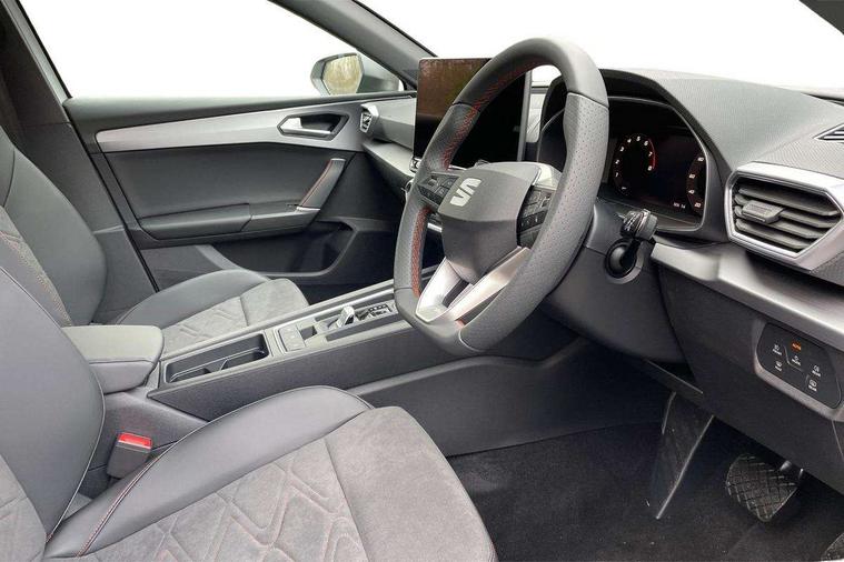 Digital cockpit, E-call, Front assist with forward collision warning braking reaction to vehicles, pedestrians and cyclists, Full link smartphone integration with Mirror Link, wireless Apple CarPlay and wired Google Android Auto, Lane assist, Lockable tailgate, Park assist (inc front/rear parking sensors), Power assisted speed sensitive electro-mechanical steering, Rear view camera, RPM, trip computer, outside temp gauge, instrument light brightness, low fuel warning light, lights on reminder, gearshift indicator, SEAT drive profile with 4 modes (Eco/Normal/Sport/Individual), throttle response and gearshift mode, Service interval indicator, Start/stop system with regenerative braking, Sports suspension, XDS electronic differential lock and dynamic traction support, 7 speakers, Auxiliary input socket, Auto dimming rear view mirror, Body colour door handles, Body coloured bumpers, Dark tinted rear windows, Door mirror LED indicator lights, Dynamic headlight range control, Electric adjustable/heated/folding door mirrors with memory, Electric front/rear windows, FR sports bumper, Illuminated front door sill, LED front fog lamps, LED Headlights with dynamic turn signals, LED tail lights and rear fog lights with rear coast to coast lighting, Rear side wing doors, Rear wash/wipe, Separate daytime running light with automatic headlight control and coming home feature, Third brake light, Welcome light silhouette from exterior mirrors, Windshield wiper intermittent control with light/rain sensor, 12v power point in centre console, 3 seat bench in 2nd row, 60/40 split rear bench seat with armrest, Ambient lighting with glovebox, footwell and single monocolour, Black headlining, Dust/pollen filter, Folding boot cover, Four x USB Type C ports, Front and rear height adjustable headrests, Front and rear reading lights X 4, Front centre armrest, Front seatback storage pockets, Heated front seats, Height/reach adjust steering wheel, Interior wraparound lighting (FR), ISOFIX points in outer rear seats with top tether anchorage points, Luggage tie-down hooks, Lumbar adjustment for front seats, Manual driver seat with memory and height adjustable passenger seat, Microsuede cloth upholstery, Single front passenger seat, Sunvisors with covered illuminated mirror, Three zone climate control, Media system plus with navigation - Leon, 3 point seatbelts on all rear seats, ABS, Brake control system - ESC and brake booster, Child proof door locks, Driver and front passenger airbags with front passenger airbag de-activation, front side and curtain airbags, Electronic parking brake, Extended safety system - seat belt tensioner, window closure and hazard lights, Hill hold control, Rear disc brakes, Seat belt reminder for front and rear seats, Tiredness recognition system, driver alert system, Tyre pressure monitoring system, Anti theft alarm system with interior monitoring in cab, backup horn and towing protection, KESSY Go (Keyless start), Locking wheel bolts, Wireless phone charging, Chrome interior detailing, 18" Performance machined alloy wheels with 92Y tyres, Tool kit,