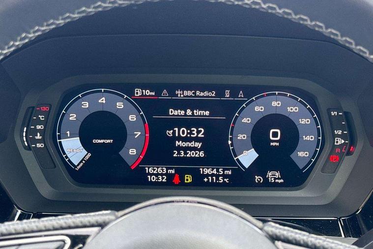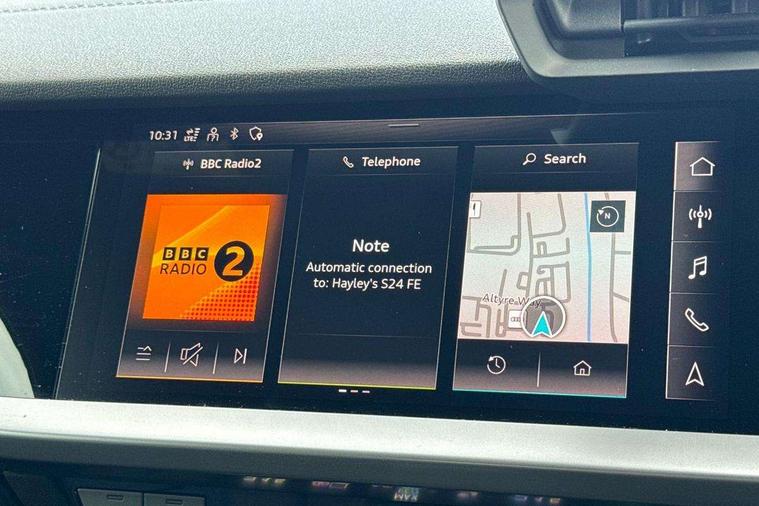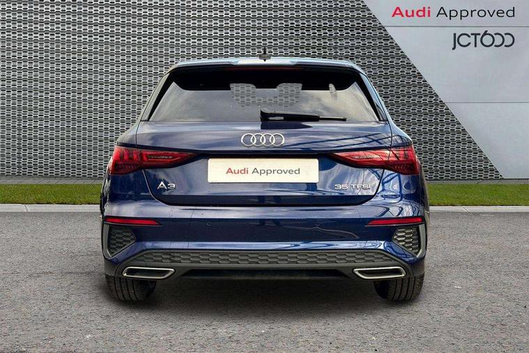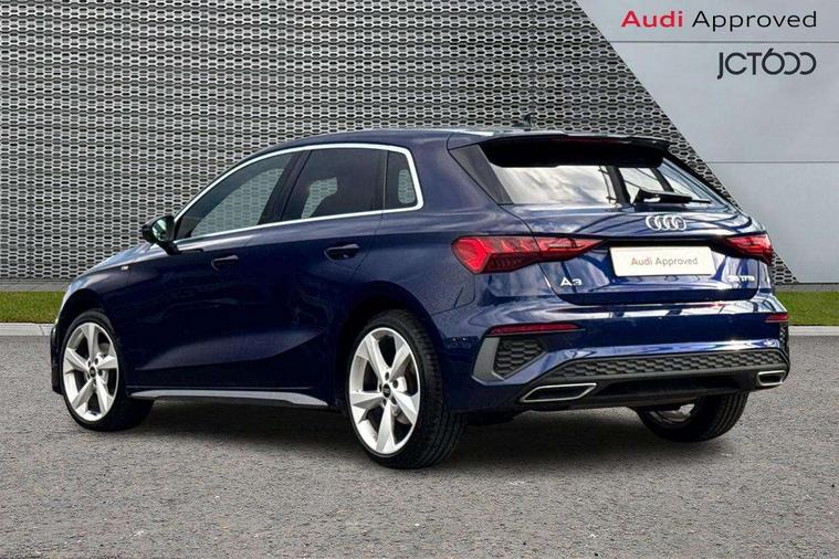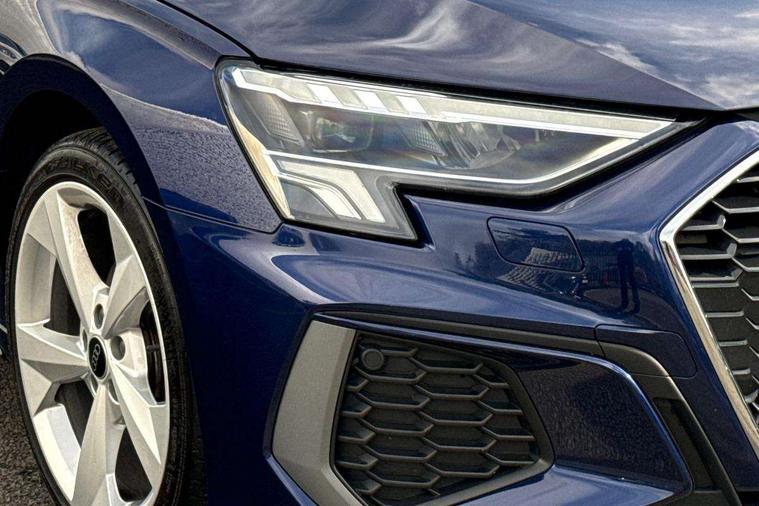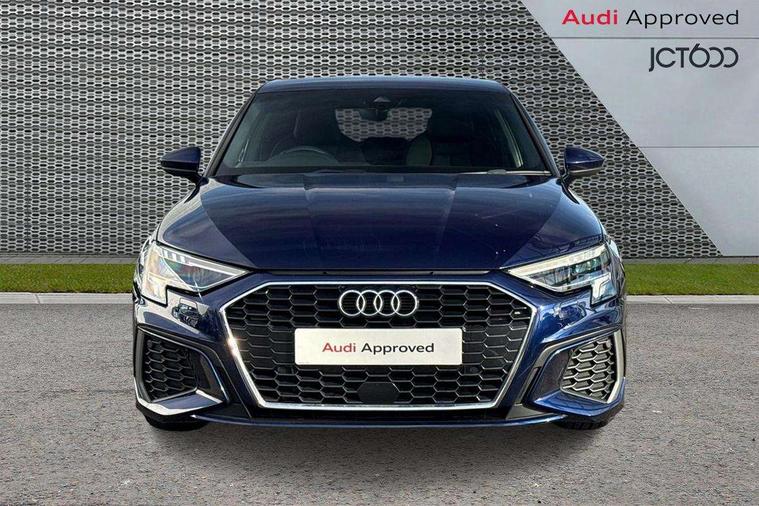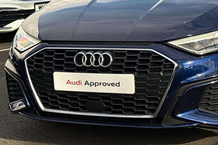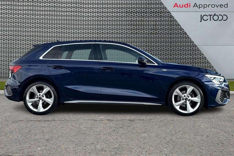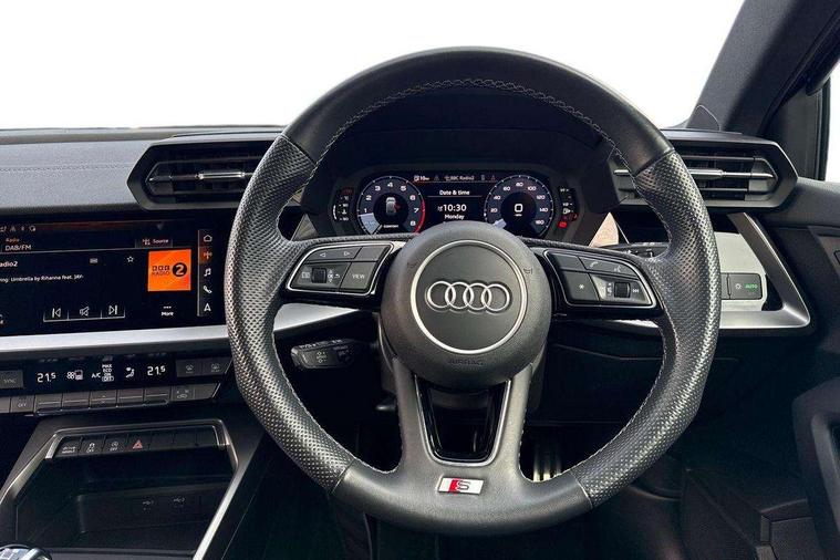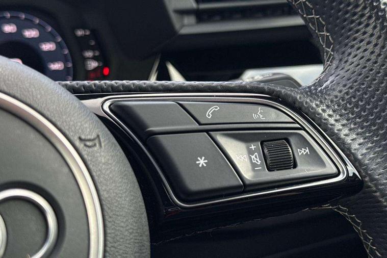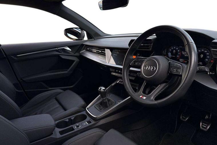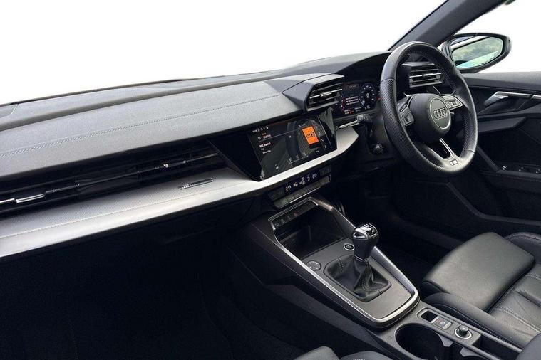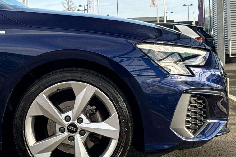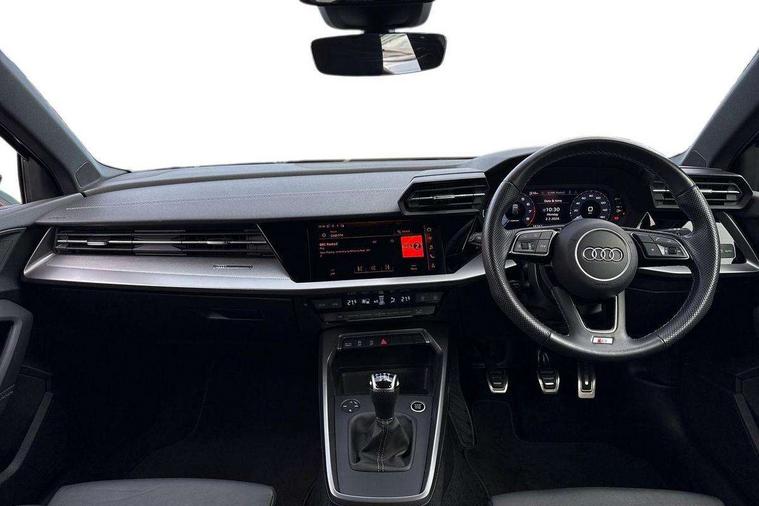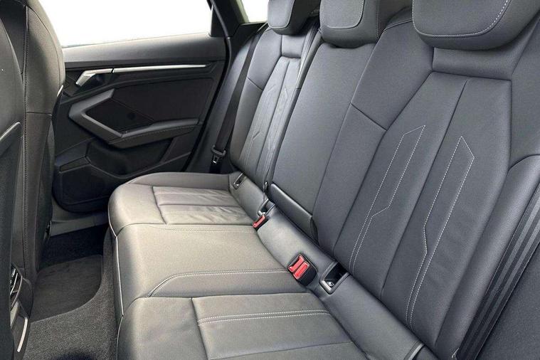 Audi drive select (Auto, Comfort, Dynamic, Efficiency and Individual), Audi smartphone interface, Audi Virtual Cockpit - 10.25" digital and colour instrument cluster, Automatic start/stop system with recuperation, Bluetooth interface, Collision avoidance assistant, Cruise control, e-Call (emergency call), Electromechanical power speed sensitive steering, Lane departure warning system, MMI Navigation Plus with high resolution 10.1" colour touch screen display, Rear parking sensors, Service indicator, Trip computer, Voice control system with natural language interaction, Sports suspension, 2xUSB-C connection with data and charging functions, 6 passive loudspeakers, DAB Digital radio, 3rd brake light, Acoustic glass windscreen, Aluminium window trim, Auto dimming frameless rear view mirror, Body colour exterior mirrors, Electrically adjustable/heated/folding/auto dimming door mirrors with integrated LED indications + kerb view function for passenger side, Front electric windows, Illuminated aluminium inserts front door sills with S logo, LED daytime running lights, LED headlights with LED rear lights and dynamic rear indicators, Light and rain sensors, Privacy glass - dark tinted rear window, rear door and side windows, Rear electric windows, Rear side air outlets in grained matt black, Rear side wing doors, Rear wiper, S line bumpers, S roof spoiler, 12V socket and storage compartment in front centre console, 3 seat bench in 2nd row, 3 spoke leather multifunction steering wheel, 40/20/40 split folding rear seat bench with cupholder, Black cloth headlining, Dual zone electronic climate control, Front and rear centre armrest in leather, Front and rear headrests, Front/rear floor mats, Height and reach adjustable steering wheel, Illuminated vanity mirror, Interior lighting - glove compartment light and right hand side, Luggage compartment floor covering, Manual boot compartment lid, Manually adjustable front seats, Seat side bolsters, Single front passenger seat, Stainless steel pedals and front footrest in black, Twin leather upholstery with front sports seats S embossed logo, Aluminium interior elements pack - A3 Sportback, LED interior lighting pack - A3 Sportback, S line styling pack - A3 Sportback, 3x3 point rear seat belts, Audi pre sense front, Driver and front passenger airbag with passenger airbag deactivation, Electronic Stabilisation Control (ESC) including ABS, ASR and EDL, First aid kit with warning triangle and 2 safety vests, Front side airbags with head airbags and interaction airbag, Pre-sense front with pedestrian and cyclist detection, Seatbelt monitoring, Tyre pressure loss indicator, Anti theft alarm, Anti-theft wheel bolts, Electronically operated child lock, Immobiliser, Remote control central locking, Accent surfaces in the dashboard and centre console in platinum grey silk effect paint finish, Dark spectrum aluminium inlays,