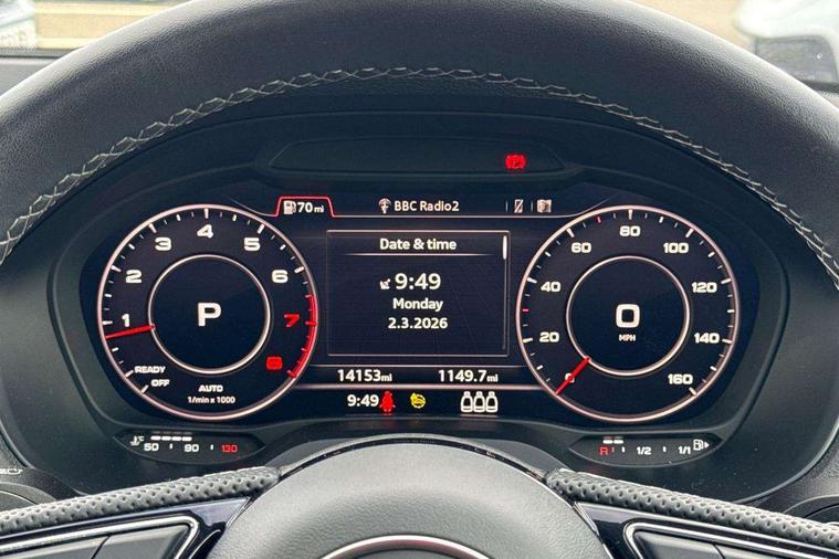 3D map display, Audi connect navigation and infotainment includes innovative services, Audi connect remote and control connects your vehicle to your smartphone, Audi drive select: S tronic - power steering assistance + engine + gearshift (modes: comfort, auto, dynamic, efficiency, individual), Audi smartphone interface - Apple carplay/Android Auto, USB connect, 2xSDXC card readers, voice control for navi, telephone, music and 3rd party apps, Audi virtual cockpit, Automatic start/stop system with recuperation, Bluetooth interface includes bluetooth audio streaming, Cruise control, E-call, Jukebox hard drive memory for music (10GB), MMI navigation plus with 8.3" colour MMI screen and MMI touch, Natural voice recognition, Power operated tailgate, Progressive steering, Rear parking sensors, Sport suspension, 6 passive loudspeakers, DAB Digital radio, Auto dimming rear view mirror, Black window trims, Body colour door mirrors, Electrically adjustable, folding, auto dimming and heated door mirrors with integrated LED side indicators, Front windscreen with grey tinted sunband, LED daytime running lights, LED headlights with dipped beam, high beam, position lights, indicators, LED rear lights, LED third brake light, Privacy glass - dark tinted rear and rear side windows from B-pillar backwards, Rear side wing doors, Rear wiper, S Line badges on the front wings, S Line body styling - front and rear bumpers, side skirts, radiator grille, rear diffuser insert and front air intakes, Variable front intermittent wipers, Wheel arch trims in manhattan grey, 12v socket in front, 3 seat bench in 2nd row, 3 spoke multi-function leather steering wheel with S badging, 4-way electric lumbar support for front seats including manual seat height adjustment for both front seats, 60/40 split folding rear seat bench, Black carpets, Black cloth headlining, Front and rear head restraints, Front centre armrest, Front sport seats, Front/rear floor mats, Height/reach adjust steering wheel, Illuminated door sill trims with S logo, ISOFIX child seat mounting in front passenger and rear outer seats, Manual air conditioning, Single front passenger seat, Stainless steel pedals, Tool kit, 3x3 point rear seatbelts, 6 airbags - Front, curtain and front side airbags, Electromechanical parking brake, Electronic stabilisation control including ABS, ASR and EDL, Front passenger airbag deactivation, Hill hold assist, Pre-sense front with pedestrian recognition, Seatbelt monitoring, Tyre pressure warning light with visual and acoustic warning, Warning triangle and first aid kit, Anti theft alarm, Anti theft wheel bolts, Electronically operated child locks, Remote central door locking, Aluminium interior element, Black dashboard, Matt brushed aluminium trim inlays,