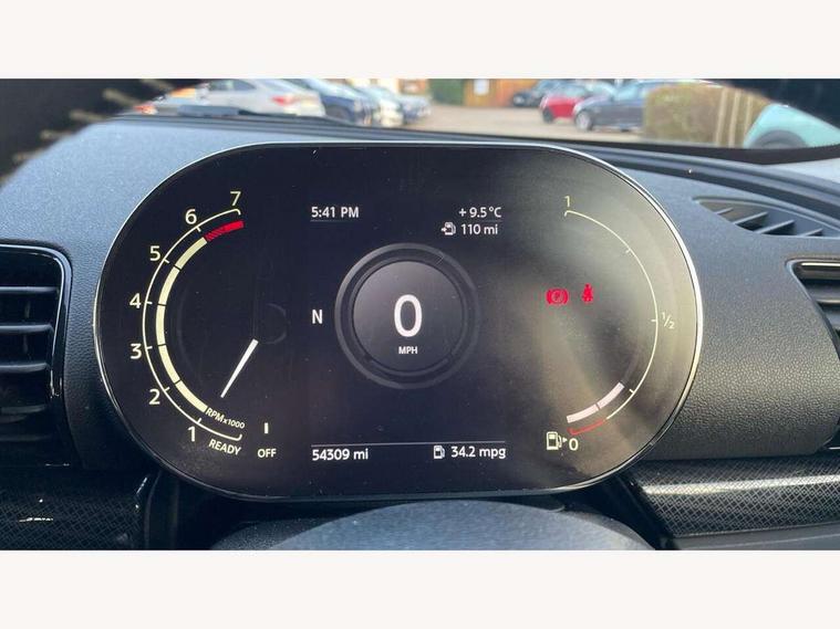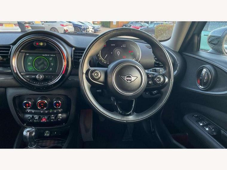 Active Guard incl speed limiting and lane departure functions with auto steering, and front collision warning with brake intervention, Automatic start/stop function with brake energy recuperation, Compatible mobile phone bluetooth with audio streaming, Digital cockpit, Electro-mechanical speed dependant steering assistance, Instrument cluster, Mini E-call, MINI TeleServices, On board computer, 6 Speed manual transmission including gear change indicator display, Double Vanos system, Fully variable valve control, High precision injection, Performance Control, FM tuner and DAB digital radio, Bonnet scoop, Chrome border honeycomb structure radiator grille with S badge, Chrome fuel filler cap, Dynamic brake lights, Electric windows, Heated rear window, Heated windscreen washer jets, LED headlights with closed ring as daytime driving lights, LED rear light with union jack design, Metal door sill strips with Cooper S imprint, Model logo, Model logo on rear doors, Rain sensor with auto headlights, Rear fog lights, Rear window wiper, Side scuttle panel with integrated indicator, Split rear doors, Sun/heat protection glass, Twin exhaust tailpipe, White indicator lenses, 12V Accessory socket in centre console, 3 spoke sport leather steering wheel + limiter function and audio controls, 360L luggage compartment capacity, 4 lashing eyes in luggage compartment, 60/40 split folding rear seat, Chrome interior highlights, Cupholders, English handbook, Front and rear head restraints, Glove compartment, Headliner with grab handles and clothes hooks, Height and length steering column adjustment, Interior lighting with 12 basic colours selectable via toggle switch in roof, Isofix rear child seat preparation, Leather gearshift lever and handbrake gaiters, LED reading lights, vanity mirror lights, front foot well light and spotlight on front seats, Manual air conditioning, Mechanical seat adjustment, driver seat height adjust, forward/back and front seats backrest, Multifunction steering wheel, Storage compartments in doors, Sunvisors with vanity mirrors, Toolkit, Excitement pack - Clubman, Navigation pack - Clubman, 2 tone horn, 3 point seatbelts on all seats, 6 Airbags - front, side, head and seat belt tensioners, Anti-lock braking system (ABS), DSC - Dynamic Stability Control, Electronic handbrake, Front and rear disc brakes, Tyre pressure monitoring system, Alarm system with tilt sensor, monitoring doors, bonnet interior and tailgate, Auto drive away locking, Deadlocking function, Electronic vehicle immobiliser, Locking wheel bolts, Start/stop toggle with keyless go, Tyre repair kit,