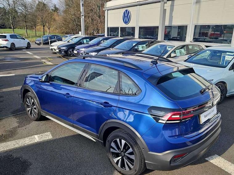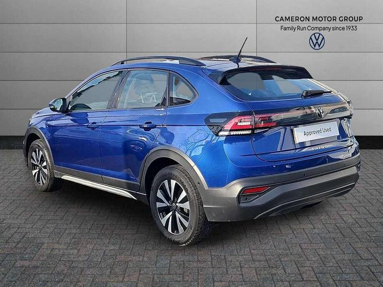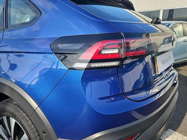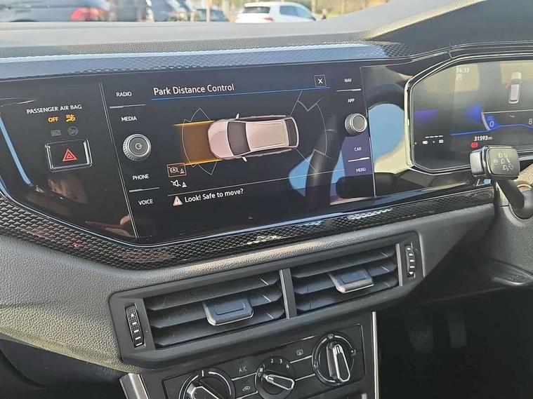Driver alert system, e-Call (emergency call), Power Steering, Travel assist including emergency assist, Washer fluid level indicator, Wireless Charging including Bluetooth, Start-stop system with battery regeneration (recuperation - energy recovery during braking), WeConnect plus, Ambient lighting with logo projection, Aspherical driver's exterior mirror, Auto headlights, Body coloured bumpers, Body coloured exterior mirror housings and door handles, Electric windows, External USB type C socket and charging sockets, Front fog lamps with cornering function, Headlight range control, Heat insulating glass windscreen, LED headlamps, LED rear combination lamp, LED third brake light, Left convex exterior mirror, Power folding adjustable/heated exterior mirrors and front passenger exterior mirror lowering function, Rear fog light on one side, reversing light on both sides, Rear side wing doors, Rear wash/wipe with intermittent wipe setting, 'Slash/ Austin' Cloth upholstery, 12V socket in centre console, 2 front reading lights, 3 rear head restraints, 3 seat bench in 2nd row, Black carpets, Child seat anchor for child seat system i-Size, 2x top tether and child seat anchor in front on front passenger side, Door and side trim panels in titan black, Driver and front passenger seat height adjustment, Front centre armrest, Handbrake lever handle in leather, Height and reach adjustable steering wheel, Leather trimmed gear knob, Leather wrapped multifunction steering wheel, Luggage compartment floor, Luggage compartment light, Lumbar support for driver's and front passengers seat, Seat covers in titanium black, Single front passenger seat, Split folding backrest with centre armrest and unsplit rear seat bench, Storage compartment under front seats, Sun visors with illuminated vanity mirrors, Chrome Package - Taigo, Drivers assistance pack - Taigo, Light and Sight pack including High beam assist - Taigo, 2 x 3-point seatbelts/outer rear seats with ECE label, 3-point seat belts in front with pretensioner and height adjustment, 3-point seatbelt for centre rear seat, Driver and front passenger airbags with front passenger airbag de-activation, front side and curtain airbags, Driver and front passenger safety-optimised head restraints, Electronic stability control, Extended and predictive pedestrian/ cyclist protection, Front and rear disc brakes, Front curtain and side airbags with center airbag, Hill start assist, Manual rear child locks, Single tone horn, Tyre pressure loss indicator, Anti-theft alarm system with interior monitoring, backup horn, and towing protection, Anti-theft wheel bolts, Lava stone black gloss/matt decorative inserts in dash and front door panels, Low rolling resistance tyres,