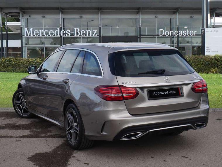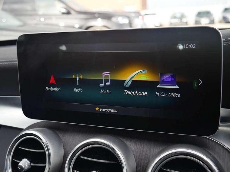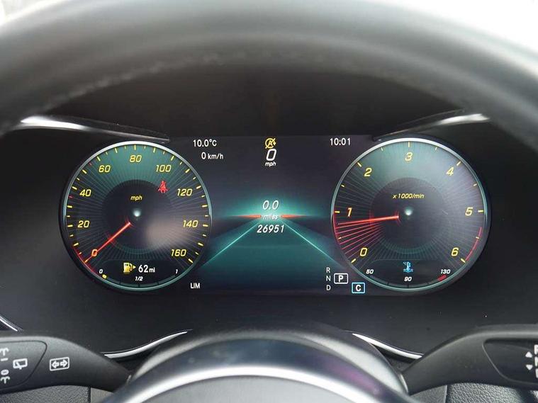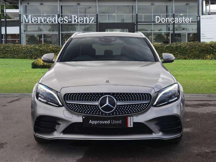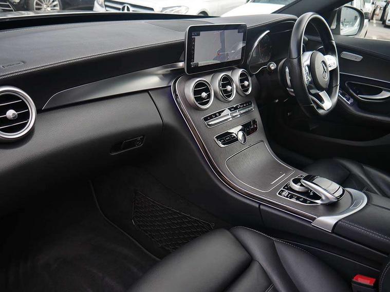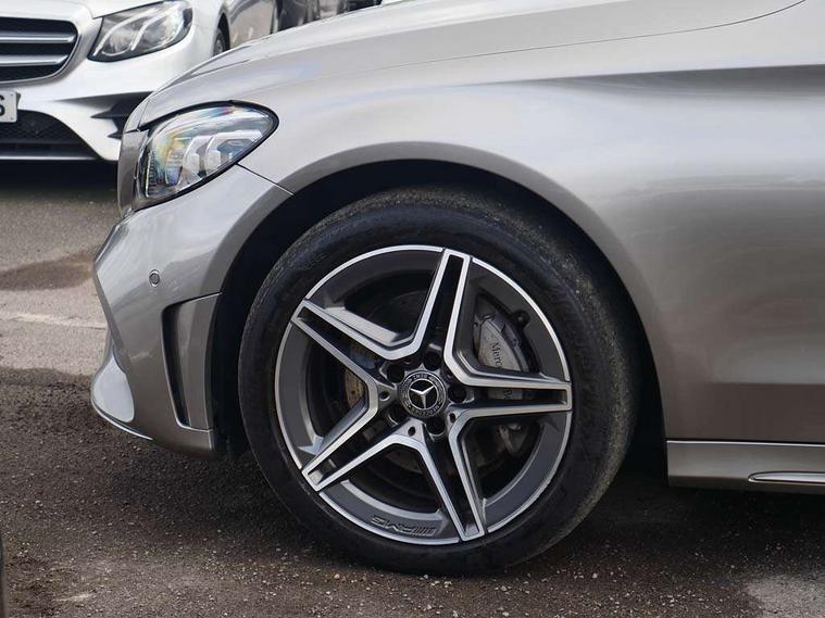 Active park assist with parktronic system, Attention assist, Bluetooth system, Collision prevention assist plus, Comand Online HDD Nav with media interface, radio/CD/DVD/MP3, 10.25 screen, linguatronic voice control, DYNAMIC SELECT with a choice of driving modes (ECO, Comfort, Sport, Sport+ and Individual), Multi function trip computer, Outside temperature gauge, Power opening/closing tailgate, Remote boot release, Reversing camera, Service indicator (ASSYST PLUS), Smartphone integration with Apple CarPlay and Android auto, Wireless charging, Diesel particulate filter, 2 USB ports in centre console, DAB Digital radio, Mid-range sound system with 7 speakers and 225W amplifier, SD card slot, Steering wheel mounted audio controls, Adaptive brake lights, Aerial in rear window, AMG body styling, Body coloured bumpers, Chrome door mirrors, Chrome pins diamond radiator grille with integrated stars, Chrome roof rails, Electric windows one touch open/close, Electrically adjustable and heated door mirrors, Green tinted glass, Heated windscreen washers, LED daytime running lights, LED Indicators, LED tail lights, LED third brake light, Multi beam LED headlights, Rain sensor windscreen wipers, Rear wiper, Side windows surround in polished aluminium, Twin exhaust pipes, 2 cupholders in front centre console, 3 spoke flat bottom AMG steering wheel in nappa leather, 40:20:40 split folding rear seats, AMG floormats, AMG sports seats, Auto Mercedes-Benz child seat recognition sensor, Dual zone automatic climate control, Electric front seat height adjustment, Front and rear head restraints, Front centre armrest with storage compartment, Front door sills with Mercedes Benz lettering, Gearshift paddles, Heated front seats, Illuminated glovebox, Interior lighting - 64 colour Ambient lighting, Load compartment cover, Multifunction steering wheel, Rear top tether child seat ISOFIX attachment, Sports pedals with stainless steel surfaces and rubber studs, Sunvisors with illuminated vanity mirrors, Lighting pack - C class, Mirror pack - C Class, Seat comfort pack - C Class, Stowage space pack - C Class, 3 rear 3 point seatbelts, ABS with Brake Assist, Active bonnet, Adaptive brake system, Black seat belts, Brake calipers with Mercedes-Benz lettering + perforated brake discs, Child proof door locks, Crash sensor, Drivers knee airbag, Drivers pelvis airbag, Dual stage driver/passenger airbags, Electronic parking brake, ESP with ASR, Front passenger seat occupancy sensor, Front side airbags, Hill start assist, Rear seatbelt warning indicator, Tyre pressure monitoring system, Warning triangle and first aid kit, Window airbags, Alarm system/interior protection/immobiliser, Chrome surround electric key, Remote central locking, Artico upholstered dashboard with contrast stitching, Tyre inflation kit,