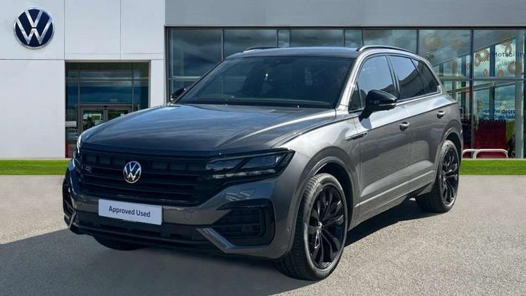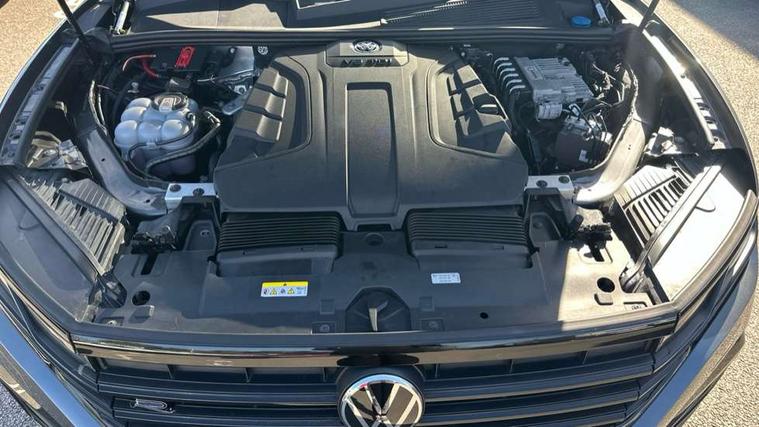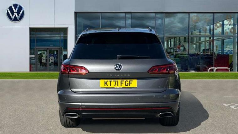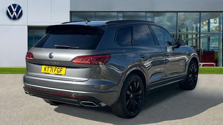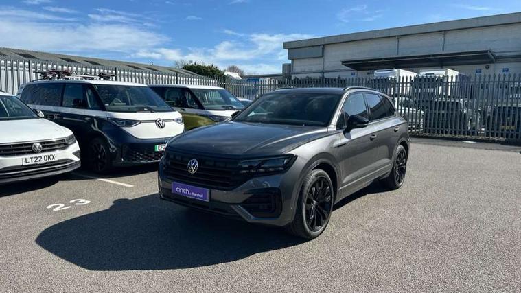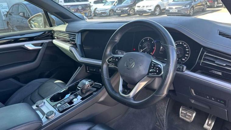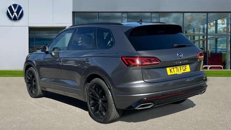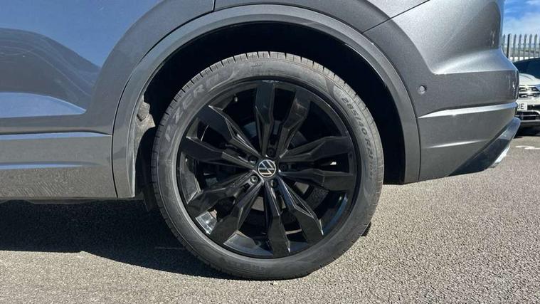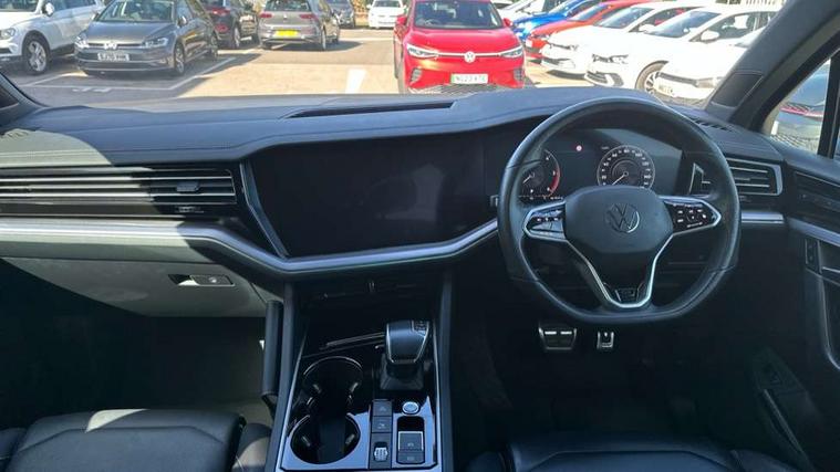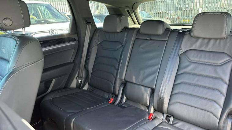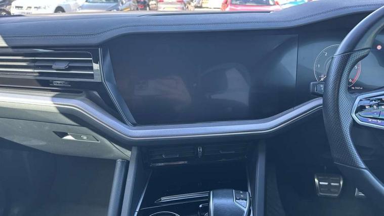 2D/3D map view, ACC - Adaptive cruise control with front assist, forward collision warning, distance monitoring, city emergency brake and speed limiter, Apple car play/Android Auto, Audible and visual fatigue detection system, Bluetooth hands free telephone connection, Car information display, Drive select with Damper control, Driver alert system, Driver profile selection, Dynamic road sign display camera controlled system with visual warning for traffic and road signs, eCall emergency system, Fully electric tailgate + keyless entry and start, Instrument cluster, MirrorLink, Multifunction camera with lane assist, Multifunction computer premium with 7" colour display, One touch indicators with repeat function, Service interval indicator, Speed sensitive power steering, Start/stop system with regenerative braking, Tailgate power latch, Think blue trainer driver tips and journey analysis, Traffic sign recognition, Voice control system, Wireless Smartphone charger, 24 litre AdBlue tank, Torsen limited slip differential, DAB Digital radio, Dynamic navigation based on TMC+, Gesture control for infotainment system, Multi device interface (MDI) with illuminated USB-C connection, Music playback - MP3, WMA and AAC files, SD card slot, Simultaneous pairing of 2 compatible mobile devices, SMS functionality - read, compose and send SMS messages using touch-screen display, Title and cover art display, Volkswagen media control, Adaptive low beam for urban and motorway use, Auto dimming rear view mirror, Automatic coming/leaving home lighting function, Automatic headlights, Black anodised roof rails, Black door mirrors, Black rear diffuser, Black side window surrounds, Black upper and lower grille louvres extending into headlights and radiator grille, Body colour door handles, Body coloured wheel arches, C signature gloss black front air intake, Chromed tailpipe on the left and right integrated in the bumper with trapezoid design, Dusk sensor, Dynamic headlight range control, Electric front tilt/slide panoramic sunroof and fixed rear sunroof, Electrically power adjustable, heated, folding, auto dimming, front passenger exterior door mirror lowering function, Front and rear electric windows, Galvanised body, Gloss black finish B pillar, Gloss black rear diffuser, Headlight washers, Heat insulating darkened glass in side and rear windows, Heated windscreen washer jets, IQ.Light-LED matrix headlight, daytime running light with dynamic cornering light and indicator, LED rear fog light, LED rear number plate lights, Plastic scuff plates in door apertures, Poor weather light, Puddle lights, Rain sensor, Rear side wing doors, Rear wiper, 12V socket in front and rear centre console and boot, 2 Coat hooks on B pillar, 3 rear head restraints, 3 spoke sport heated leather multi-function sports steering wheel with gear shift paddles - generation 2, 4 way adjustable front head restraints, 4 way electric lumbar support for driver and front passenger, 4 zone climate control, 40:20:40 split folding slide/recline rear seat, B pillar vents, Black lower edge of door extending sills, Branded points of interest, Double sun visor for drivier and passenger with LED illuminated vanity mirrors, Electric luggage compartment cover, Folding rear centre armrest with 2 cupholders, Front + rear carpet mats, Front centre armrest with storage box, Gear shift indicator, Height/reach adjust steering wheel, Illuminated air conditioned glovebox, Isofix preparation for 2 rear child seats, Jack and tool kit, Leather trimmed gear knob with gloss black inlay/aluminum trim, Leatherette door trim, LED luggage compartment lighting, Load through provision, Luggage compartment with load lashing rings, Plastic loading edge protection, Rear seat remote release levers, Soul black headlining, Stainless steel pedals, Innovision cockpit pack - Touareg, 3 point front seatbelts with pre-tensioners, ABS, Active bonnet, Automatic post collision braking system, Curtain airbags, Driver/Front Passenger airbags, EBD + Brake Assist, EDL, Electronic parking brake with auto hold, ESC with ASR, Front seat side impact airbags, Hill descent control, Hill start assist, Passenger airbag deactivate switch, Seatbelt warning lamp and buzzer, Three 3 point rear seatbelts, Two tone horn, Volkswagen roadside assistance, Warning triangle and first aid kit, Alarm with interior monitoring in cab, backup horn and towing protection, Child security locks for front and rear doors, Electronic engine immobiliser, Remote central locking, Black decorative trims on the side windows, High gloss black centre console,