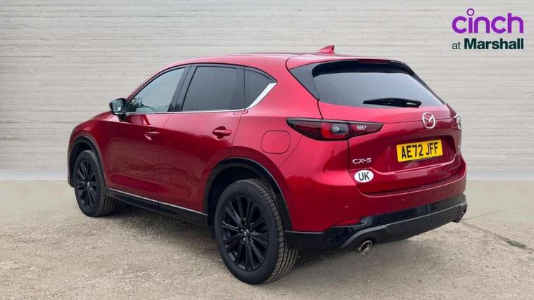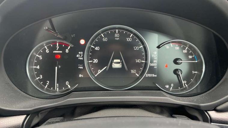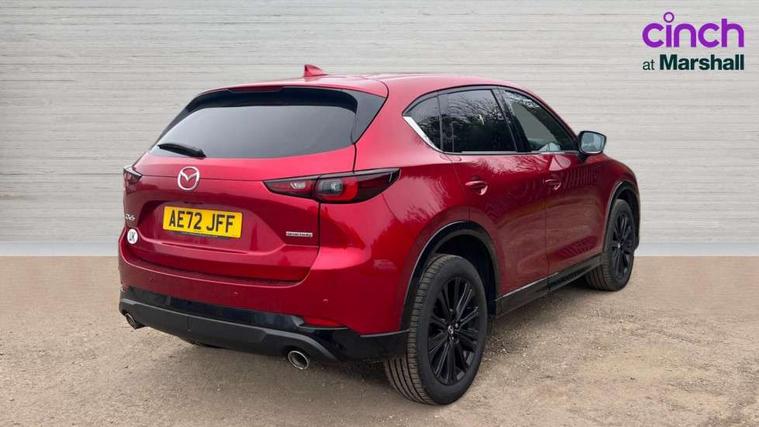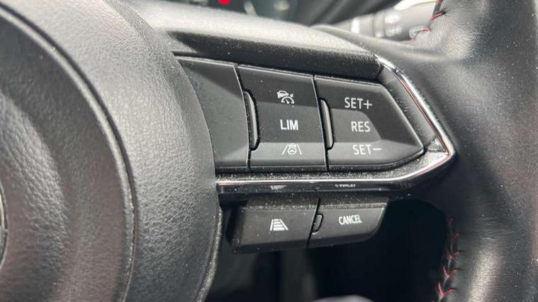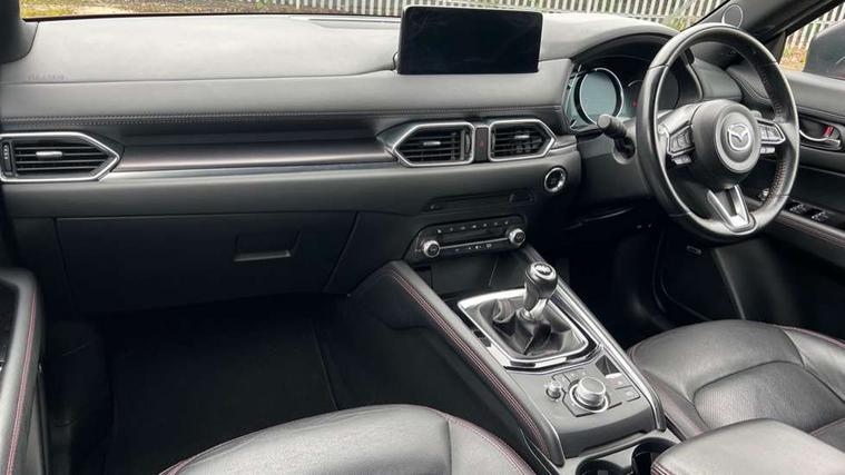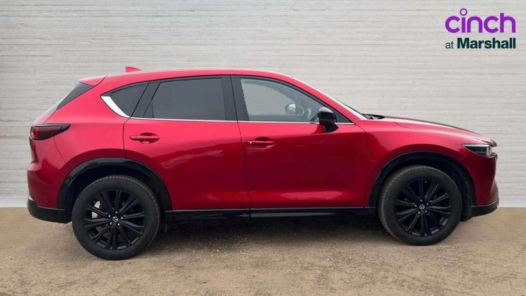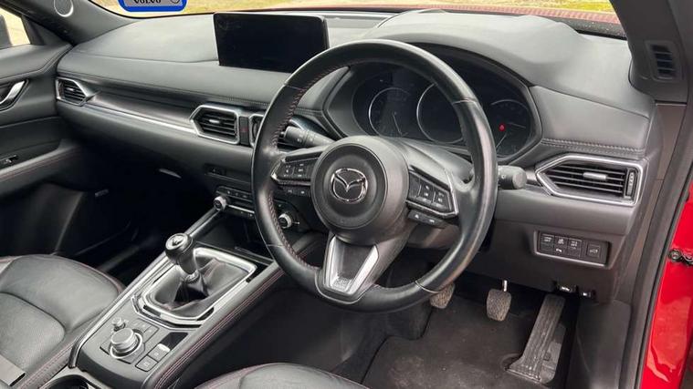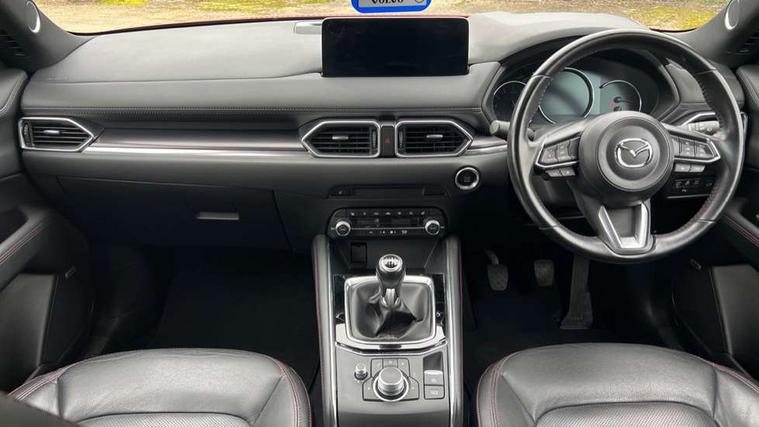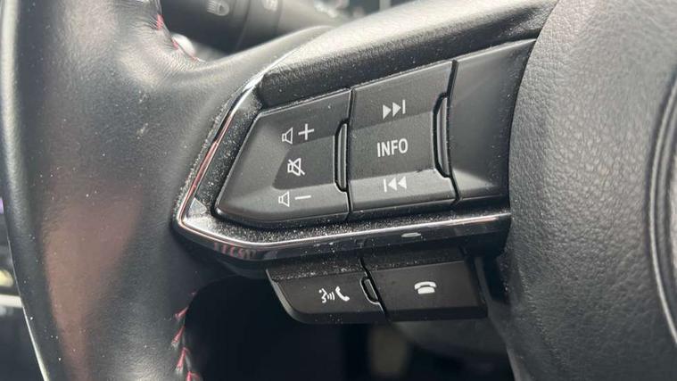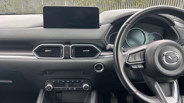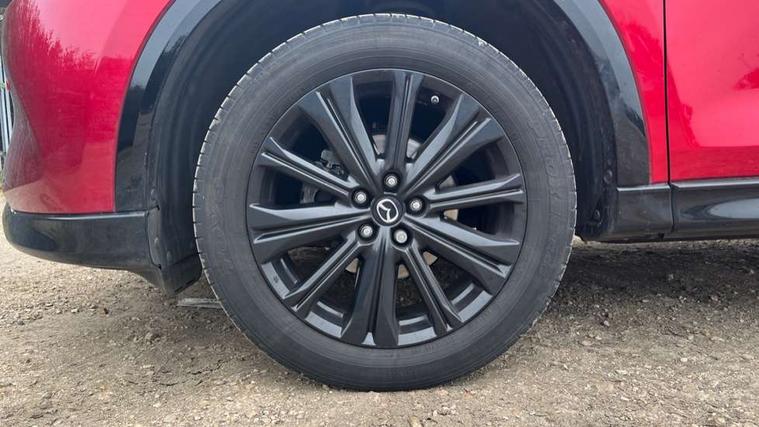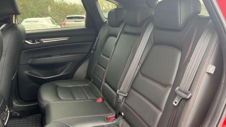 10.25" display with Mazda Connect infotainment, 7" colour TFT display, Apple car play/Android Auto, Blind spot monitoring with rear cross traffic alert, Bluetooth connectivity with voice control, Collision prevention assist, Connected services, Cruising Traffic Support, Electric power steering, Emergency stop signalling system, Engine start/stop button, Forward collision warning, Front and rear parking sensors, Integrated navigation system, Intelligent speed assist, Lane departure warning system, Lane keep assist, Qi wireless phone charging, Radar cruise control, Reversing camera, Service indicator, Traffic sign recognition (TSR), Trip computer, Windscreen projected colour active driving display (HUD) with memory, Cylinder Deactivation, i-stop, 2 USB sockets in rear, 2x USB sockets in front, AM/FM radio, Bluetooth audio streaming, Bose premium sound system with 10 speakers, DAB Digital radio, Multimedia Commander including separate volume dial, Steering wheel mounted audio controls, Adaptive front lighting system, Auto dimming rear view mirror, Automatic headlights, Black honeycomb door trim decoration panel, Black honeycomb interior decoration panel, Body colour roof spoiler, Coming/leaving home lighting function, Door mirror integrated indicators, Dual large chrome tailpipes, Dusk sensitive headlamps, Electric front/rear windows with one touch auto up/down, Front grille in gloss black finish, Gloss black B and C pillars garnish, Gloss black door mirrors, Gloss black front and rear lower bumper mouldings, Gloss black signature wing, Gloss black tire arch and side mouldings, High beam assist, Intermittent rear wash/wipe, LED auto levelling, LED daytime running lights, LED front fog lights, LED Headlights, LED third brake light, Power folding and heated door mirrors, Power tilt/slide sunroof, Privacy glass (rear side windows only), Rain sensing front wipers, Rear side wing doors, Red front grille accent, Red stitching and accents on door trim, knee pad, console lid, steering wheel, shift boots, Scuff plates, Shark fin antenna, Signature LED rear combination lights, Windscreen wiper de-icer, 12v electrical power outlet, 3 seat bench in 2nd row, 3 stage heated front seats, 40:20:40 Karakuri fold-flat seat system, 6 way electric adjustable passenger seat, 8 way electric driver seat with lumbar support + memory, Black roof lining, Cargo room flat floor board with waterproof undertray, Driver seat power slide, recline and height adjustment, Driver, Front passenger and two rear grab handles with coat hooks, Driver/passenger front seatback pockets, Driver/passenger sunvisors + illuminated vanity mirrors (drivers with ticket holder), Dual zone climate control, Folding centre armrest with 2 cup holders, Front and rear door pockets, Front centre storage with two cupholders, Front passenger seat power slide, recline and height adjustment, Gear shift indicator, Heated steering wheel, Humidity sensor, Illuminated glovebox, Interior dome light with integral spotlight, ISOFIX child seat anchorage points attached on outer rear seats, Karakuri tonneau cover, Leather upholstery, Leather wrapped steering wheel and gear knob, Luggage compartment LED lighting, Luggage compartment power outlet, Rear air vents, Rear headrests, Rear seat recline, Roof mounted sunglasses holder, Single front passenger seat, Three height adjustable head restraints, Tilt/height adjustable steering wheel, White interior LED illumination lighting, 3 point front seatbelts with pre-tensioners, 3 rear 3 point seatbelts, ABS, Advanced Smart City Brake Support - SCBS, Child locks on rear doors, Driver and front passenger side airbags, DSTC-Dynamic Stability and Traction Control, Dual front airbags, Electronic brake force distribution, Electronic parking brake with auto hold, ESP, Front and rear curtain airbags, Front passenger airbag deactivation, G-Vectoring control, Hill hold assist, Seatbelt reminder front and rear, Single stage passenger airbags, Smart brake support with forward obstruction warning, Tyre pressure monitoring system, Automatic door locking when moving off, Deadlock, Immobiliser, Power door locks, Remote central locking, Smart keyless entry, Thatcham Cat.1 alarm, 19" Black alloy wheels, Tyre repair kit,