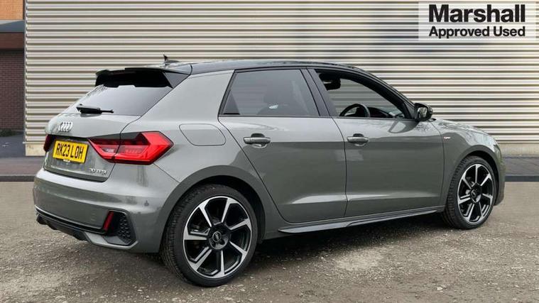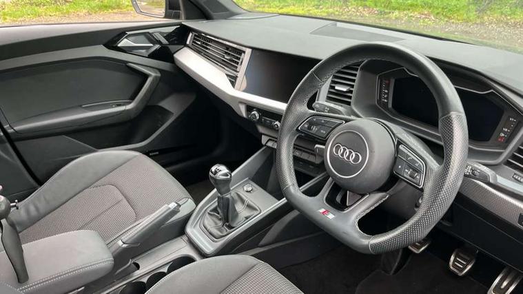 10.25" Digital instrument cluster display classis style instrument dials + speed, odometer, time, outside temperature, telephone menu + fuel level warning, Audi drive select - power steering assistance + engine, Audi smartphone interface with connect compatible smartphone via USB directly MMI display + Nav, music, third party apps controlled via MMI controller, Automatic start/stop system, Bluetooth interface, Cruise control, Driver's information system, Electromechanical power steering, Emergency e-call, Lane departure warning system, Rear parking sensor, Service interval indicator, Speed limiter, Voice control system, Washer fluid level indicator, Sports suspension, 2 x USB type C connection points, 6 passive loudspeakers, DAB Digital radio, MMI radio plus with 10.1" colour MMI display screen and MMI touch, Auto dimming rear view mirror, Black side skirts, Body coloured bumpers, Door sill trims with aluminium inlays and logo, Electric front and rear windows, Electrically adjustable, heated, folding door mirrors with integrated LED side indicator, Front side air inlets in grained matt black and C frame in anthracite black, Front wing badges, Heat insulating glass windscreen and side windows, Heated rear windscreen, High level LED brake light, LED headlights with LED rear lights + dynamic rear indicators + headlight adjustment and high beam, turning light + LED daytime running lights, Privacy glass, Rain and light sensors, Rear fog lights, Rear side wing doors, Rear wiper, Side front spoiler lips in grained matt black, 12V socket in centre console with two cup holders, 3 rear seats with headrests, 3 seat bench in 2nd row, 3 spoke flat bottomed multi-function plus leather steering wheel with S badging, grips in preforated leather and contrast stitching, 40:60 Split folding rear seat or folded fully, Black cloth headlining, Driver and passenger seat with manual height adjust with forward and backwards adjustment, Front and rear black floor mats with contrast stitching in fine silver, Front head restraints, Front passenger seat, Height and reach adjustable steering wheel, ISOFIX child seat mounting for front passenger and outer rear seats including top tether attachment point of outer rear seats, Leather gear knob with aluminium trim, Leatherette handbrake grip, Luggage compartment light with front and rear reading lights, Manual air conditioning, Manually adjustable lumbar support in front seats, Stainless steel pedals, Black styling pack - A1 Sportback Black Edition, LED interior lighting pack - A1, Luggage compartment pack - A1, 3x3 point rear seatbelts, Audi pre-sense front with pedestrain and cyclist recognition, Brake assist function, Driver and front passenger airbag with front side and head airbags, Electronic Stability Control including ABS, EBD, ASR and EDL, Front passenger airbag deactivation switch, Hill hold assist, Manual rear child locks, Seatbelt height adjustment for front seats, Seatbelt monitoring, Tyre pressure warning light, Warning triangle and first aid kit, Anti theft alarm, Anti theft wheel bolts and loose wheel warning, Immobiliser, Remote central locking with 2 foldaway keys, Aluminium trim for control switches, air vents and digital instrument cluster, Black dashboard, Silver grey inlays polygon structure in diamond paint finish, Structured grey accent areas including air vents, door handle recesses and centre console in quartz paint finish,