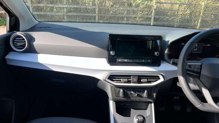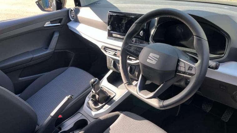 'Lights On' Reminder warning buzzer, 8" Digital cockpit, Cruise control and speed limiter, Digital clock, E-call, Electric speed sensitive power steering, Full link smartphone integration with mirror link, wireless apple carplay, Google android auto + USB Type C cable for apple and android devices, Lane keeping system, Low fuel warning light, Outside temperature display, RPM counter, Trip computer, 6 speakers, Bluetooth interface for hands free and audio streaming, DAB digital radio and AM/FM radio, Media system with 8.25" colour touchscreen with USB port (type c), Steering wheel mounted audio controls, Anti theft roof antenna, Automatic activation of hazard warning lights, Black roof rails and window surrounds, Body coloured bumpers, Body coloured door handle inserts, Body coloured door mirrors, Dimming rear view mirror, ECO LED automatic headlights and LED daytime running lights, Electric adjustable door mirrors, Electric front/rear windows, Hidden exhaust pipe, LED rear tail lights and licence plate lights, Licence plate lights, Protective side mouldings, Rain sensing wipers, Rear fog lights, Rear side wing doors, Rear spoiler, Rear window wash/wipe, Third brake light, Visible VIN plate, 2 cupholders, 3 seat bench in 2nd row, 60/40 split folding rear seat, Air conditioning, Cloth upholstery, Double boot floor, Driver sunvisor with covered mirror + card holder, Dust/pollen filter, Gear shift indicator, Grey interior air vents, Grey interior roof, Height adjustable front seats, Height/reach adjustable steering column, Illuminated boot, Instrument lighting with brightness control, ISOFIX points in outer rear seats with top tether anchorage points, Leather steering wheel/gear knob/handbrake, Passenger sunvisor with vanity mirror, Potentiometer, Single front passenger seat, Two front and three rear height adjustable headrests, Interior chrome pack - Arona, Safe and driving pack (S) - Arona, 3 point seatbelts on all rear seats, ABS, Active front headrests, Child locks on rear doors, Driver and front passenger airbags with front passenger airbag de activation, front side and curtain airbags, Emergency Brake Assist (EBA) and front assist, Forward collision warning and autonomous emergency braking, Front and rear seatbelt reminder, Hill hold control, Multi-Collision braking, Tiredness recognition system, Traction control, Tyre pressure monitoring system, Deadlock, Electronic engine immobiliser, Locking wheel bolts, Remote central locking, Titan black dashboard, 17" Dynamic machined alloy wheels,