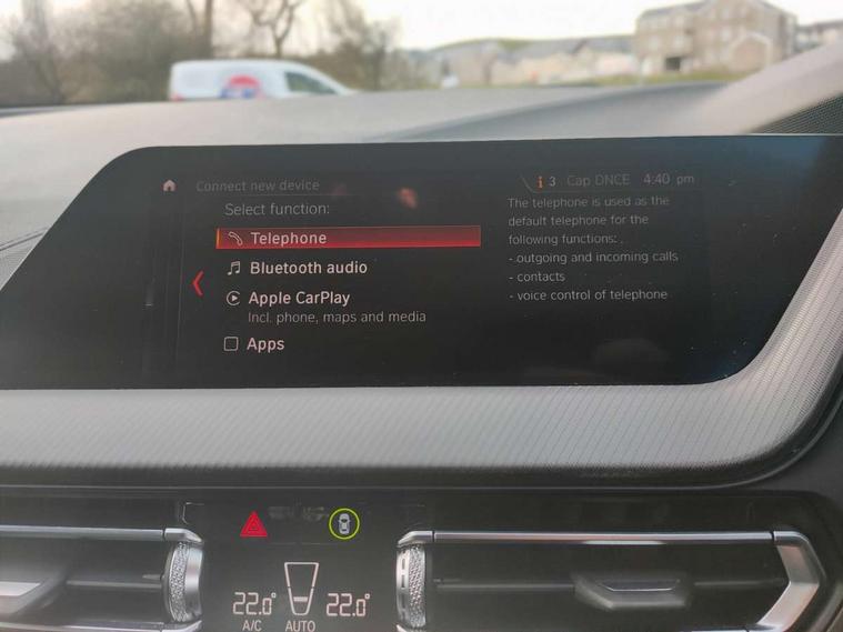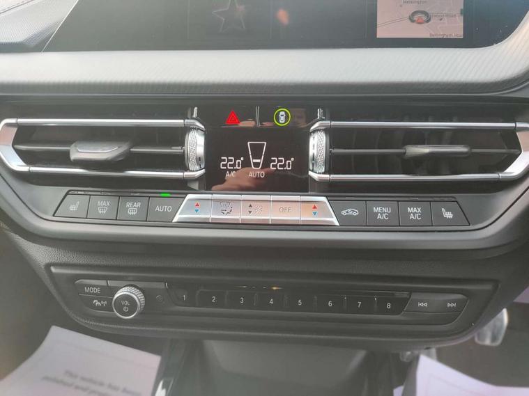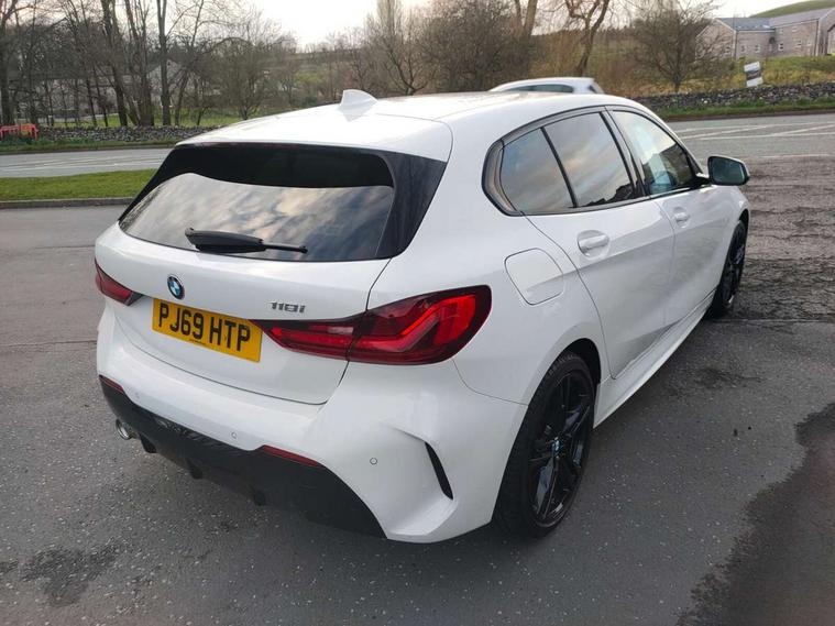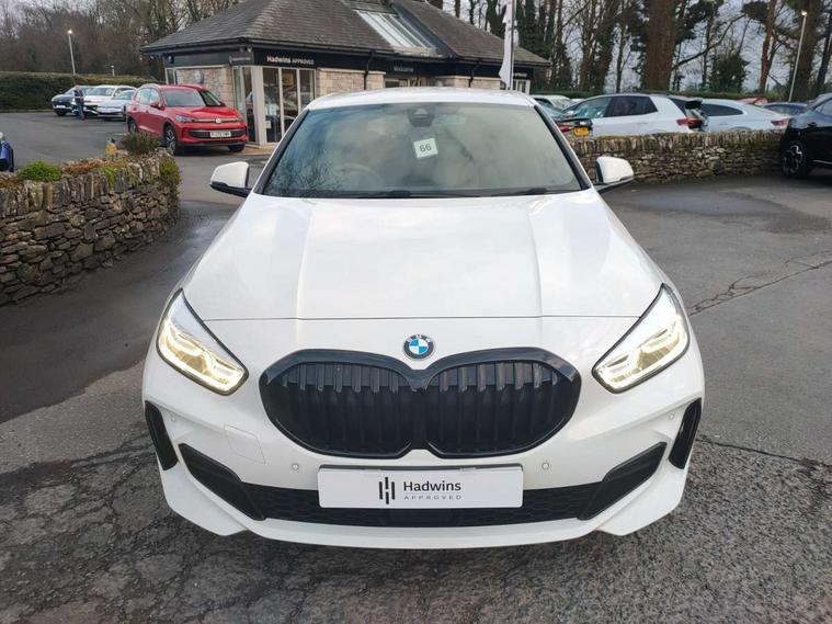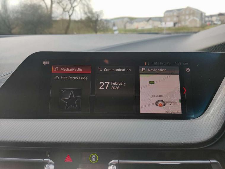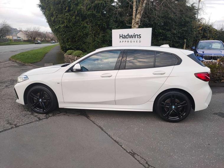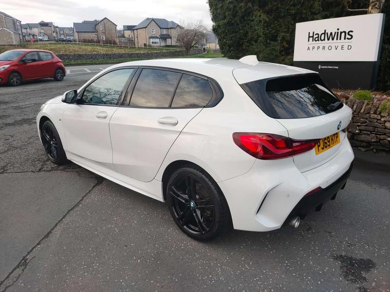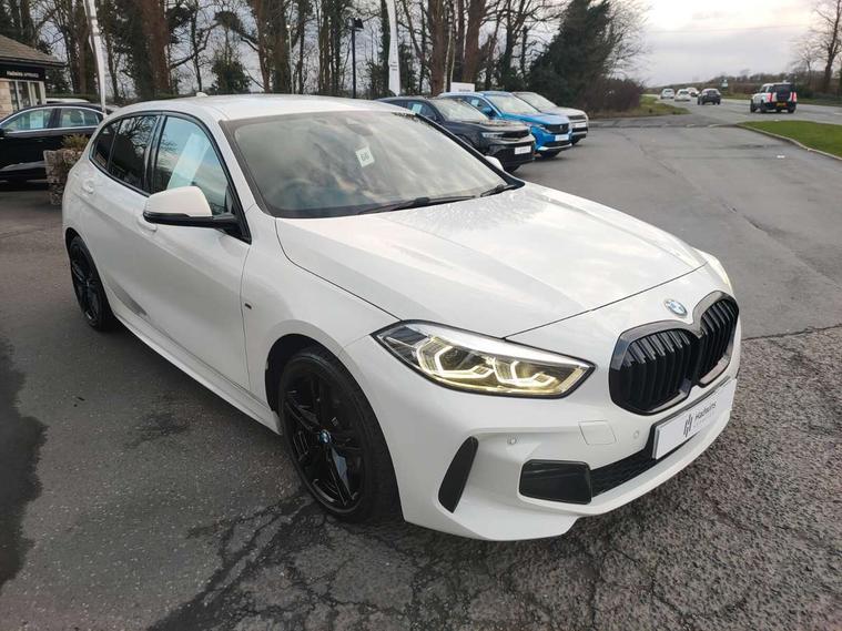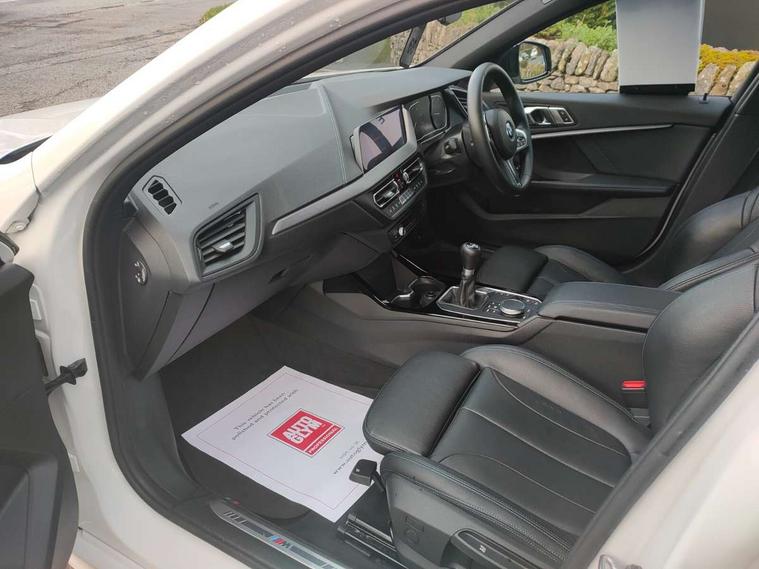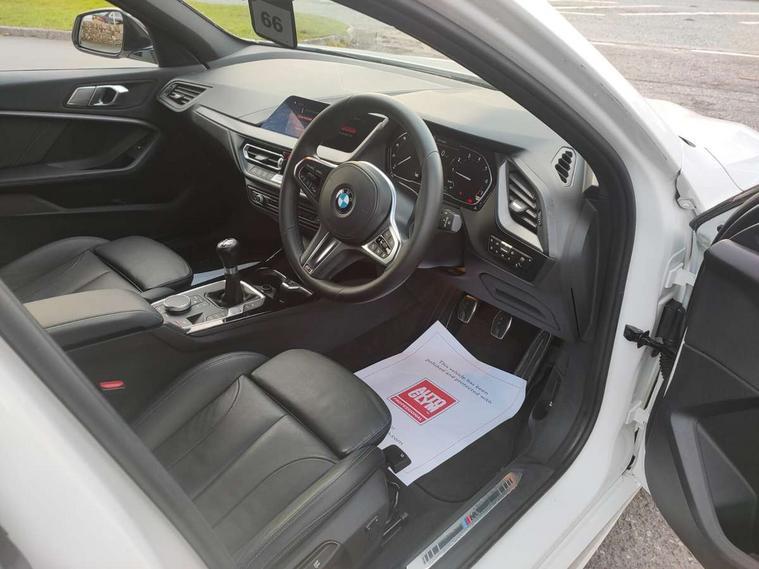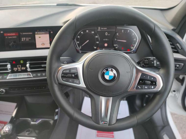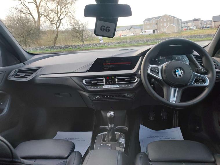 Active guard plus, Attentiveness assist, BMW Online services, BMW Teleservices, Check Control warning system for monitoring of lights and door/luggage compartment open warning, Connected eDrive Services, Cruise control with brake assist, Eco pro mode, Electric power steering, Front/rear Parking distance control, Integrated owners handbook, On board computer, Optimum shift indicator, Personal Profile, Pull away assistant, Speed limiter, Anti roll bar front and rear, Balancer shaft, Double VANOS, Drive Performance Control, Electronic differential lock, M sports suspension + self levelling, Petrol Particulate Filter, VALVETRONIC engine management, Bluetooth audio streaming, DAB Digital radio, Auto dimming rear view mirror, Body colour door handles, Body colour mirror caps, Chrome 'M' logo side designation, Chrome exhaust tailpipe in single, round (Exhaust tailpipe, stainless steel - single, round), Chrome kidney grille frame with Satin Aluminium struts, Direction indicator side lights in exterior mirrors, Electric folding and anti dazzle exterior mirrors, Fading support, Follow me home headlights, Front and rear electric windows with open and close fingertip control, anti trap facility and comfort closing, Front door sill finishers in black plastic with BMW designation, Green tinted heat protection glazing, Headlight beam throw control, High gloss shadow line exterior trim, High level third brake light, LED daytime running lights, LED front fog lights, Lightweight engineering, Matt black air guide grilles, Matt black roof moulding, B pillar finisher and wheel arch trim, Matt black window frame, Model designation on right side of tailgate, Nearside reverse light in rear light cluster, Rain sensor including auto headlights activation, Rear fog lights, Rear window wiper, Shark fin antenna, Visible VIN plate, Welcome lighting, Windscreen wipers with integrated washing jets, 12V power socket in centre console, 2 cupholders in front centre console, 3 rear seat head restraints, 3 Spoke M sports leather steering wheel, Anthracite headlining, Anthracite Velour floor mats, Bag hook in luggage compartment, Child seat ISOFIX attachment for two outer rear seats and front passenger seat with anchorage points, Conditioned based service, Dakota leather upholstery with perforation and contrast stitching, Driver and front passenger seat heating, Driver side folding compartment in instrument panel, Folding rear clothes hook, Folding rear seats, Four grab handles integrated in roof lining, Front and rear door pockets, Front and rear side armrest integrated into door trim, Front armrest foldable with integrated storage compartment, Front sports seats with electric side bolster adjustment, Gearshift lever with M designation, Glove compartment, Height adjustable front head restraints, Manual adjust steering wheel, Multi-function controls for steering wheel, Rear seat backrest with manual 60:40 split folding with 3 top tether clips integrated on rear of seat panels, Storage compartment in centre console, Sun visors with vanity mirrors and insert tab, Two extra lashing eyes in luggage compartment, Two zone automatic air conditioning, Extended Lighting pack - 1 Series, Extended storage pack - 1 Series, Interior lights pack - 1 Series, Luggage compartment pack - 1 Series, M Sport exterior styling aerodynamics pack - 1 Series, 2 tone horn, 3 point seatbelts on all seats, front pyrotechnic belt tensioners, stopper and belt force limiters, rear coded belt buckles, Airbags - Front driver and passenger, front and rear head, front side, curtain head protection, Anti lock braking system (ABS) with brake assist, BMW emergency call, Brake drying, Braking readiness, Crash sensor activating central locking release, hazard warning lights, fuel cut off, interior lighting + activation of safety battery terminal clamp, Driver and front passenger seat belt security check, Dynamic stability control + (DSC+), Dynamic Traction Control - DTC, Electrically operated hand brake, Front passenger manual airbag deactivation, Rear child proof door locks, Seatbelt warning, Side impact protection, Tyre pressure monitoring system, Warning triangle and first aid kit, Automatic drive away locking facility, Central locking switch for all doors, fuel filler cap and luggage compartment, Deadlocking function system to all doors, Locking wheel bolts, Remote control with integrated key with High-gloss Black inlay and M designation and 1 button for open/ close lock, window, open luggage compartment, Start/stop button with comfort go keyless engine start and auto start stop deactivation button, Thatcham Cat.1 alarm and immobiliser, Contrast stitching on instrument panel, Reduced rolling resistance tyres,