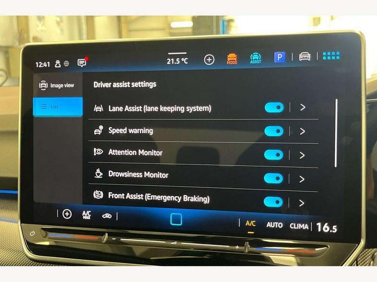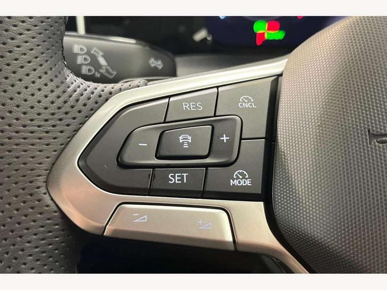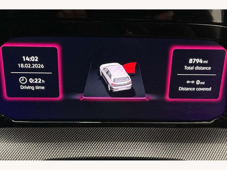 Activated carbon canister, Adaptive cruise control (ACC), Advanced driver attention and drowsiness monitor, Dynamic road sign display, Dynamic steering, E-Sim card for online connectivity, eCall emergency call system, Multi-color Digital cockpit pro, selection of different info profile possible, Multifunction front facing camera for distance control, Navigation system, Oncoming vehicle braking when turning including swerve support, Preparation for light assist system, Speed limiter, Speedo, rev counter, electronic odometer, trip, service interval display, exterior temperature and fuel gauge, Traffic jam assist, Voice enhancer and voice control, Warning signal and warning light for front and rear seatbelts not fastened, We connect plus preparation, We connect preparation, Wireless app connect, Petrol Particulate Filter, Start-stop system with battery regeneration (recuperation - energy recovery during braking), XDS electronic differential lock for improved traction and handling, 2 USB C ports in front, 2 USB charging sockets on the centre console in the rear charging capacity upto 45W, Comfort telephony + wireless charging, without wireless aerial connection, Digital radio reception (DAB), Diversity antenna for FM reception, Gaming platform via car app, Infotainment system with 12.9" display, Mobile phone interface with inductive charging feature, 3rd brake light, Auto headlights, Automatic headlamp activation with Coming home and Leaving home feature, Body colored bumpers in R-Line style, Body colour door handles, Exterior ambient lighting with illuminated door handles, Exterior mirrors convex on the left and aspherical on the right, Front and rear electric windows, Heat insulating windshield made of laminated glass, LED daytime running lights, Rear exhaust tailpipe, Rear fog light on one side and reversing lights on both sides, Rear side wing doors, Rear windscreen washer and wiper with interval delay, Remote electrically foldable door mirrors, puddle lights and reverse activated passenger's door mirror, Welcome light with surround lighting, 12V socket in front centre console, 12V socket in luggage compartment, 3 rear head restraints, 3 seat bench in 2nd row, Ambient lighting with 30 colour including LED light unit in front footwell with selectable light colour, Brushed stainless steel pedals, Carpet mats, front and rear, Chrome plated radiator grille inserts, air vent surrounds and light switch surrounds, Front centre armrest, Integrated front head restraints, ISOFIX anchors for child seats on outer rear bench seats and on front passanger seat compatible for i-Size, Leather gearshift handle, Luggage compartment lighting, Premium sports seats in front, Rear cupholder and loadthough, Single front passenger seat, Soul black instrument panel, Split folding backrest with centre armrest and unsplit rear seat bench, Storm grey roof lining, Sun visors with illuminated vanity mirrors, 3 point height adj front seatbelts + pretensioners, 3 rear three point seatbelts, ABS, Autonomous emergency braking front assist with pedestrian and cyclist monitoring, Child locks on rear doors, Driver and front passenger airbag with front passenger airbag deactivation, Electronic parking brake with auto hold, ESC (Electronic Stability Control), Extended pedestrian protection measures, Rear disc brakes, Two tone horn, Tyre pressure loss indicator, Volkswagen roadside assistance, Anti theft wheel bolts, Preparation for alcohol interlock, Decorative inserts carbon grey for dashboard and front door trim panels,
