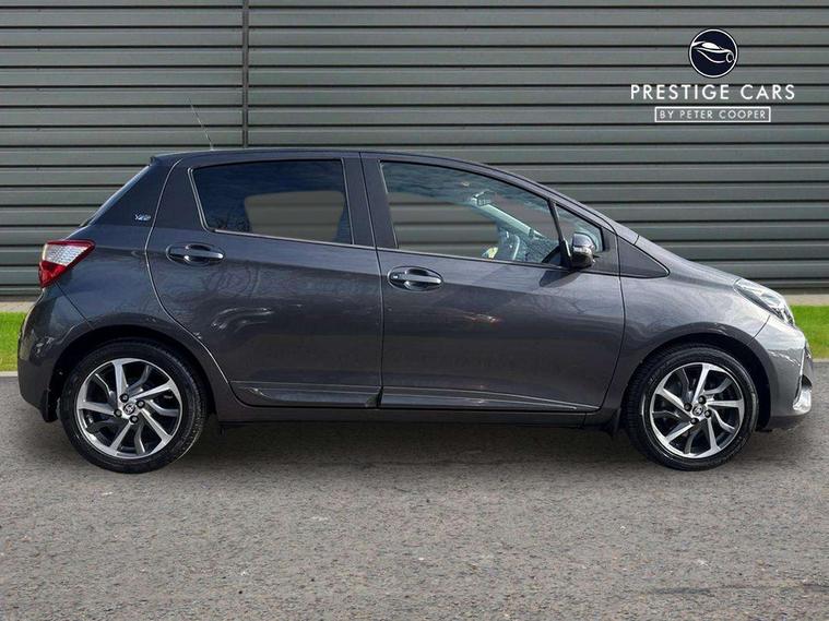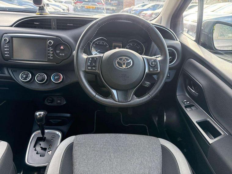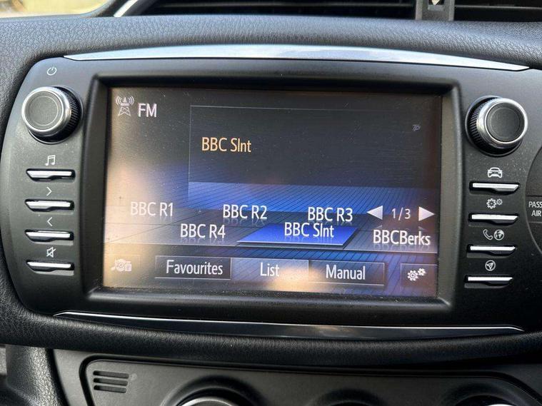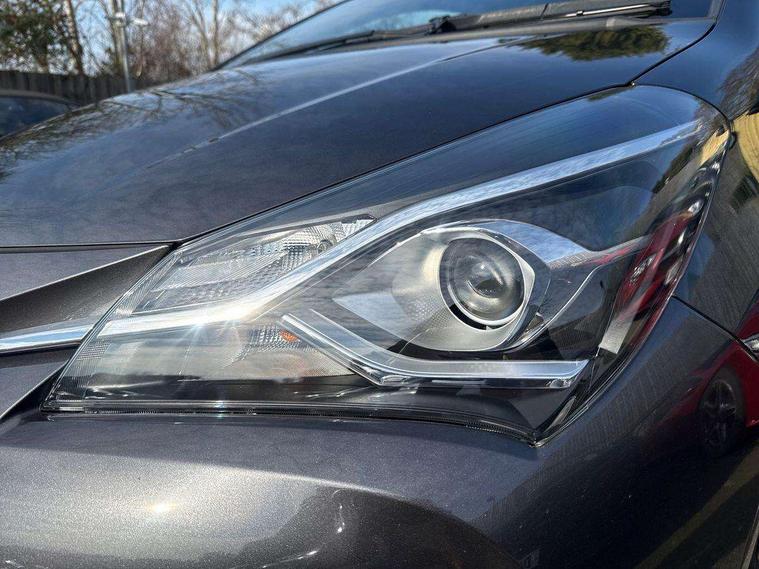 4.2" coloured LED TFT multi information display, Analogue speedometer, Analogue tachometer, Auto speed limiter, Bluetooth connectivity, Cruise control, External temperature gauge, Fuel indicator with low level warning, Key reminder warning, Lights on warning, Multi information display switches on steering wheel, Power Steering, Reversing camera, Trip computer, 6 speakers, Auxiliary input socket, Steering wheel mounted audio/telephone switches, Toyota Touch 2 with DAB, USB connection, Auto up and down function on drivers window, Automatic wipers, Bi-tone grey roof, Black lower front grille, Body colour bumpers, Body colour door handles, C pillar decal, Daytime running lights, Electric adjustable heated door mirrors, Electric front windows, Follow me home headlights, Front fog lights, Grey contrasting colour door mirrors, Grey door moulding, Grey door side sills, Grey front grille and fogs, Headlight cut-off reminder, LED High mounted stop lamp, Manual dimming rear view mirror, Privacy glass, Projector headlights, Rain sensitive windscreen wipers, Rear combination lights bulb type, Rear window defogger, Rear wiper, Turning signal integrated indicators in door mirrors, Y20 Badging, 12v power outlet - front, 3 adjustable rear headrests, 3 spoke leather steering wheel, 60/40 split folding rear seat, Boot light, Data Communication Module (DCM) connected services, Driver and front passenger personal light, Driver and front passenger Whiplash Injury Lessening seats, Fabric upholstery, Front and rear cup holders, Front map reading lights, Front seats with lumbar support, Glovebox, Height adjustable driver's seat, Height adjustable front head restraints, Illuminated entry system, Isofix seat fixing, Leather gearshift, Manual air conditioning, Map pockets on the backs of the front seats, Pollen filter, Removable rear parcel shelf, Sliding front seats, Soft touch inner door garnish, Tilt/telescopic steering column, Y20 badge interior and in seat trim, 3 point seatbelts on all rear seats, ABS+EBD+Brake assist, Active headrests, Collision mitigation braking system, Emergency brake light system (EBS), Front passenger airbag on/off switch, Front seatbelt reminder, Height adjustable front seatbelts with pre-tensioners and load limiters, Hill start assist control (HAC), Rear child proof door locks, Rear seat belt reminder, Road sign information display, Seatbelt warning lamp and buzzer, Supplemental restraint system (SRS) airbags - 7 airbags including driver, front passenger, curtain, side and knee airbags, Toyota safety sense including Road sign assist, Pre collision system, auto high beam and lane departure alert), Tyre pressure warning system, Vehicle stability control VSC + traction control, Engine immobiliser, Power and remote door locking, Interior satin accents, Soft touch instrument panel, 16" 10 spoke grey machined alloy wheels, Space saver spare wheel,