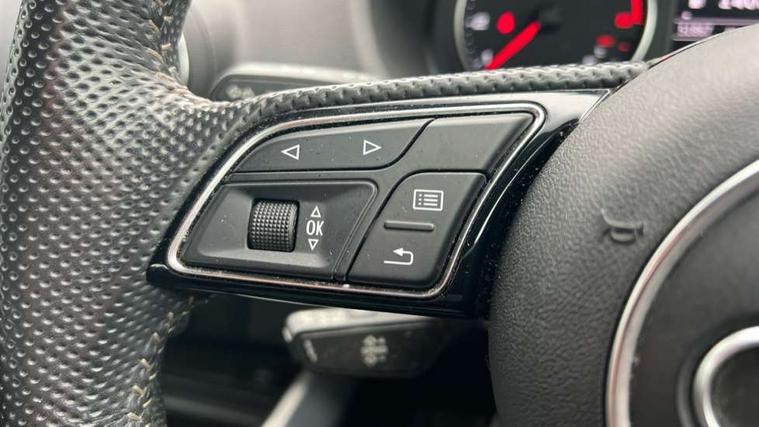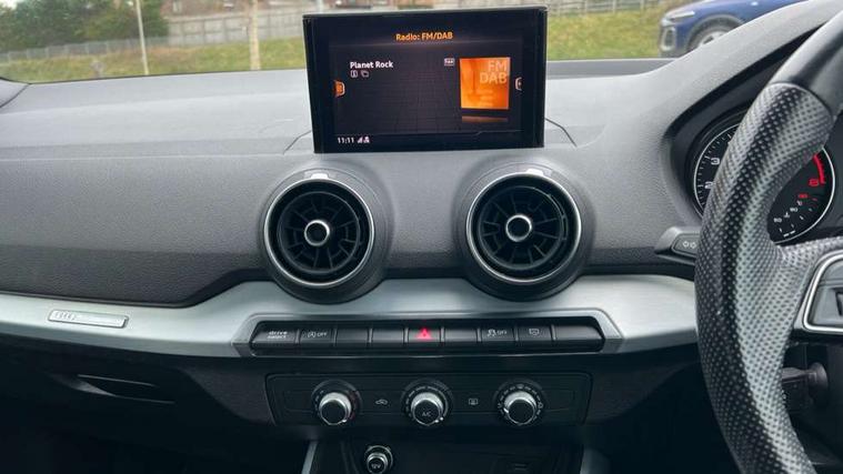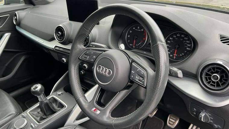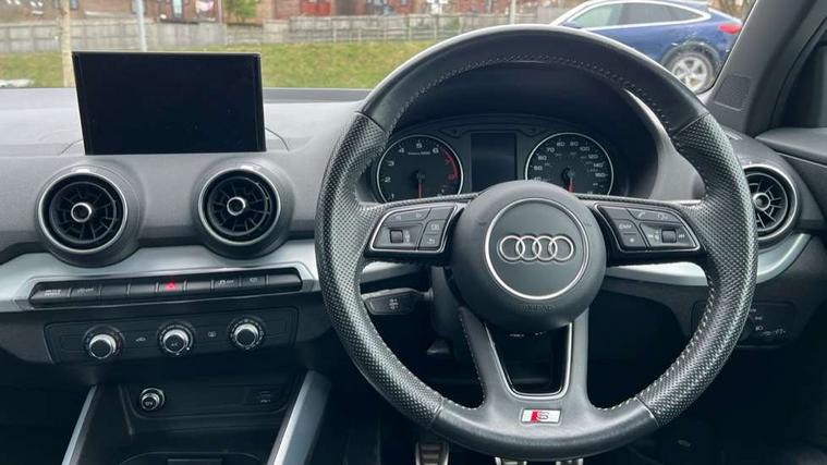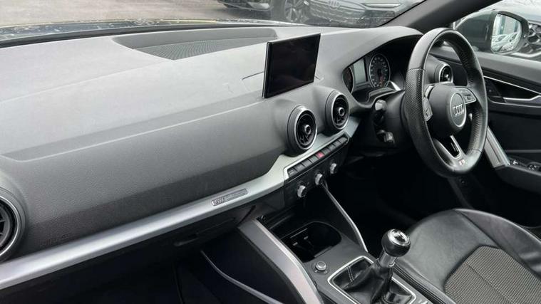 Audi drive select, Audi smartphone interface, Automatic start/stop system with recuperation, Bluetooth interface includes bluetooth audio streaming, Cruise control, MMI - Multi Media Interface control system, MMI SD card integrated nav with 3D map display, dynamic route guidance with TMC, MMI search, natural voice recognition and myAudi special destinations, Power operated tailgate, Progressive steering, Service interval indicator, Dynamic suspension, 2 x SDXC card reader, Audi music interface - apple iPod, apple iPhone, USB storage media, compatible MP3 players, 2 x USB charging points and 1 x Aux-in, CD Drive, DAB digital radio and AM/FM radio, MMI radio plus with 7" colour MMI screen and MMI controller, Black window trims, Bumper in full body colour paint finish, Chrome exhaust tailpipe, Electrically adjustable and heated door mirrors with integrated LED side indicators, Front and rear electric windows, Front underbody guard and rear diffuser trim in selenite silver, Front windscreen with grey tinted sunband, Headlight washers, Interior mirror, LED headlights with LED rear lights + dynamic rear indicators, LED indicator lights, Manual folding door mirrors, Rain and light sensors, Rear wiper, S Line badges on the front wings, S Line body styling - front and rear bumpers, side skirts, radiator grille, rear diffuser insert and front air intakes, 60/40 split folding rear seat bench, Black cloth headlining, Electronically operated child locks, Floor mats with contrast stitching, Front centre armrest, Front headrests, Front sport seats with S embossed logo, Height/reach adjust steering wheel, Illuminated door sill trims with S logo, ISOFIX child seat mounting for front passenger with airbag deactivation and outer rear seat including top tether attachment point for outer rear seats, Manual seat adjustment including seat height adjustment for front seats, Stainless steel pedals, Storage compartments - Glovebox, cupholder compartment in centre console, storage compartment in rear centre console, front and rear door pockets, Three rear headrests, Non smoking pack - Q2, 3x3 point rear seatbelts, 6 airbags - Front, curtain and front side airbags, Electromechanical parking brake, Electronic stabilisation control including ABS, ASR and EDL, Extended and proactive pedestrian protection, Hill hold assist, Multi collision brake assist, Pre-sense front with pedestrian recognition, Seatbelt monitoring, Tyre pressure warning light, Warning triangle and first aid kit, Anti theft alarm, Anti theft wheel bolts, Central locking system with remote control key, Aluminium interior element,