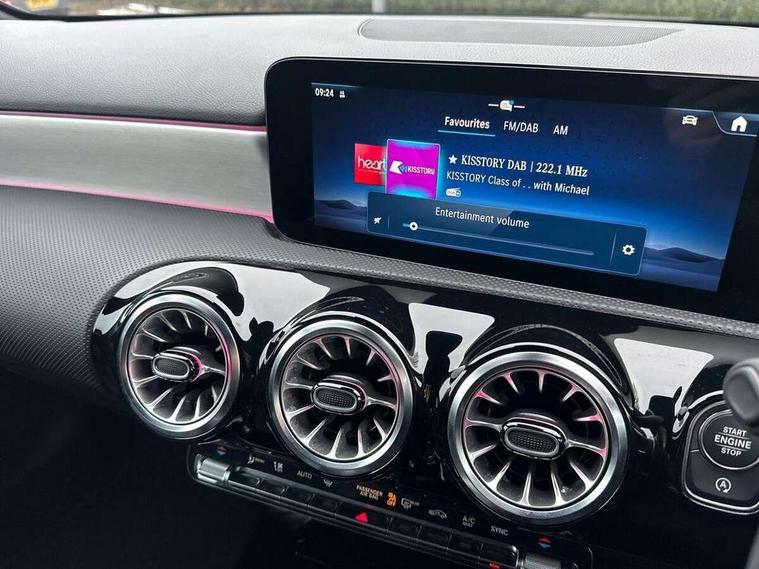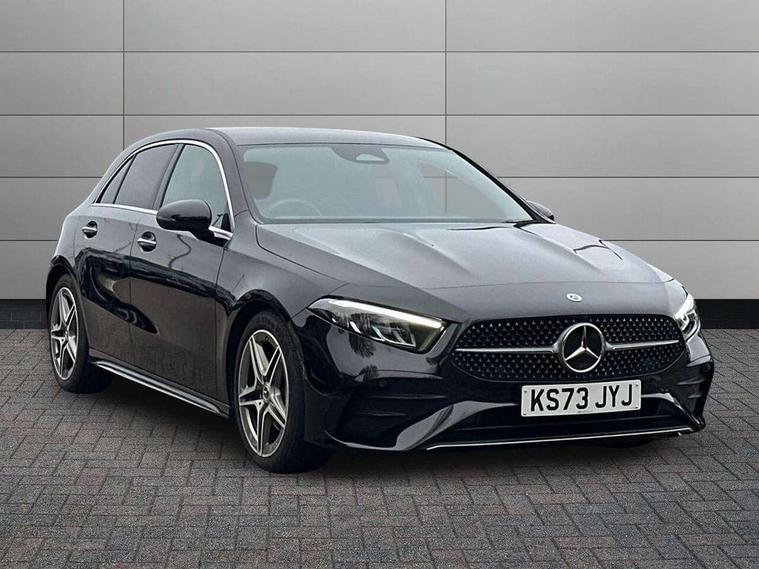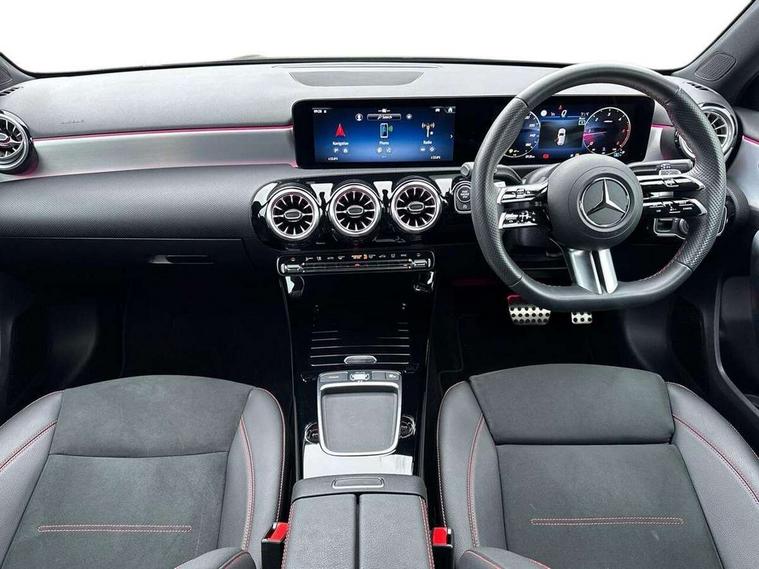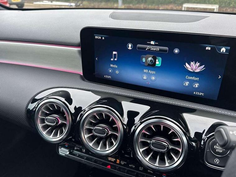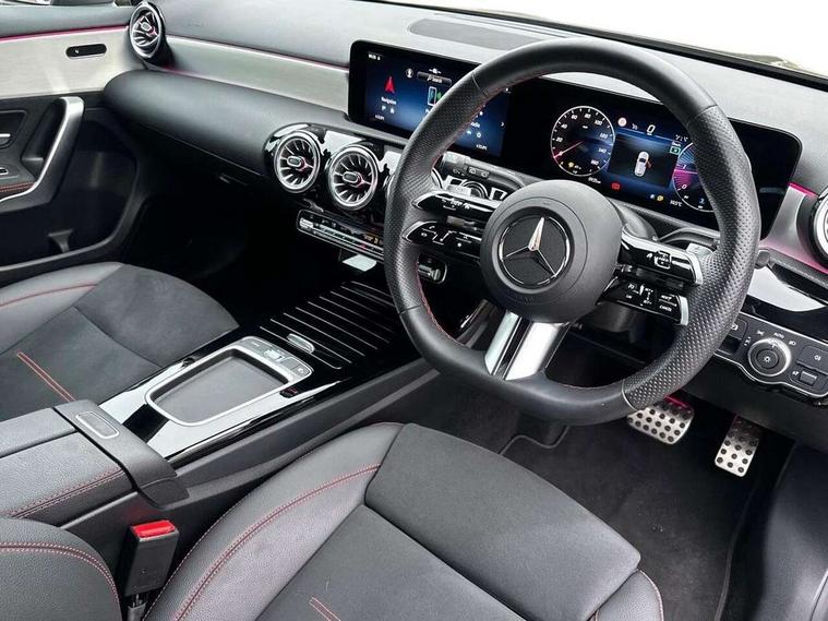 10.25 inch touchscreen central media display, 10.25" Digital instrument cluster display screen, Attention assist, Blind spot assist, Brake pad wear indicator warning light, Car wash mode, Cruise control + speed limiter, Direct steering, Direction indicators with lane change function, Dual bluetooth interfaces, DYNAMIC SELECT with a choice of driving modes (ECO, Comfort, Sport and Individual), Easy pack tailgate hands-free access, ECO start/stop function, Engine start/stop button, Fluid level warning indicator for fuel, oil, coolant and washer fluid, Hard-disk navigation, Hey Mercedes Voice activation, Lamp failure indicator, Lane keeping system, MBUX augmented reality for navigation, Mercedes me connect including emergency call system, accident recovery, breakdown management and maintenance, Mercedes me remote services, Outside temperature gauge, Owners manual in English, Pre-installation of private car share, Preinstallation for Mercedes Benz link, Remote boot closing, Service indicator (ASSYST), Smartphone integration with Apple CarPlay and Android auto, Speed limit assist, Speed sensitive power steering, Tailgate, Trip computer in multifunction display with current consumption indicator, Wireless charging, Lowered comfort suspension, DAB Digital radio, MBUX multimedia system, Mercedes Benz advanced sound system (225 W) with 10 speakers, 1 central speaker, speakers on doors, a tweeter on door, one sub woofer + boost amplifier, 4 Electric Front and Rear windows, Adaptive brake lights, AMG body styling - AMG front apron with front splitter and AMG rear apron and visible exhaust tailpipe trim elements, Body colour bumpers, Body colour door handles with chrome inserts, Body colour side skirt, Body coloured door mirrors, Chrome beltline strips, Diamond radiator grille with pins in fine star pattern, Electric adjustable and heated door mirrors with integrated LED side indicators, Exhaust system with 2 visible tailpipe trim elements and rear apron, Headlamp assist automatic headlamp activation, Heat insulating dark tinted rear and rear side windows, Heated glass rear windscreen + timer control, LED High level third brake light, LED High Performance headlamps including integral LED daytime running lamps and adaptive highbeam assist, LED tail lamp, Privacy glass, Radio aerial, Rain sensing windscreen wipers with two sensitivity settings, Rear fog lights, Rear side wing doors, Rear windscreen wiper, Window line trim strip in chrome, 3 seat bench in 2nd row, 3 Spoke flat bottom leather multi function steering wheel with perforated leather in grip area, 4 way lumbar support, 40:20:40 split folding rear seats, Air conditioning - Two zone thermotronic luxury automatic climate control with display, AMG floor mats, Automatic child seat recognition sensor, Black air vents with surround in silver chrome, Black roof lining, Brushed stainless steel sports pedals with rubber studs, Front centre armrest with stowage, Front seat backs luggage nets, Galvanished gear shift paddles on steering wheel, Heated front seats, Height/reach adjustable steering column, Illuminated Mercedes Benz lettering front door sills with changeable cover, Interior lighting - 64 colour Ambient lighting, Interior mirror with reading lamps in black and frameless, ISOFIX and top tether child seat fixing points in two outer rear seats, Rear armrest with 2 cupholders, Seat occupancy sensor for front passenger seat, Single front passenger seat, Sports seats with integrated headrests, Stowage compartment in centre console with retractable cover, Sunvisors with illuminated vanity mirrors, Twin front cupholders, Light and sight pack - A Class, Mirror package - A Class, Parking pack - A Class, Seat comfort pack - A Class, USB pack plus - A Class, 3 rear 3 point seatbelts, ABS with Brake Assist, Active bonnet, Active brake assist includes forward collision warning system with autonomous braking, Adaptive brake assist with hold function and hill start assist, Black seatbelts, Bonnet with power domes, Childproof locks manually operated for rear doors and electrically operated for rear power windows, Crash responsive emergency lighting, Driver and passenger head and side airbags, Drivers knee airbag, Dual stage driver/passenger airbags, Electronic parking brake, ESP curve dynamic assist, ESP with ASR, Front and rear seatbelt reminder, Tyre pressure monitoring system, Warning triangle and first aid kit, Window airbags, Alarm system/interior protection/immobiliser, Guard 360 degree vehicle protection, Keyless entry lock/unlock, Keyless Go, Remote central locking and crash sensor with emergency opening function, Light longitudinal grain aluminium trim, 18" AMG 5 twin spoke light alloy wheels, aerodynamically optimised, painted in termolite grey with high sheen finish, Summer tyres, Tirefit sealant kit,