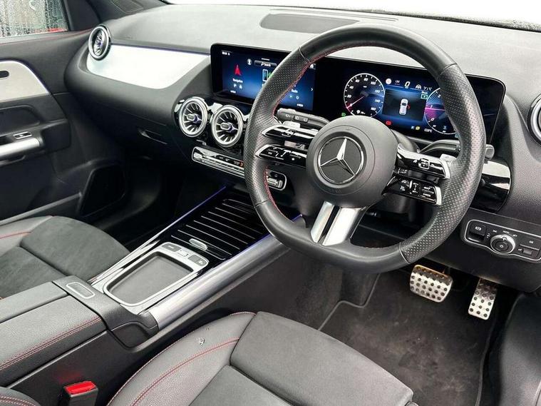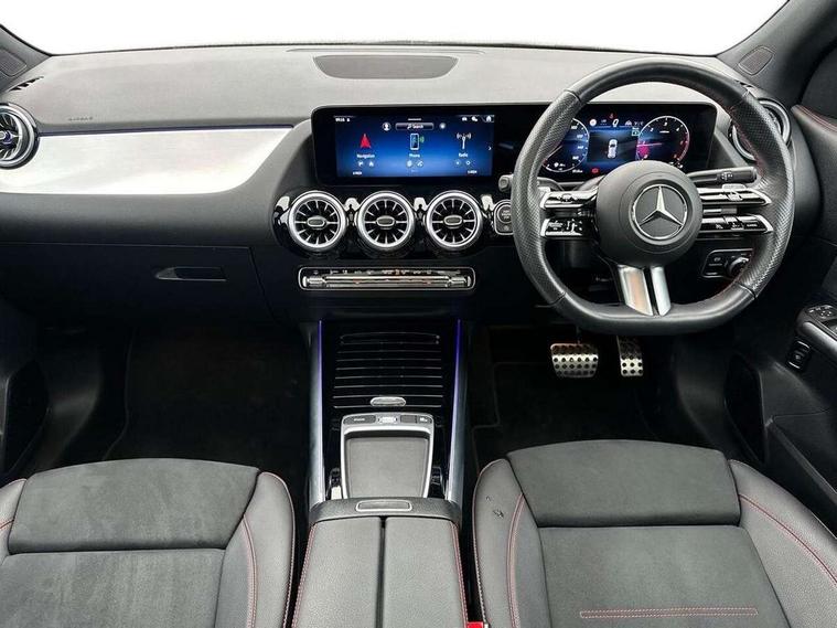 10.25 inch touchscreen central media display, 10.25" Digital instrument cluster display screen, Attention assist, Direct steering, DYNAMIC SELECT with a choice of driving modes (ECO, Comfort, Sport and Individual), Easy-pack tailgate, ECO start/stop function, Fingerprint scanner, Fluid level warning indicator for fuel, oil, coolant and washer fluid, Full color head up display, Hard-disk navigation, Hey Mercedes Voice activation, Lamp failure indicator, Lane keeping assist (LKA), Mercedes me connect including emergency call system, accident recovery, breakdown and maintenance management, Mercedes me remote services, Multi function trip computer, Outside temperature gauge, Owners manual and service booklet in English, Pre-installation of private car share, Radio aerial integrated into front and rear windshields, Service indicator (ASSYST), Smartphone integration with Apple CarPlay and Android auto, Traffic sign assist, Wireless charging, Lowered comfort suspension, Rear axle multi-link, Suspension with adaptive damping system, Bluetooth connectivity including audio streaming, DAB Digital radio, MBUX multimedia system, Mercedes-Benz (225w) sound system with 10 speakers, Adaptive brake lights, Adaptive full LED rear lights with automatic adjustment of light intensity to the surroundings, Aluminium roof rails, AMG front apron with front splitter in the colour of the vehicle with chrome trim element, AMG rear apron with visible tailpipe trim and chrome trim element, AMG specific/dual flow exhaust pipes in chrome (non-functional), Automatic headlamp activation, Beltline trim and window line trim strip in high gloss black, Black grained side sill trim with chrome inlay, Body coloured door handles with chrome insert for keyless entry, Car wash function, Cornering light function with activated high beam, Dark privacy glass from B-pillar backwards, Electric front windows, Electric rear windows, Electrically adjustable and heated door mirrors with integrated LED indicators, Exhaust system with 2 Visible tailpipe trim elements and rear apron with trim in chrome, Heat insulating dark tinted glass, Heated glass rear windscreen + timer control, Illuminated door sill panels with Mercedes-Benz lettering, Interior mirror with black reading lamps and frameless, LED daytime running lights, LED third brake light, Multibeam LED headlamps with adaptive highbeam assist plus, Panoramic sunroof, Rain sensor windscreen wipers, Rear fog lights, Rear side wing doors, Rear wiper, Wheel arch liners in the colour of the vehicle, 3 seat bench in 2nd row, 3 spoke flat bottom multifunction nappa leather steering wheel, 40:20:40 split folding rear seat backrests, Adjustable head restraints, Air conditioning - air vents with silver chrome surround, Air conditioning - Two zone thermotronic luxury automatic climate control with display, AMG floor mats, Auto Mercedes-Benz child seat recognition sensor, Black roof lining, Courtesy light in boot, Electrically adjustable front memory seats with four way lumbar support, Fluorescent jacket, Front centre armrest with stowage, Galvanished gear shift paddles on steering wheel in silver chrome, Heated front seats, Illuminated glovebox, Interior lighting - 64 colour Ambient lighting, Luggage net on driver/front passenger seat backrest, Manually height and reach adjustable steering column, Single front passenger seat, Sports pedals in brushed stainless steel with black rubber studs, Sports seats, Sports steering wheel, Stowage compartment in centre console, Stowage compartment with retractable cover, Sunvisors with illuminated vanity mirrors, Twin front cup holders, Two outer rear seat isofix and top tether child seat fixing points, Comfort seat pack - GLA Class, Driving assistance package - GLA, Interior lighting with light and sight pack - GLA, Keyless go comfort package - GLA, Mirror pack - GLA Class, Night package - GLA, Off road engineering pack - GLA, Parking package with 360-degree camera - GLA, USB package plus - GLA, 3 rear 3 point seatbelts, ABS with Brake Assist, Active bonnet pedestrain safety measure which detects an impact and raises bonnet by 65mm, Active brake assist includes forward collision warning system with autonomous braking, Adaptive brake assist with hold function and hill start assist, Black seatbelts, Bonnet with power domes, Brake pad wear warning indicator, Braking system with larger brake discs on the front axle, Childproof locks manually operated for rear doors and electrically operated for rear power windows, Crash responsive emergency lighting, Driver and passenger head and side airbags, Drivers knee airbag, Dual stage driver/passenger airbags, Electronic parking brake, ESP curve dynamic assist, ESP with ASR, Exit warning, Front and rear seatbelt reminder, Front brake callipers with Mercedes Benz logo lettering on front, Front brake discs internally ventilated and perforated, Front passenger seat occupancy sensor, Sports braking system, Tyre pressure monitoring system, Warning triangle and first aid kit, Window airbags, Alarm system with immobiliser and interior protection -Thatcham category 1, Guard 360 degree vehicle protection, Keyless Go starting function, Remote central locking and crash sensor with emergency opening function, Light longitudinal grain aluminium trim, 20" AMG multi spoke light alloy wheels aerodynamically optimised and painted in black with a high-sheen rim flangle RVT, Summer tyres, Tirefit tyre sealant kit,