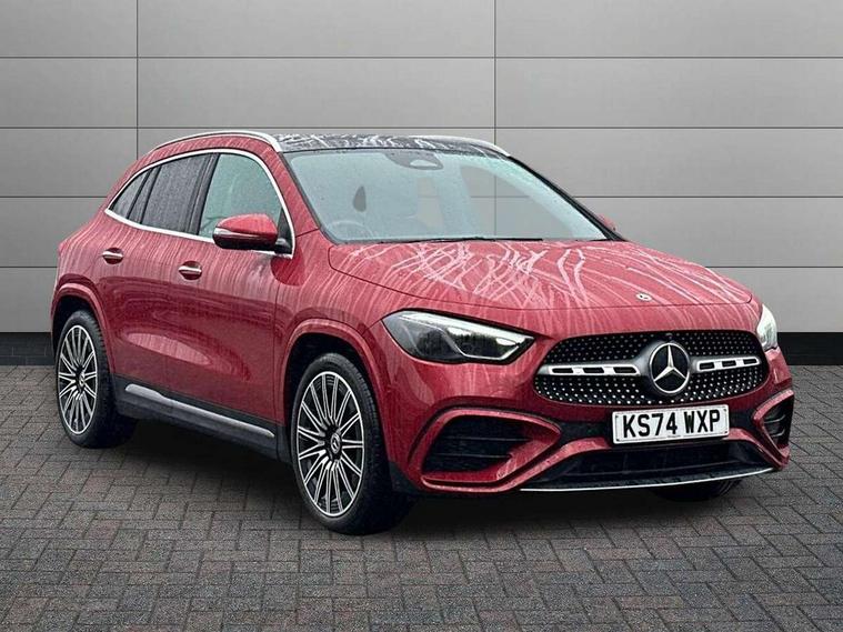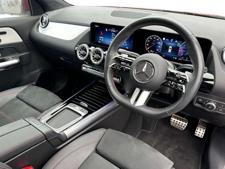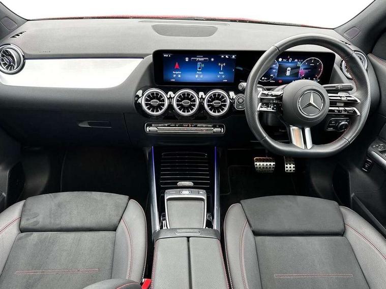 10.25 inch touchscreen central media display, 10.25" Digital instrument cluster display screen, Attention assist, Direct steering, DYNAMIC SELECT with a choice of driving modes (ECO, Comfort, Sport and Individual), Easy-pack tailgate, ECO start/stop function, Fingerprint scanner, Fluid level warning indicator for fuel, oil, coolant and washer fluid, Full color head up display, Hard-disk navigation, Hey Mercedes Voice activation, Lamp failure indicator, Lane keeping assist (LKA), Mercedes me connect including emergency call system, accident recovery, breakdown and maintenance management, Mercedes me remote services, Multi function trip computer, Outside temperature gauge, Owners manual and service booklet in English, Pre-installation of private car share, Radio aerial integrated into front and rear windshields, Service indicator (ASSYST), Smartphone integration with Apple CarPlay and Android auto, Traffic sign assist, Wireless charging, Lowered comfort suspension, Rear axle multi-link, Suspension with adaptive damping system, Bluetooth connectivity including audio streaming, DAB Digital radio, MBUX multimedia system, Mercedes-Benz (225w) sound system with 10 speakers, Adaptive brake lights, Adaptive full LED rear lights with automatic adjustment of light intensity to the surroundings, Aluminium roof rails, AMG front apron with front splitter in the colour of the vehicle with chrome trim element, AMG rear apron with visible tailpipe trim and chrome trim element, AMG specific/dual flow exhaust pipes in chrome (non-functional), Automatic headlamp activation, Beltline trim and window line trim strip in high gloss black, Black grained side sill trim with chrome inlay, Body coloured door handles with chrome insert for keyless entry, Car wash function, Cornering light function with activated high beam, Dark privacy glass from B-pillar backwards, Electric front windows, Electric rear windows, Electrically adjustable and heated door mirrors with integrated LED indicators, Exhaust system with 2 Visible tailpipe trim elements and rear apron with trim in chrome, Heat insulating dark tinted glass, Heated glass rear windscreen + timer control, Illuminated door sill panels with Mercedes-Benz lettering, Interior mirror with black reading lamps and frameless, LED daytime running lights, LED third brake light, Multibeam LED headlamps with adaptive highbeam assist plus, Panoramic sunroof, Rain sensor windscreen wipers, Rear fog lights, Rear side wing doors, Rear wiper, Wheel arch liners in the colour of the vehicle, 3 seat bench in 2nd row, 3 spoke flat bottom multifunction nappa leather steering wheel, 40:20:40 split folding rear seat backrests, Adjustable head restraints, Air conditioning - air vents with silver chrome surround, Air conditioning - Two zone thermotronic luxury automatic climate control with display, AMG floor mats, Auto Mercedes-Benz child seat recognition sensor, Black roof lining, Courtesy light in boot, Electrically adjustable front memory seats with four way lumbar support, Fluorescent jacket, Front centre armrest with stowage, Galvanished gear shift paddles on steering wheel in silver chrome, Heated front seats, Illuminated glovebox, Interior lighting - 64 colour Ambient lighting, Luggage net on driver/front passenger seat backrest, Manually height and reach adjustable steering column, Single front passenger seat, Sports pedals in brushed stainless steel with black rubber studs, Sports seats, Sports steering wheel, Stowage compartment in centre console, Stowage compartment with retractable cover, Sunvisors with illuminated vanity mirrors, Twin front cup holders, Two outer rear seat isofix and top tether child seat fixing points, Comfort seat pack - GLA Class, Driving assistance package - GLA, Interior lighting with light and sight pack - GLA, Keyless go comfort package - GLA, Mirror pack - GLA Class, Night package - GLA, Off road engineering pack - GLA, Parking package with 360-degree camera - GLA, USB package plus - GLA, 3 rear 3 point seatbelts, ABS with Brake Assist, Active bonnet pedestrain safety measure which detects an impact and raises bonnet by 65mm, Active brake assist includes forward collision warning system with autonomous braking, Adaptive brake assist with hold function and hill start assist, Black seatbelts, Bonnet with power domes, Brake pad wear warning indicator, Braking system with larger brake discs on the front axle, Childproof locks manually operated for rear doors and electrically operated for rear power windows, Crash responsive emergency lighting, Driver and passenger head and side airbags, Drivers knee airbag, Dual stage driver/passenger airbags, Electronic parking brake, ESP curve dynamic assist, ESP with ASR, Exit warning, Front and rear seatbelt reminder, Front brake callipers with Mercedes Benz logo lettering on front, Front brake discs internally ventilated and perforated, Front passenger seat occupancy sensor, Sports braking system, Tyre pressure monitoring system, Warning triangle and first aid kit, Window airbags, Alarm system with immobiliser and interior protection -Thatcham category 1, Guard 360 degree vehicle protection, Keyless Go starting function, Remote central locking and crash sensor with emergency opening function, Light longitudinal grain aluminium trim, 20" AMG multi spoke light alloy wheels aerodynamically optimised and painted in black with a high-sheen rim flangle RVT, Summer tyres, Tirefit tyre sealant kit,