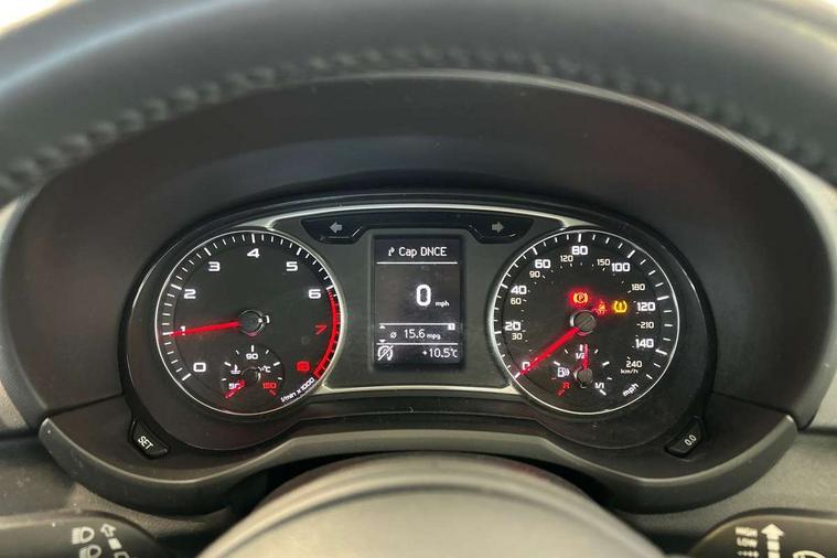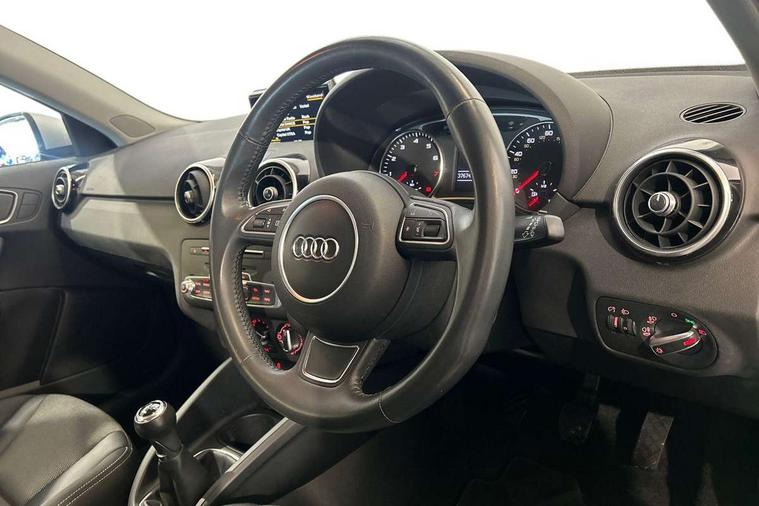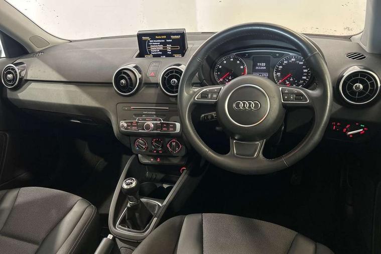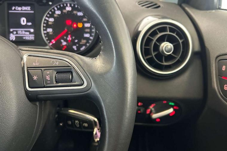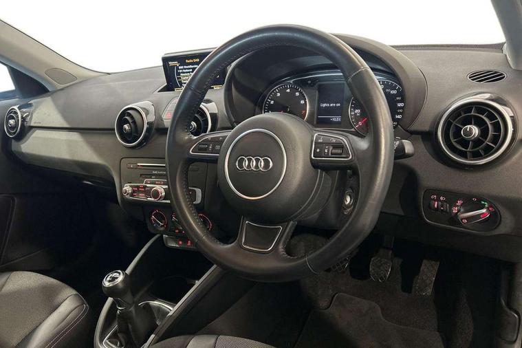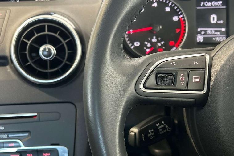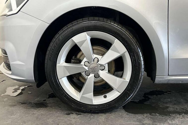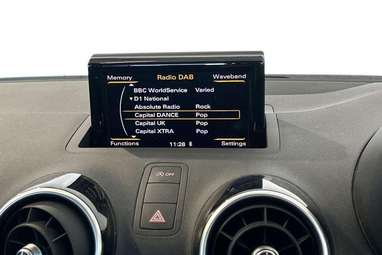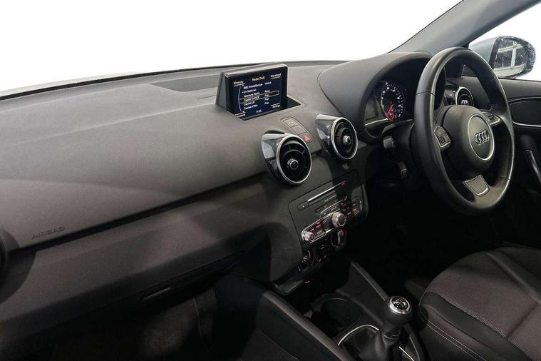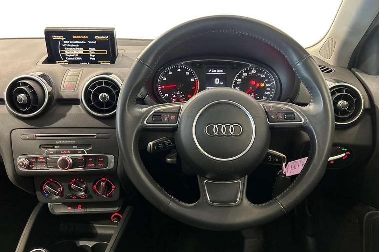 Cruise control, Driver's information system, Electro-mechanical PAS, Low washer fluid indicator, Service interval indicator, Voice control system, Additional SD card reader, Audi music interface, Bluetooth audio streaming, DAB Digital radio, Adaptive brake lights, Body coloured bumpers, Body coloured door mirrors, Electric adjustable door mirrors, Electric front windows, Electric rear windows, Front fog lights, Heat insulating glass, Heated door mirrors, Heated rear windscreen, Polished stainless steel tailpipe, Rear wiper, 12V Accessory socket in centre console, 3 rear seats, 3 spoke leather multifunction sports steering wheel, Adjustable rear head restraints, Cupholders in centre console, Door sills trims with aluminium inlays, Front floor mats, Front head restraints, Front sports seats, Height adjustable front seats, Illuminated glovebox, Isofix attachments on outer rear seats, Jack and tool kit, Leather gear knob, Leather handbrake, Lumbar adjustment for front seats, Rake/reach adjustable steering wheel, Split folding rear seats, Titanium grey cloth headlining, 3x3 point rear seatbelts, ABS/EBD, Brake assist function, Driver and passenger side airbags, Driver/Front Passenger airbags, EDL, ESP with ASR, First aid kit, Front and rear seatbelt reminder, Front passenger airbag deactivation, Head airbags, Height adjustable front seatbelts, Tyre pressure monitor, Warning triangle, Locking wheel bolts, Remote central locking with 2 remote folding keys, Thatcham category 1 alarm + immobiliser, High gloss black air vent sleeves, Tyre repair kit,