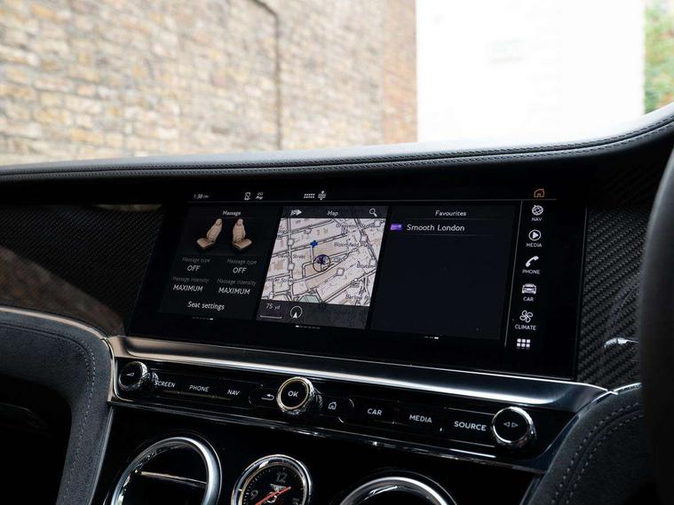 All wheel steering, Apple car play, Blind spot warning, Bluetooth and Wi-Fi audio streaming, Brake pad wear indicator warning light, Collision prevention assist, E-call, Front/rear park distance control, Hands free boot opening, Infotainment system with 12.3 high resolution touch screen retina disp + proximity sensors + advance music interface, single DVD/CD, 2 SD card slots, Navigation system, Park assist system, PAS, Power latching to all doors for easy entry, Rear axle steering, Reversing camera, Reversing traffic warning, Top view camera, Traffic sign recognition, Trip computer, 3 Chamber air suspension with continuous damping control, Battery charger, Bentley Dynamic ride, Dynamic ride height control + ground clearance function, Electronic limited slip differential, 60GB hard drive, Acoustic and heat insulating front windscreen, Acoustic glass, Adaptive brake lights, Auto dimming door mirrors, Auto dimming rear view mirror, Automatic headlights, Black and Chrome bonnet and boot Bentley wing badges, Bright boot finisher, Daytime running lights, Deployable rear boot spoiler, Electrically adjustable door mirrors with heating, power fold, memory and dip on reverse functions, Full LED Matrix headlamps with high-beam assist, Full LED tail lamps, Heated rear windscreen, Jewel fuel and oil filler caps, LED third brake light, Rain sensing windscreen wipers, Rear boot, Speed fender badges, Speed inner treadplates and Bentley illuminated outer treadplates, Speed unique sports sill, Twin oval exhaust finishers, 12v power sockets 2 in cabin and 1 in boot, 2 cupholders in front centre console, 2 individual seats in 2nd row, Black seat belt buckles, Boot carpet in Beluga, Boot lid down lighters, Deep Pile Carpets to match upholstery, Electric tilt and reach adjustment steering column with memory and easy entry functions, Four occupant seating positions, Leather trimmed gearshift lever, Lockable cooled glovebox, Metal bulls eye vents with organ stop, Multi-zone automatic climate control - two zone, Rear headrests, Seats with straight fluted style hide cover, Single front armrest with fore/aft adjust and stowage, Single front passenger seat, Ski hatch, Sports pedals, Steering wheel gearshift paddles, Stowage to front doors, centre console and under centre armrest, Sunvisors with illuminated vanity mirrors, Two rear seats with centre stowage and cup holders including 12v socket and 2 USB charging points, Driver and passenger airbags, Electronic parking brake with drive away assist, Electronic stability programme with traction control, Anti lock braking System , Electronic brake force distribution, HBA + drag torque control, Electronic tyre pressure monitoring, Exit warning, Front vented 420x40mm disc brakes with Bentley branded black brake callipers, Multicollision braking system, Pedestrian warning, Pre crash system, Pre sense braking system, Rear vented 380x30mm disc brakes with Bentley branded black brake callipers, Side airbags, Torque vectoring brake, Alarm, Bentley GPS advanced tracking system, Immobiliser, Keyless entry and start, 21" Summer tyres, Tyre inflation kit,