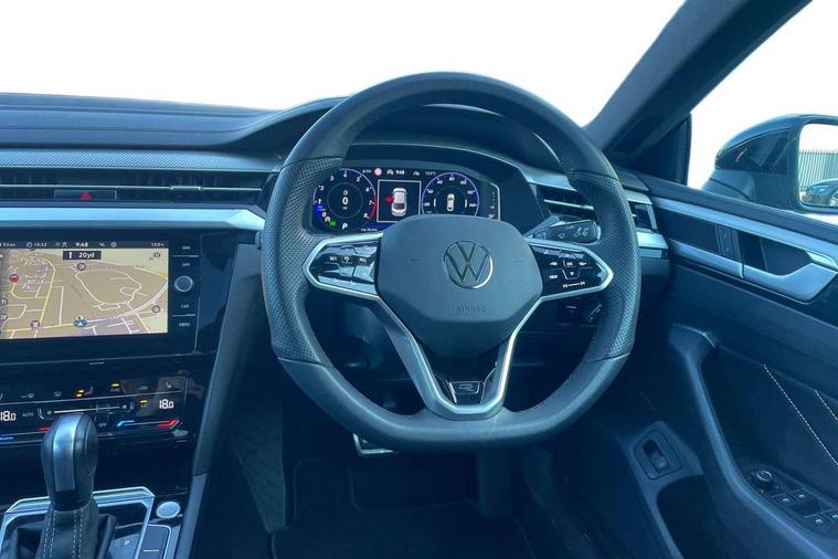 Adaptive cruise control (ACC) with speed limiter, front assist (reacting vehicles pedestrian and cyclists) and follow to stop, App connect including wireless Apple CarPlay, Camera for warning system, Digital cockpit with 10.25" high resolution TFT display screen with customisable menus and information, Driver alert system with fatigue detection, Driver profile selection including ECO function, Dynamic road sign display, eCall - Emergency call service for SOS calls to emergency response, Emergency assist, Hands free boot opening, Press and drive key, Progressive steering, Speedo and rev counter, electronic odometer, trip, service interval display and exterior temperature gauge, Travel assist - Lane keeping assist and traffic jam assist, Voice activation for telephone and navigation, Start/stop function with battery regeneration, Premium USB cable in choice of either Apple or Android smartphone compatibility, Auto dimming interior rear view mirror, Automatic headlights, Body colour door handles, Body colour side skirt, Body coloured top and matt black lower door mirrors with integrated indicators, Chrome plated radiator grille inserts and light switch surrounds, Chrome side window surrounds, Dynamic headlight range control, Electric folding door mirror, adjustable, heated with front passenger exterior mirror lowering function, Front and rear electric windows, Front and rear stainless steel door sill protection, Front windscreen washers and wipers with 4x interval delay, Heat insulating side and rear windows, Heated rear windscreen, Heated windscreen washer jets, High level 3rd brake light, LED rear combination lamp with dynamic indicators, LED rear number plate lights, Panoramic sunroof with tilting and sliding including integrated roller blind, R Line design body coloured bumpers, Rain sensor, Rear fog lamp on one side and reversing lamp on both sides, Rear side wing doors, Rear tinted glass from B pillar backwards, approx 65% tinted, Rear wash/wipe, Tailpipes behind rear bumper, 12V socket in front centre console, 12V socket on rear of front centre armrest, 3 rear head restraints, 3 seat bench in 2nd row, 30 colours options interior ambient lighting, 60:40 split folding rear seat backrests with centre armrest, Air care climatronic 3 Zone electronic air conditioning with automatic air recirculation, Black roof lining, Chrome trim on upper and lower air vents extending across cockpit, Driver and front passenger sunvisor with vanity mirror, Front + rear carpet mats, Front cupholders x 2, Front footwell illumination, Front sports comfort seats, Glovebox, Heated front seats, Height/reach adjust steering wheel, Isofix child seat preparation easy fit for two outer rear seats, Luggage compartment lighting, Removable luggage compartment cover, Single front passenger seat, Split folding front seat backrest with front centre armrest, Stainless steel pedals, Two LED front reading light, 3 rear three point seatbelts, ABS+EBD+Brake assist, Child locks on rear doors, Driver airbag and front passenger airbags with deactivation switch including driver knee airbags, Electronic parking brake, Electronic stability control (ESC) and Electromechanical brake booster, Front disc brakes, Front side airbags with curtain airbags, Hill start assist, Pro active occupant protection to detect critical situations with elevated accident potential from the front, Rear disc brakes, Three point height adjust front seatbelts + pretensioners, Two tone horn, Tyre pressure loss indicator, Warning buzzer for seatbelts if unfastened, Warning triangle, Alarm with interior protection with deactivation via infotainment system, Electronic engine immobiliser, Keyless entry system including start/stop button on centre console, Aluminium decorative inserts, Chrome trim on lower doors in front and rear, Leatherette insert on door and side trim panel in foam film, Piano black decorative inserts in centre console,