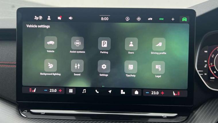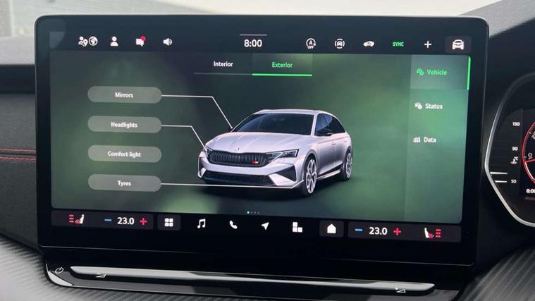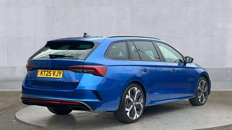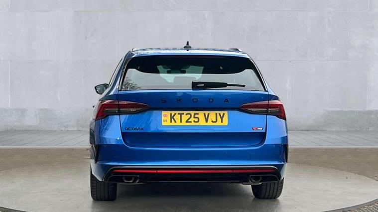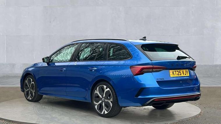 1x USB Typc C port in rear view mirror, 4x USB Type C ports - 2x in front centre console and 2x in rear (45W), Drive mode selection, Driver fatigue sensor, eCall emergency system, Electronic engine sound, Front assist system, Progressive dynamic steering, Traffic sign recognition, Turn Assist, Virtual Cockpit - 10.25" digital display, Voice control system, Wireless charging (15W) with cooling function, Wireless SmartLink for Apple CarPlay and Android Auto, Electronically controlled limited slip differential, vRS suspension, 13" touchscreen display with navigation, DAB Digital radio, Aero front windscreen wipers with intermittent function, Auto dimming rear view mirror, Black sport exhaust pipes, Body colour bumpers, Body colour door handles, Bumpers with rear red reflector strip, Electric front and rear windows, Exterior gloss black sports styling including front grille, window surrounds, door mirrors and badging, Gloss black diffuser, Gloss black roof rails, Gloss black spoiler, Heated rear windscreen, High beam control, High level third brake light, Ice scraper in fuel cap, LED daytime running lights, Logo projection in front doors, Rain and light sensors, Rear fog light on one side and reversing lights on both sides, Rear privacy glass, Rear side wing doors, Rear window wiper, Unique vRS bumpers and exterior styling, 12 volt socket in boot, 2x umbrella in door, 3 rear headrests, 3 seat bench in 2nd row, 4 foldable roof handles, Aluminium pedals, Front head restraints, Front sport seats, Heated front seats, Illuminated glovebox, Interior door handles in dark chrome, Jumbo Box storage, Luggage compartment lighting x2 lights, Mechanical rear seat release from boot, Single front passenger seat, Steering wheel in black leather with black stitching, Storage compartments in left and right of boot, Sun visors with mirrors, Sunglasses storage, Three spoke leather sports multifunction steering wheel with paddles, Ticket holder, Unsplit rear bench seat, split folding backrest with centre armrest with cupholder, Waste bin in door panel, Comfort package - Octavia Estate, Family package - Octavia, Light and view package plus - Octavia, vRS Design Selection pack - Octavia, 3x3 point rear seat belts, Alarm with interior monitoring, tilt sensor and back up horn, Curtain airbags and front side airbags, Driver and front passenger airbags, Drivers knee airbag, Electronic parking brake, ESC including ABS, EBV, MSR, ASR, EDS, HBA, DSR, Front central airbag, Hill hold assist, ISOFIX on front passenger seat and outer rear seats, Passenger airbag deactivate switch, Red brake calipers, Three point seat belts in front and rear, Two tone horn, Tyre pressure monitor, Visual and acoustic seat belt reminder, Warning reflectors in front door, Anti-theft wheel bolts, Keyless entry and start/stop, Remote central locking, Gloss black air vent surrounds, 19" Elias anthracite alloy wheels,