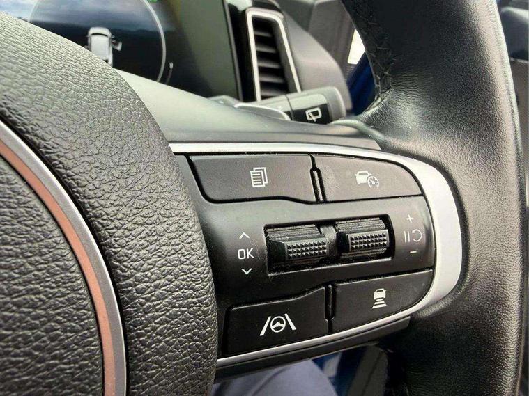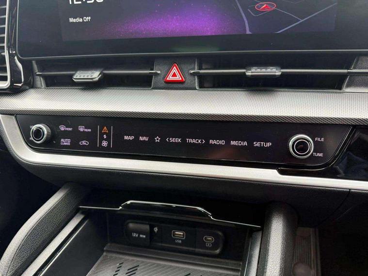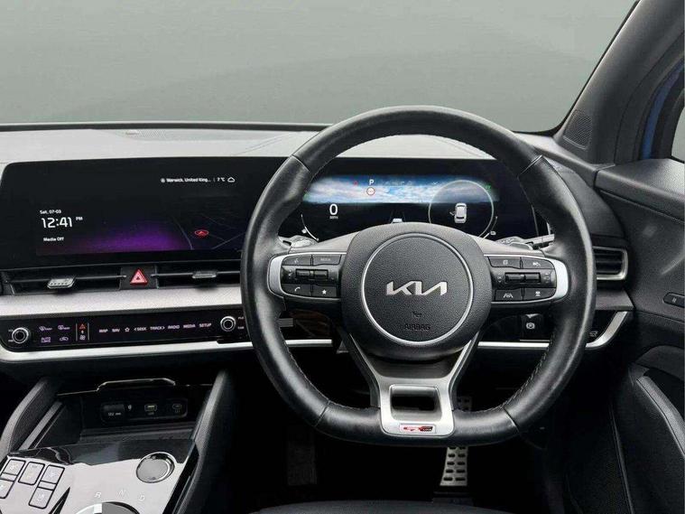 12.3" Display with navigation, 12.3" supervision colour cluster display, 360 degree around view monitor, Apple car play/Android Auto with voice control, Blind spot collision avoidance assist, Blind spot view monitor, Drive mode selector, E-call, Forward collision avoidance assist (FCA) - city/pedestrian/cyclist/junction covering, Front and rear parking sensors, Highway Driving Assist (HDA), Intelligent speed limit assist, Kia Connect (UVO), Lane Following Assist (LFA), Lane keep assist, Low washer fluid warning, Parking collision avoidance assist (PCA), Remote smart parking assist, Reversing camera system integrated into centre fascia screen, Smart cruise control with stop and go functionality, Smart power tailgate, Speed sensitive power steering, Trip computer, Windscreen washer level indicator, Wireless Smartphone charger, Intelligent Stop and Go, Terrain mode select (Mud, Snow, Sand), Bluetooth audio streaming, DAB Radio with MP3, Harman Kardon premium sound system, Rear USB port, Steering wheel mounted audio controls, USB C type charging ports on centre console, USB C type charging ports on side of front seats, USB port for connection of a media device, All round electric windows with drivers and front passenger auto up/down function, Automatic headlight control system, Automatic window defogger, Backlite glass heated with timer, Body colour and black bumper with silver accents, Body colour exterior door handles, Body colour radiator upper garnish and door garnish, Dual LED adaptive headlamps, Electric panoramic glass sunroof (Electric one touch with safety function), Electrically adjustable/heated/folding door mirrors with LED indicators, Front and rear chrome skid plates, Gloss black door mirrors, Gloss black radiator grille, Gloss black side sill and wheel arch body mouldings, Glossy black roof rack, High beam assist, Interior electrochromic mirror, LED daytime running lights, LED front fog lamps, LED High mounted stop light, LED rear combination lamp, Rain sensing wipers with aero blades, Rear fog lamp, Rear privacy glass, Rear side wing doors, Rear spoiler, Rear wiper, Satin finished beltline, Silver coloured inserts to bumpers, Tinted rear glass, Trailer stability assist, 10 way driver/8 way passenger electrically power adjustable seats, 12V power socket in front centre fascia and luggage compartment, 3 seat bench in 2nd row, 3 x passenger assist grips, 40/20/40 split folding rear seat, All-round height adjustable headrests, Ambient lighting, Black headlining, Centre console storage box, Cupholders in rear armrest, D-Shaped sports leather steering wheel and perforated inserts with GT-Line logo, Door courtesy lamps, Drink holder at centre armrest, Driver and front passenger side sunvisors with illuminated vanity mirrors, Driver seat memory function, Drivers seat power lumbar support, Front and rear door storage, Front seat and rear pockets, Front/rear centre armrests, Gear shift indicator, Glovebox illumination, Heated front and outer rear seats, Heated steering wheel, Interior door lock/unlock function, ISOFIX Child seat top tethers and anchor fixings outer rear seats, LED interior personal lamp, LED lighting in overhead console, Luggage area LED light, Luggage area load cover, Luggage net with hooks, Metal paint interior door handles, Paddle shift controls, Rear cabin light, Rear coat hooks, Single front passenger seat, Sports pedals, Suede leather upholstery, Three zone climate control, Tilt/telescopic adjustable steering wheel, Ventilated front seats, Ventilation ducts to rear compartment, Active front headrests, All round 3-point seatbelts, Anti-lock braking system (ABS), Dual front side airbags, Dual horn, Electronic parking brake, Electronic stability control with downhill brake control, Front passenger airbag cut-off switch, Front seatbelt pretensioners + load limiters, Height adjustable front seatbelts, Hill start assist control (HAC), Impact sensing auto door unlocking, Multi collision brake assist, Rear door child safety locks, Rear seat alert system, Traction control, Twin curtain airbags, Twin front airbags, Tyre pressure monitoring system, Advanced anti-theft system including immobiliser and alarm, Door deadlocks, Engine Start/Stop Button with Smart Entry System, Locking wheel nuts, Speed sensitive auto door locking, Visible vehicle identification number, Aluminium pattern finish centre fascia and door garnish, 18" GT-Line alloy wheels, Michelin tyres, Tyre mobility kit,