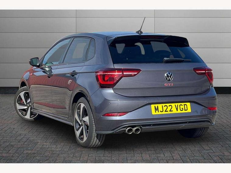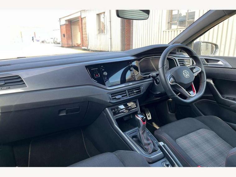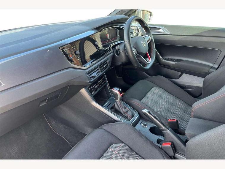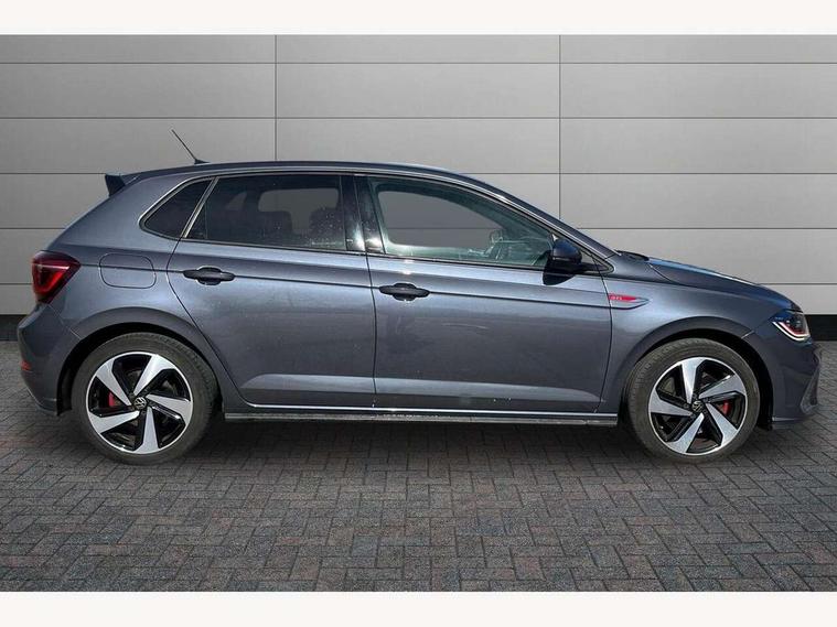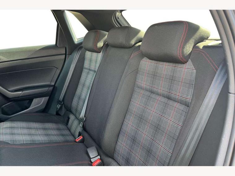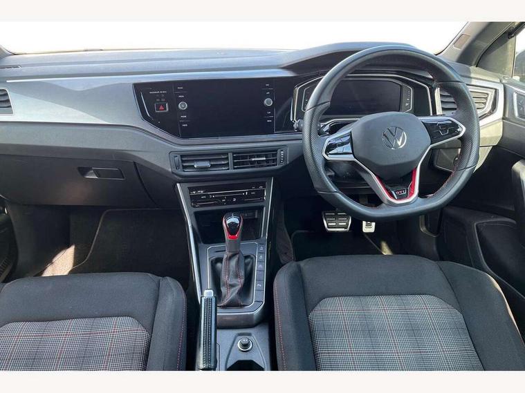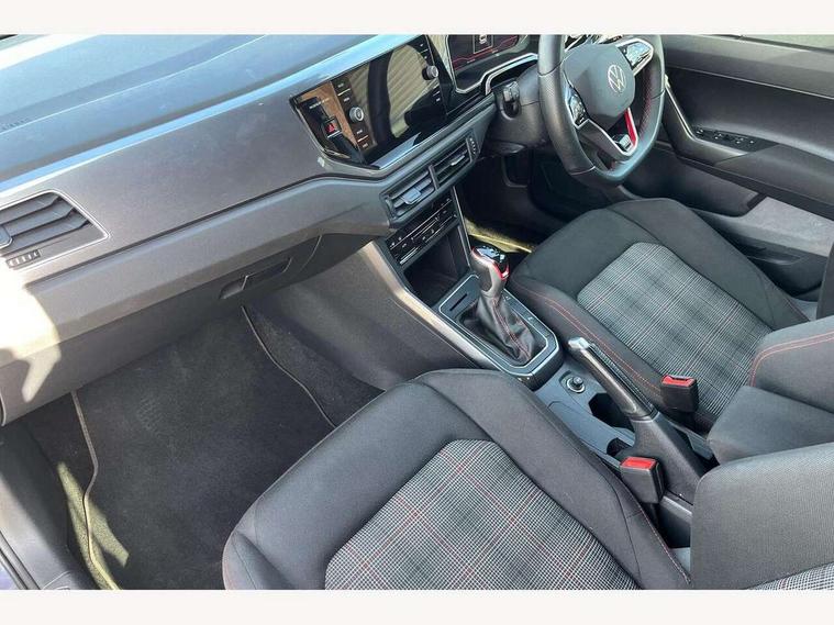 Adaptive cruise control with follow-to-stop and speed limiter, Bluetooth mobile phone interface, Digital Cockpit Pro with 10.25" Display, Driver alert system, Dynamic road sign display, Eco mode, Emergency call service, Power assisted speed sensitive steering, Preparation for We connect and We connect plus, Speedo and rev counter, electronic odometer, trip, service interval display and fuel gauge, Travel Assist - Lane keeping system and traffic jam assist, Travel assist including emergency assist, Trip computer, Warning signal and warning light for front and rear seatbelts not fastened, Washer fluid level indicator, Wireless app connect, Adaptive chassis control including driving profile selection, Front wheel drive, Heavy duty rear axle, Rear shock absorpion sports version, Sports select suspension lowered by 15mm, Start-stop system with battery regeneration (recuperation - energy recovery during braking), XDS electronic differential lock for improved traction and handling, DAB Digital radio, Diversity antenna for FM reception, Front and rear 6 speakers, Body colour bumpers, Body colour door handles, Electric front windows, Front scuff plates in aluminium with GTI logo, Heat insulating darkened glass in side and rear windows, Heat insulating glass windscreen, Power folding adjustable/heated exterior mirrors and front passenger exterior mirror lowering function, Rear electric windows, Rear fog light, Rear side wing doors, Rear windscreen washer and wiper with interval delay, Sport bumpers with air intakes with honeycomb structure, Third brake light, Twin chrome exhaust tailpipes, 12V power socket in centre console, 2 USB-C ports in the front, 2 USB-C charging sockets on the center console in the rear, 3 rear head restraints, 60/40 split folding rear seat and rear seat bench not split, Air care climatronic air conditoning system with active combination filter and 2-zone temperature control, Black roof lining, Ceramique headliner, Chrome plated radiator grille inserts, air vent surrounds and light switch surrounds, Door and side trim panel, Driver and front passenger seat height adjustment, Driver/passenger sunvisors with illuminated vanity mirrors, Front + rear carpet mats, Front centre armrest, Front footwell illumination, Front seat backrest storage pockets, GTI sports gearshift knob in aluminium leather, Handbrake lever handle in leather, Isofix child seat preparation easy-fit (for two outer rear seats, and front passenger seat) compatible with I-size, LED interior light with switch off delay and dimmer, 2 reading lights front and rear, Luggage compartment cover, Luggage compartment floor, Luggage compartment lighting, Single front passenger seat, Stainless steel pedals, Standard pedal cluster, Three spoke leather wrapped multifunction sports steering wheel with shifting paddles, IQ LED matrix headlights pack - Polo, Light and sight pack - Polo GTI, Sports suspension pack - Polo, 3 point height adj front seatbelts + pretensioners, 3x3 point rear seatbelts, ABS, Driver and front passenger airbag with front passenger airbag deactivation, Drivers and front passengers safety optimised head restraints, ESC (Electronic stability control) + EDL (Electronic Differntial lock) and ASR (Traction control), Extended and predictive pedestrian/ cyclist protection, Front and rear disc brakes with red brake calipers, Front curtain and side airbags with center airbag, Hill hold control, Manual child lock in rear doors, Two tone horn, Tyre pressure loss indicator, Alarm with interior protection, Anti-theft alarm system with interior monitoring, backup horn, and towing protection, Anti-theft wheel bolts, Electronic engine immobiliser, Chrome applications on rotary light, mirror adjustment, window regulator switches, outlet with frame in black, Low rolling resistance tyres,