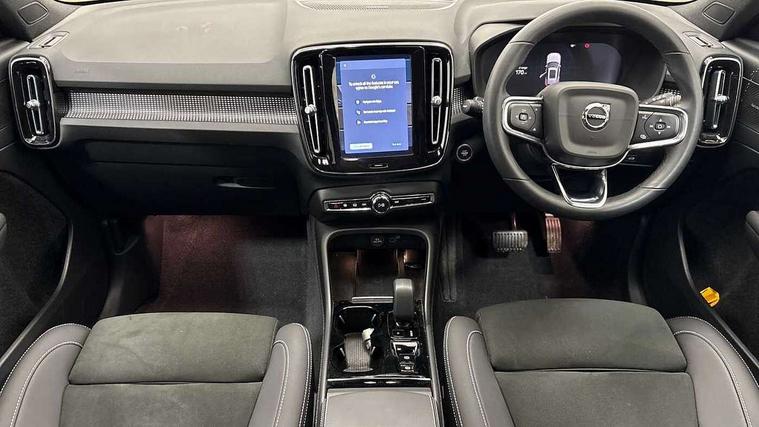 12.3" Progressive Driver Display, 360 degree surround view parking camera with side proximity sensors, 9" centre console portrait touch screen, Adjustable steering wheel force, Bluetooth hands free telephone kit, E-call, Front park assist, Google automatic services - Nav with google maps, apple carplay/android auto, voice recognition with google assistant, Hands free power tailgate, Lane keep assist with driver alert control, Oncoming Lane Mitigation, Rear park assist, Speed limiter, Speed sensitive steering, Wireless/Inductive Mobile Phone Charging, Dynamic chassis, DAB Digital radio, Premium Sound by Harman Kardon, Dolby Pro Logic II Surround Sound, Dirac Unison, 12 speakers/600W and subwoofer, Steering wheel mounted remote controls, Active bending pixel LED headlights with adaptive shadow technology, Active high beam incorporating daytime running lights, Adaptive brake lights with high level LED brake lights, Auto dimming interior mirror, Automatic headlamp levelling, Dark tinted windows for rear door side windows and cargo compartment, Front aluminium tread plates, Front and rear electric windows, Headlight cleaning system, High gloss black front and rear skid plate, High gloss black mesh front grille with high gloss black surround, High gloss black window trim, Home safe and approach lighting, Integrated roof rails in high gloss black, LED front fog lights, Power glass tilt and slide panoramic sunroof with sun curtain, Puddle lights, Rain sensor with automatic windscreen wiper activation, Rear side wing doors, Rear wiper, Roof antenna, Roof spoiler, Visible VIN plate, 12V socket in front tunnel console and luggage compartment, 2-Zone electronic climate control with CleanZone air quality system and pollen filter, 3 seat bench in 2nd row, 3 Spoke tailored steering wheel with chrome trim, 60/40 versatile split folding rear seat, A-pillar parking ticket holder, Ambient front door and instrumental panel lighting, Centre console cupholders and storage, Flexible load floor and grocery bag holder, Floor mats, Front door pocket and front cupholder illumination, Front footwell illumination, Front headrests, Front reading light and theatre lighting, Front seat cushion extensions, Front tunnel pocket, Glovebox bag hook, Heated front seats, Height adjustable passenger seat, Height/reach adjustable steering column, High gloss centre tunnel deco, Illuminated glovebox, Illuminated luggage compartment, Illuminated tailgate, Illuminated vanity mirrors, Integrated waste bin, Isofix attachments on outer rear seats, Load protection net, Multi directional lumbar support, Power driver seat with memory + exterior mirrors memory, Power folding rear headrests, Power passenger seat, Rear armrest / integral cup holders / storage tray, Rear reading and courtesy lights, Single front passenger seat, Underfloor cargo storage, Climate pack without heated front seats - XC40, Driver assist pack - XC40, 3x3 point rear seatbelts, City safety with steering support with Pedestrian + cyclist + front collision warning with full auto brake and rear auto brake, Drivers knee airbag, Dual stage driver/passenger airbags, Electronic parking brake with auto hold, First aid kit, Front and outer rear seatbelt reminder and pretensioners, Front seats SIPS airbags, Hill descent control, Hill start assist, Inflatable curtain, Passenger airbag cut-off device, Power child locks on rear doors, Road sign information display, Run off Road Mitigation, Run off Road Protection, SIPS (Side Impact Protection System), Slippery road and hazard light alert, Stability and Traction Control with Spin control, Engine Drag Control and Corner Traction Control, Tyre pressure monitoring system, Vehicle deceleration control with Anti-lock Brake System, Electronic Brake Distribution and Emergency Brake Assist, Warning triangle, WHIPS whiplash protection system - front, Anti-theft alarm including immobiliser/volume sensor + level sensor, Key integrated remote control central locking + fuel flap with deadlocking system and auto open/close power windows, Keyless drive includes keyless entry and keyless start, Locking wheel nuts,