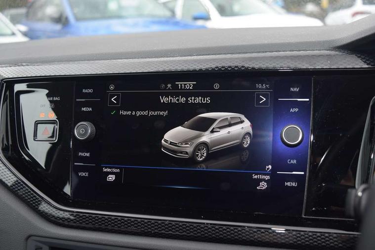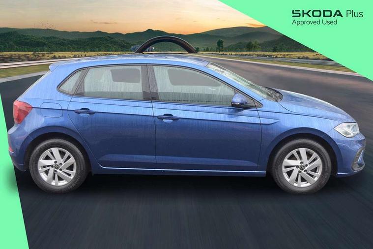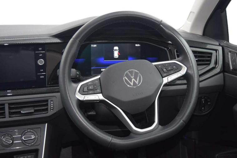 Adaptive cruise control without follow-to-stop and speed limiter, Bluetooth mobile phone interface, Driver alert system, Emergency call service, Front assist system, Power assisted speed sensitive steering, Preparation for We connect and We connect plus, Speedo and rev counter, electronic odometer, trip, service interval display and fuel gauge, Standard rear axle, Travel Assist - Lane keeping system and traffic jam assist, Travel assist including emergency assist, Trip computer, Warning signal and warning light for front and rear seatbelts not fastened, Washer fluid level indicator, Wireless app connect, Front wheel drive, Rear shock absorpion, Start-stop system with battery regeneration (recuperation - energy recovery during braking), DAB Digital radio, Diversity antenna for FM reception, Front and rear 6 speakers, Automatic dimming interior rear view mirror, Body colour bumpers, Body colour door handles, Body colour door mirrors, Electric front windows, Heat insulating darkened glass in side and rear windows, Heat insulating glass windscreen, Power folding adjustable/heated exterior mirrors and front passenger exterior mirror lowering function, Rain sensor, Rear electric windows, Rear fog light, Rear side wing doors, Rear windscreen washer and wiper with interval delay, Third brake light, 12V power socket in centre console, 2 front and 2 rear reading lights, 2 USB-C ports in the front, 2 USB-C charging sockets on the center console in the rear, 3 rear head restraints, 60/40 split folding rear seat and rear seat bench not split, Ceramique headliner, Chrome plated radiator grille inserts, air vent surrounds and light switch surrounds, Door and side trim panel, Driver and front passenger seat height adjustment, Driver/passenger sunvisors with illuminated vanity mirrors, Front centre armrest, Front seat backrest storage pockets, Front standard seats, Handbrake lever handle in leather, Hartley/Thomas cloth upholstery, Isofix child seat preparation easy-fit (for two outer rear seats, and front passenger seat) compatible with I-size, Leather trimmed gear knob, Luggage compartment cover, Luggage compartment floor, Luggage compartment lighting, Multifunction steering wheel, Single front passenger seat, Standard pedal cluster, Light and vision pack - Polo, 3 point height adj front seatbelts + pretensioners, 3x3 point rear seatbelts, ABS, Driver and front passenger airbag with front passenger airbag deactivation, Drivers and front passengers safety optimised head restraints, ESC (Electronic stability control) + EDL (Electronic Differntial lock) and ASR (Traction control), Extended and predictive pedestrian/ cyclist protection, Front curtain and side airbags with center airbag, Front disc brakes, Hill hold control, Manual child lock in rear doors, Rear drum brakes, Single tone horn, Tyre pressure loss indicator, Alarm with interior protection, Anti-theft alarm system with interior monitoring, backup horn, and towing protection, Anti-theft wheel bolts, Electronic engine immobiliser, Lava stone black gloss/matt decorative inserts in dash and front door panels, Low rolling resistance tyres,