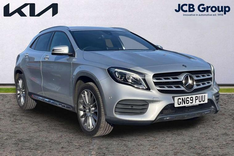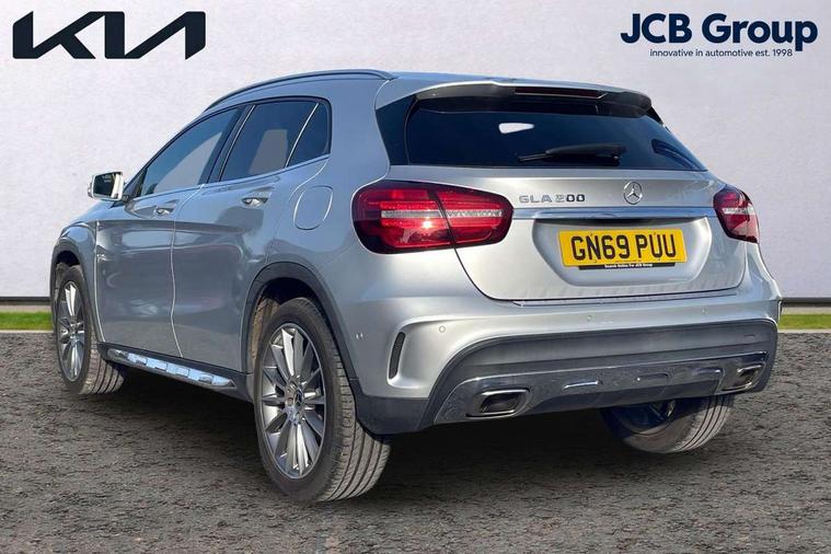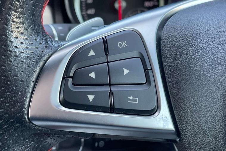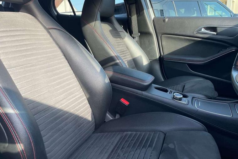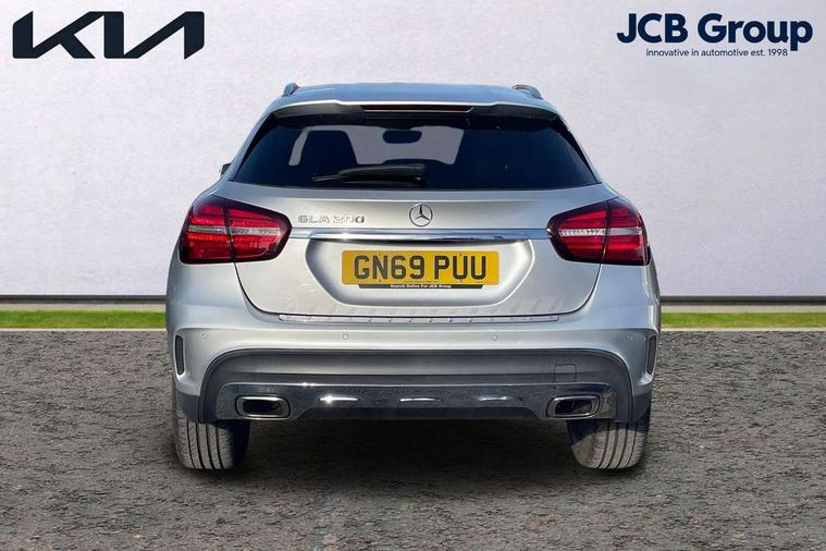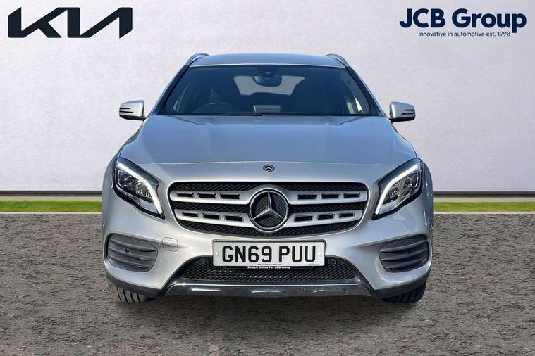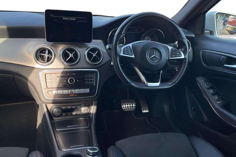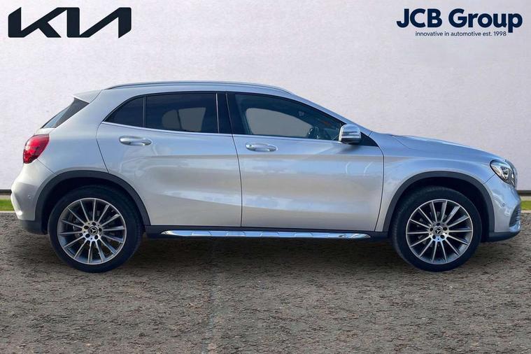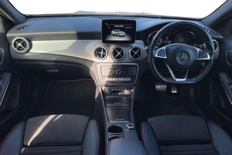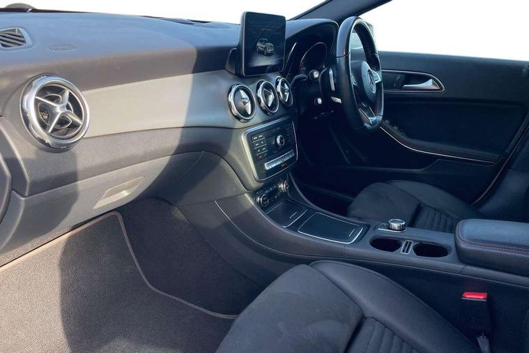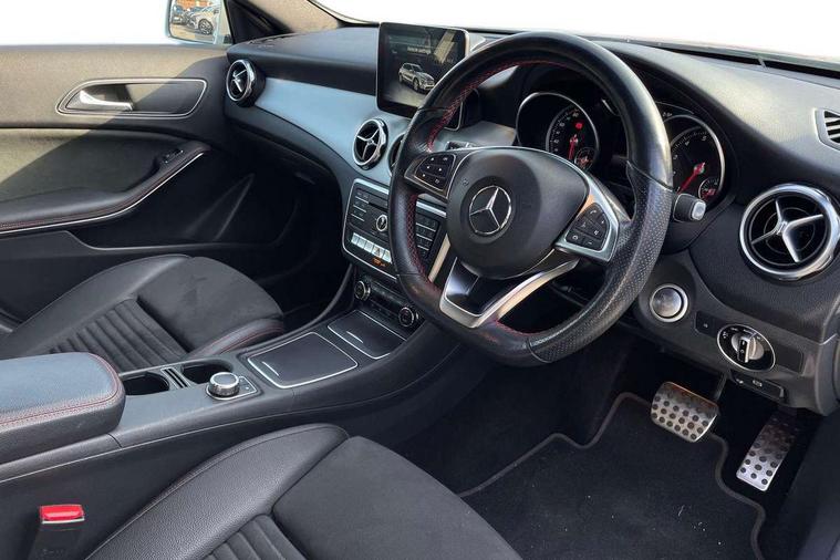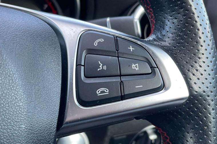 180 degree reversing camera with parking guidelines, 4 analogue dials and needles suspended in six o'clock position, Attention assist, DYNAMIC SELECT with a choice of driving modes (ECO, Comfort, Sport and Individual), Easy-pack tailgate - Powered opening/closing automatically, ECO start/stop function, Fluid level warning indicator for fuel, oil, coolant and washer fluid, Instrument cluster, Mercedes me connect including emergency call system, accident recovery, breakdown management and maintenance, Multi function trip computer, Outside temperature gauge, Parking pilot with front and rear parking sensor and steering assist, Service indicator (ASSYST), Smartphone integration with Apple CarPlay and Android auto, Sports speed sensitive direct steer system with servo assistance, Off road comfort suspension, 8" media display touchpad, Audio 20 radio/single CD/MP3, 6 speakers, telephone keypad, twin radio tuner, Bluetooth, 2 USB ports, SD card slot and Garmin Map pilot nav system, Media interface, Adaptive brake lights, Automatic headlamp activation, Body colour door handles with chrome inserts, Body coloured bumper with front and rear apron trim in matt titanium grey, Chrome beltline strips, Electric front windows, Electrically adjustable and heated door mirrors, Front door sills with Mercedes-Benz lettering, Front fog lights, Full LED tail lamps, Heat insulating dark tinted privacy glass from the B-pillar backwards, Heated glass rear windscreen + timer control, LED high performance headlamps, LED third brake light, Rain sensor windscreen wipers with two sensitivity stages, Rear windscreen intermittent wiper with automatic activation when reversing, Roof mounted radio aerial, Two pipe visible exhaust system with chrome tailpipe tips, 1/3 to 2/3 split folding rear seats, 12V power socket in centre console, 12V socket in luggage compartment, 3 spoke and 12 button flattened bottom multifunction steering wheel trimmed in nappa leather with perforated leather grip area, Air conditioning - Two zone thermotronic luxury automatic climate control with display, Air vents with chrome surround and cruciform nozzles, Ambient lighting in front headrests, AMG brushed stainless steel sports pedals with rubber studs, AMG floor mats with AMG lettering and stiched edging, Artico man-made leather/Microfibre Dinamica upholstery with red contrast stitching, Auto Mercedes-Benz child seat recognition sensor, Black roof lining, Front centre armrest with stowage, Front footwell lights, Front seat cushion length adjustment, Gearshift paddles, Heated front seats, Illuminated door sills, Illuminated glove compartment stowage, Interior door handle illumination, Luggage compartment cover, Manually adjustable front seats, Manually height and reach adjustable steering column, Rear footwell lights, Rear Reading Lamps, Sports seats with integrated head restraints, Stowage compartment beneath load compartment floor, Stowage compartment lighting, Sunvisors with illuminated vanity mirrors, Twin front cup holders, Two outer rear seat isofix and top tether child seat fixing points, White courtesy and red warning lights in front doors and boot lid, Comfort seat pack - GLA Class, 3 rear three point seatbelts, Active bonnet pedestrain safety measure which detects an impact and raises bonnet by 65mm, Active brake assist, Adaptive brake assist with hold function and hill start assist, Anti-lock braking system (ABS), Black seat belts, Childproof locks manually operated for rear doors and electrically operated for rear power windows, Crash responsive emergency lighting, Drivers knee airbag, Dual stage driver and front passenger airbags, Electronic parking brake, Electronic stability programme with acceleration skid control, Front and rear seatbelt reminder, Front passenger seat occupancy sensor, Front side airbags, Tyre pressure monitoring system, Warning triangle and first aid kit, Window airbags, Anti-theft alarm system/interior protection with tow-away protection and interior monitoring systems, Chrome surround electric key, Keyless Go starting function, Remote central locking, Light aluminium with longitudinal grain interior trim, Run flat tyres,