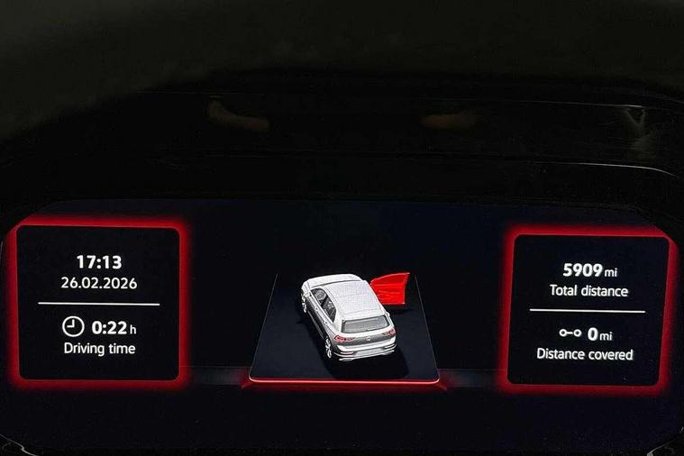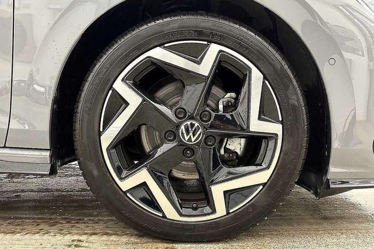Activated carbon canister, Adaptive cruise control (ACC), Advanced driver attention and drowsiness monitor, Dynamic road sign display, Dynamic steering, E-Sim card for online connectivity, eCall emergency call system, Multi-color Digital cockpit pro, selection of different info profile possible, Multifunction front facing camera for distance control, Navigation system, Oncoming vehicle braking when turning including swerve support, Preparation for light assist system, Speed limiter, Speedo, rev counter, electronic odometer, trip, service interval display, exterior temperature and fuel gauge, Traffic jam assist, Voice enhancer and voice control, Warning signal and warning light for front and rear seatbelts not fastened, We connect plus preparation, We connect preparation, Wireless app connect, Petrol Particulate Filter, Start-stop system with battery regeneration (recuperation - energy recovery during braking), XDS electronic differential lock for improved traction and handling, 2 USB C ports in front, 2 USB charging sockets on the centre console in the rear charging capacity upto 45W, Comfort telephony + wireless charging, without wireless aerial connection, Digital radio reception (DAB), Diversity antenna for FM reception, Gaming platform via car app, Infotainment system with 12.9" display, Mobile phone interface with inductive charging feature, 3rd brake light, Auto headlights, Automatic headlamp activation with Coming home and Leaving home feature, Body colored bumpers in R-Line style, Body colour door handles, Exterior ambient lighting with illuminated door handles, Exterior mirrors convex on the left and aspherical on the right, Front and rear electric windows, Heat insulating windshield made of laminated glass, LED daytime running lights, Rear exhaust tailpipe, Rear fog light on one side and reversing lights on both sides, Rear side wing doors, Rear windscreen washer and wiper with interval delay, Remote electrically foldable door mirrors, puddle lights and reverse activated passenger's door mirror, Welcome light with surround lighting, 12V socket in front centre console, 12V socket in luggage compartment, 3 rear head restraints, 3 seat bench in 2nd row, Ambient lighting with 30 colour including LED light unit in front footwell with selectable light colour, Brushed stainless steel pedals, Carpet mats, front and rear, Chrome plated radiator grille inserts, air vent surrounds and light switch surrounds, Front centre armrest, Integrated front head restraints, ISOFIX anchors for child seats on outer rear bench seats and on front passanger seat compatible for i-Size, Leather gearshift handle, Luggage compartment lighting, Premium sports seats in front, Rear cupholder and loadthough, Single front passenger seat, Soul black instrument panel, Split folding backrest with centre armrest and unsplit rear seat bench, Storm grey roof lining, Sun visors with illuminated vanity mirrors, 3 point height adj front seatbelts + pretensioners, 3 rear three point seatbelts, ABS, Autonomous emergency braking front assist with pedestrian and cyclist monitoring, Child locks on rear doors, Driver and front passenger airbag with front passenger airbag deactivation, Electronic parking brake with auto hold, ESC (Electronic Stability Control), Extended pedestrian protection measures, Rear disc brakes, Two tone horn, Tyre pressure loss indicator, Volkswagen roadside assistance, Anti theft wheel bolts, Preparation for alcohol interlock, Decorative inserts carbon grey for dashboard and front door trim panels,