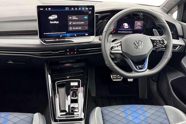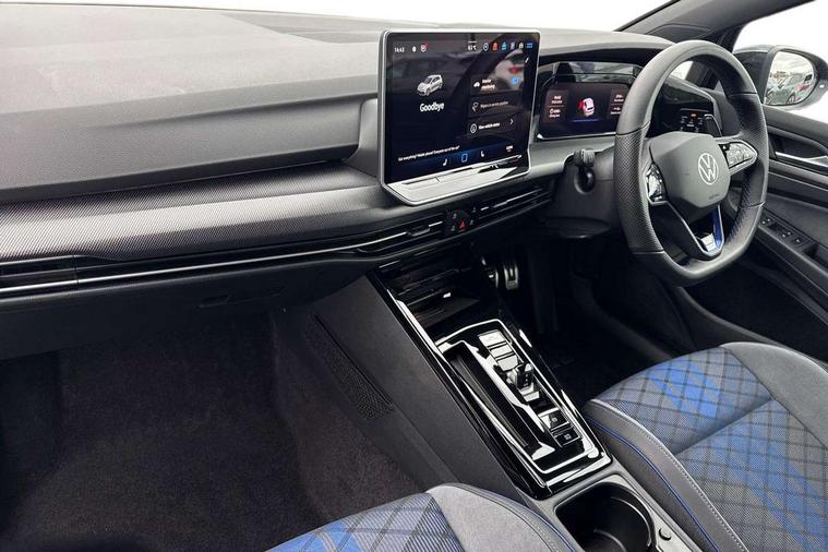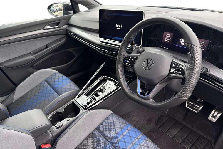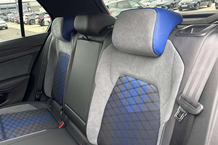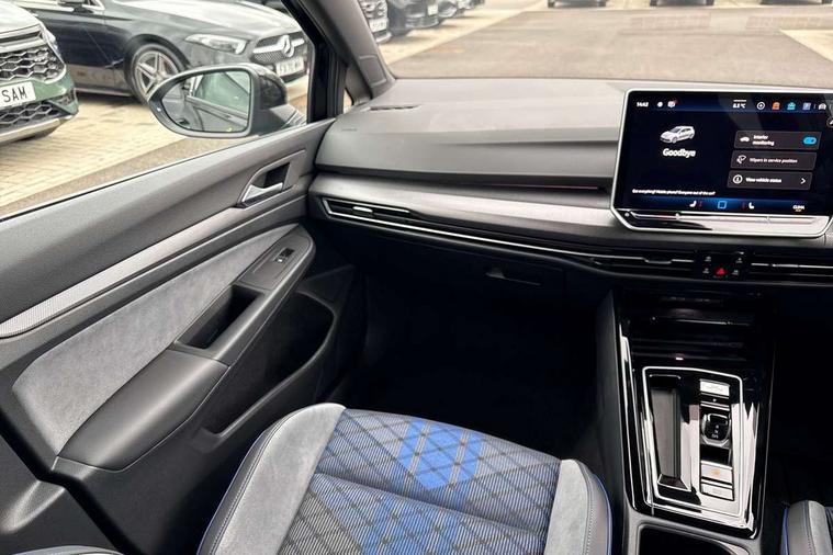 Activated carbon canister, Adaptive cruise control (ACC), Advanced driver attention and drowsiness monitor, Dynamic road sign display, E-Sim card for online connectivity, eCall emergency call system, Electronic maximum speed limit increased to 270 km/h, includes driving Modes 'drift' and 'special', larger roof spolier and GPS laptimer + G-Meter, Multi-color Digital cockpit pro, selection of different info profile possible, Multifunction front facing camera for distance control, Navigation system, Oncoming vehicle braking when turning including swerve support, Progressive steering, Side assist blind spot lane change system, rear traffic alert and exit warning system, Speed limiter, Speedo, rev counter, electronic odometer, trip, service interval display, exterior temperature and fuel gauge, Traffic jam assist, Voice enhancer and voice control, Warning signal and warning light for front and rear seatbelts not fastened, We connect plus preparation, We connect preparation, Wireless app connect, All wheel drive - 4Motion, Petrol Particulate Filter, Start-stop system with battery regeneration (recuperation - energy recovery during braking), XDS electronic differential lock for improved traction and handling, 2 USB C ports in front, 2 USB charging sockets on the centre console in the rear charging capacity upto 45W, Digital radio reception (DAB), Diversity antenna for FM reception, Gaming platform via car app, Infotainment system with 12.9" display, Mobile phone interface with inductive charging feature, 3rd brake light, Auto dimming rear view mirror, Automatic headlamp activation with Coming home and Leaving home feature, Black badge on B-pillar, Black mirror caps, Black strips on radiator grille and headlights, Body colour door handles, Darkened headlights, Darkened R Logos and VW logos in front, rear and on fender, Exterior mirrors convex on the left and aspherical on the right, Front and rear electric windows, Front fog lamps and cornering light, Heat insulating windshield made of laminated glass, Illuminated lighting animation with wake up/goodbye scenario, LED matrix headlights with ambient light V2, advanced high beam, dynamic range contol with cornering, LED rear lamp with indicator, poor weather, LED separate daytime running light, Light assist with High beam control, R name plate, Rain sensor, Rear fog light on one side and reversing lights on both sides, Rear side wing doors, Rear tinted glass 65% light absorbing from B pillar backwards, Rear windscreen washer and wiper with interval delay, Remote electrically foldable door mirrors, puddle lights and reverse activated passenger's door mirror, Welcome light with surround lighting, 12V socket in front centre console, 12V socket in luggage compartment, 3 rear head restraints, 3 seat bench in 2nd row, 30 colour ambient lighting, illuminated center console storage compartment in front, Air care climatronic 3 Zone automatic climate control with rear air conditioning control panel, Aluminium gearshift handle, Brushed stainless steel pedals, Chrome plated radiator grille inserts, air vent surrounds and light switch surrounds, Entry lights, Front + rear black carpet mats, Front centre armrest, Integrated front head restraints, ISOFIX anchors for child seats on outer rear bench seats and on front passanger seat compatible for i-Size, Luggage compartment lighting, Rear cupholder and loadthough, Single front passenger seat, Soul black instrument panel, Soul black roof lining, Split folding backrest with centre armrest and unsplit rear seat bench, Sun visors with illuminated vanity mirrors, Driver assistance pack - Golf Estate/Hatchback Auto, R styling pack - Golf, Technology park and comfort pro package - Golf Hatchback, 3 point height adj front seatbelts + pretensioners, 3 rear three point seatbelts, ABS, Autonomous emergency braking front assist with pedestrian and cyclist monitoring, Child locks on rear doors, Driver and front passenger airbag with front passenger airbag deactivation, Electronic parking brake with auto hold, ESC (Electronic Stability Control), Extended pedestrian protection measures, Front and rear black brake calipers with darkened R-logo, Hill start assist, Rear disc brakes, Two tone horn, Tyre pressure loss indicator, Volkswagen roadside assistance, Anti theft wheel bolts, Preparation for alcohol interlock, Sporty vehicle dynamics, Tool kit for tyre mobility set, Tyre mobility kit Includes 12V compressor and tyre sealant, Wheel hub cover with darkened R-logo,