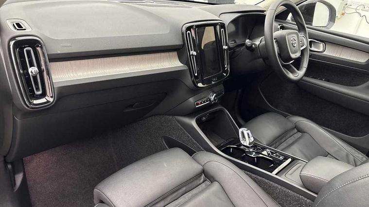 12.3" Progressive Driver Display, 360 degree surround view parking camera with side proximity sensors, 9" centre console portrait touch screen, Adjustable steering wheel force, Android auto (Wired), Apple carplay (wired), Bluetooth handsfree system, Driver alert control, Driver assistance (pilot assist and adaptive cruise control), Driver awareness - Blind spot information system with steer assist, cross traffic alert with autobrake and rear collision warning and mitigation, E-call, Front park assist, Google automotive services - Enabled entertainment apps, navigation with google maps, voice recognition with google assistant, Hands free power tailgate, Intelligent speed assistance, Lane keeping aid, Oncoming Lane Mitigation, Rear park assist, Speed sensitive steering, Volvo cars services with app - Driving journal, emergency and breakdown call, engine remote start, remote door locking/unlocking and vehicle dashboard, Wireless/Inductive Mobile Phone Charging, Automatic transmission with start/stop and manual change functions, Dynamic chassis, DAB Digital radio, Premium Sound by Harman Kardon, Dolby Pro Logic II Surround Sound, Dirac Unison, 12 speakers/600W and subwoofer, Steering wheel mounted remote controls, Active bending pixel LED headlights with adaptive shadow technology, Active high beam incorporating daytime running lights, Adaptive brake lights with high level LED brake lights, Auto dimming feature for exterior door mirrors, Auto dimming interior mirror, Automatic headlamp levelling, Dark tinted windows - rear side windows and rear screen, Front aluminium tread plates, Front and rear electric windows, Headlight cleaning system, High gloss black front and rear skid plate, High gloss black front bumper deco, High gloss black mesh front grille with high gloss black surround, High gloss black window trim, Home safe and approach lighting, Integrated roof rails in high gloss black, LED front fog lights with cornering function, Power glass tilt and slide panoramic sunroof with sun curtain, Puddle lights, Rain sensor with automatic windscreen wiper activation, Rear side wing doors, Rear wiper, Roof antenna, Roof spoiler, Visible VIN plate, 12V socket in front tunnel console and luggage compartment, 2-Zone electronic climate control with CleanZone air quality system and pollen filter, 3 seat bench in 2nd row, 3 Spoke tailored steering wheel with chrome trim, 60/40 versatile split folding rear seat, Centre console cupholders and storage, Flexible load floor and grocery bag holder, Floor mats, Front cabin courtesy lights, Front door pocket, front cupholder, ambient front door, rear reading, rear courtesy, instrument panel and tailgate lighting, Front footwell illumination, Front headrests, Front reading lights, Front seat cushion extensions, Front side step illumination (under door), Glovebox bag hook, Heated front seats, Height/reach adjustable steering column, High gloss centre tunnel deco, Illuminated glovebox, Illuminated luggage compartment, Illuminated vanity mirrors + ticket holder, Integrated waste bin, Isofix attachments on outer rear seats, Load cover, Load protection net, Multi directional lumbar support for driver and passenger seat, Power driver seat with memory + exterior mirrors memory, Power folding rear headrests, Power passenger seat, Rear armrest with cupholders, Single front passenger seat, Underfloor cargo storage, Climate pack without heated front seats - XC40, 3x3 point rear seatbelts, City safety with steering support with Pedestrian + cyclist + front collision warning with full auto brake and rear auto brake, Driver and passenger airbags, Drivers knee airbag, Electronic parking brake with auto hold, First aid kit, Front and outer rear seatbelt reminder and pretensioners, Front seats SIPS airbags, Hill descent control, Hill start assist, Inflatable curtain, Passenger airbag cut-off device, Power child locks on rear doors, Road sign information display, Run off Road Protection, SIPS (Side Impact Protection System), Slippery road and hazard light alert, Stability and Traction Control with Spin control, Engine Drag Control and Corner Traction Control, Tyre pressure monitoring system, Vehicle deceleration control with Anti-lock Brake System, Electronic Brake Distribution and Emergency Brake Assist, Warning triangle, WHIPS whiplash protection system - front, 2 x Key integrated remote control central locking including with deadlocking system and auto open/close windows and sunroof, Anti-theft alarm including immobiliser/volume sensor + level sensor, Keyless drive includes keyless entry and keyless start, Locking wheel nuts,