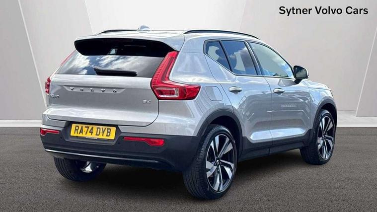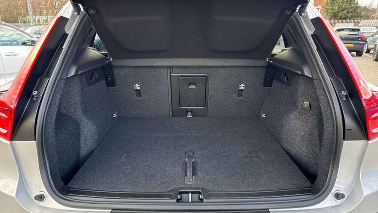 12.3" Progressive Driver Display, 9" centre console portrait touch screen, Adjustable steering wheel force, Android auto (Wired), Apple carplay (wired), Bluetooth handsfree system, Cruise control, Driver alert control, E-call, Front park assist, Google automotive services - Enabled entertainment apps, navigation with google maps, voice recognition with google assistant, Hands free power tailgate, Intelligent speed assistance, Lane keeping aid, Oncoming Lane Mitigation, Rear park assist, Speed sensitive steering, Volvo cars services with app - Driving journal, emergency and breakdown call, engine remote start, remote door locking/unlocking and vehicle dashboard, Wireless/Inductive Mobile Phone Charging, Automatic transmission with start/stop and manual change functions, Dynamic chassis, DAB Digital radio, Steering wheel mounted remote controls, Adaptive brake lights with high level LED brake lights, Auto dimming interior mirror, Automatic headlamp levelling, Automatic LED Headlights + Active high beam incorporating daytime running lights, Front aluminium tread plates, Front and rear electric windows, High gloss black front and rear skid plate, High gloss black front bumper deco, High gloss black mesh front grille with high gloss black surround, High gloss black window trim, Home safe and approach lighting, Integrated roof rails in high gloss black, LED front fog lights, Puddle lights, Rain sensor with automatic windscreen wiper activation, Rear side wing doors, Rear wiper, Roof antenna, Roof spoiler, Visible VIN plate, 12V socket in front tunnel console and luggage compartment, 2-Zone electronic climate control with CleanZone air quality system and pollen filter, 3 seat bench in 2nd row, 3 Spoke tailored steering wheel with chrome trim, 60/40 versatile split folding rear seat, Centre console cupholders and storage, Flexible load floor and grocery bag holder, Floor mats, Front cabin courtesy lights, Front door pocket, front cupholder, ambient front door, rear reading, rear courtesy, instrument panel and tailgate lighting, Front footwell illumination, Front headrests, Front reading lights, Front seat cushion extensions, Front side step illumination (under door), Glovebox bag hook, Heated front seats, Height adjustable passenger seat, Height/reach adjustable steering column, High gloss centre tunnel deco, Illuminated glovebox, Illuminated luggage compartment, Illuminated vanity mirrors + ticket holder, Integrated waste bin, Isofix attachments on outer rear seats, Load cover, Load protection net, Multi directional lumbar support for driver and passenger seat, Power driver seat with memory + exterior mirrors memory, Rear armrest with cupholders, Rear headrests, Single front passenger seat, Underfloor cargo storage, Climate pack without heated front seats - XC40, 3x3 point rear seatbelts, City safety with steering support with Pedestrian + cyclist + front collision warning with full auto brake and rear auto brake, Driver and passenger airbags, Drivers knee airbag, Electronic parking brake with auto hold, First aid kit, Front and outer rear seatbelt reminder and pretensioners, Front seats SIPS airbags, Hill descent control, Hill start assist, Inflatable curtain, Passenger airbag cut-off device, Power child locks on rear doors, Road sign information display, Run off Road Protection, SIPS (Side Impact Protection System), Slippery road and hazard light alert, Stability and Traction Control with Spin control, Engine Drag Control and Corner Traction Control, Tyre pressure monitoring system, Vehicle deceleration control with Anti-lock Brake System, Electronic Brake Distribution and Emergency Brake Assist, Warning triangle, WHIPS whiplash protection system - front, 2 x Key integrated remote control central locking including with deadlocking system and auto open/close windows, Anti-theft alarm including immobiliser/volume sensor + level sensor, Keyless drive includes keyless entry and keyless start, Locking wheel nuts,