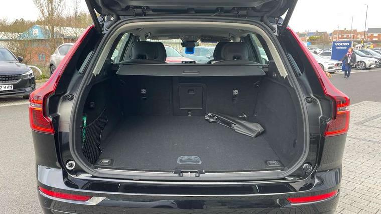 11.2" centre console touch screen, 12.3" Progressive Driver Display, 360 degree surround view parking camera with side proximity sensors, Adaptive cruise control, Adjustable steering wheel force, Android auto (Wired), Apple carplay (wired), Bluetooth handsfree system, Driver alert control with lane keeping aid, Driver understanding system, Emergency services call system, Front and rear park assist, Google Automotive Services, Intelligent speed assistance, Oncoming Lane Mitigation, PAS, Power operated tailgate with handsfree opening and closing, Service interval indicator, Speed limiter, Speed sensitive steering, Trip computer, Volvo cars services with app, Volvo on call with App, Wireless/Inductive Mobile Phone Charging, 8 speed automatic transmission with start/stop + manual change functions, DAB Digital radio, Premium Sound by Harman Kardon, dirac unison, dolby pro logic II surround sound, 13 speakers/600W output and fresh air subwoofer, Steering wheel remote infotainment controls, Adaptive brake lights with high level LED brake lights, Auto dimming interior + exterior mirrors, Automatic headlight levelling system, Automatic LED Headlights + Active high beam incorporating daytime running lights, Electric adjustable/heated/auto power folding door mirrors, Electric front+rear windows, Front aluminium tread plates, Heated front windscreen, High gloss black door mirrors and window surround, High gloss black front and rear bumper decoratives, High gloss black mesh front grille with high gloss black surround, Home safe and approach lighting, Integrated roof rails in high gloss black, Puddle lights, Rain sensor with automatic windscreen wiper activation, Rear side wing doors, Rear wiper, Roof antenna, Roof spoiler, Tinted windscreen, Visible VIN plate, 12V socket in front tunnel console and luggage compartment, 3 seat bench in 2nd row, 3 Spoke tailored steering wheel with chrome trim, 4 Zone electronic climate control, A-pillar parking ticket holder, Air purifier particulate matter (PM) 2.5 filter, B Pillar ventilation, Bright metal luggage scuff plate, Centre console cupholders and storage, Charcoal floor mats, Front and rear courtesy lights, Front and rear door pocket illumination, Front cupholder illumination, Front footwell illumination, Front reading lights, Front seat cushion extensions, Glovebox compartment with illumination, Head restraints for all seats, Heated front seats, Heated steering wheel, Height/reach adjustable steering column, Illuminated luggage compartment, Illuminated vanity mirrors + ticket holder, Inner door release handle illumination, ISOFIX attachment on outer rear seats, Load cover, Load protection net, Multi directional lumbar support, Power driver seat with memory + exterior mirrors memory, Power height adjustable passenger seat, Power passenger seat with memory, Quilted nordico leather upholstery, Rear armrest with cupholder, Rear footwell and front and rear side step illumination, Rear reading lights, Rear seat concealed storage, Single front passenger seat, Tailgate illumination and ambient door lighting, Underfloor stowage compartment, Versatile split folding rear seat - 60/40, Driver assist pack without Adaptive cruise control - XC60, 5 three point seatbelts, City safety with steering support with Pedestrian + cyclist + front collision warning with full auto brake and rear auto brake, Drivers knee airbag, Dual stage driver/passenger airbags, Electronic parking brake with auto hold, First aid kit, Front seats SIPS airbags, Hill descent control - Off-road drive mode, Hill start assist, IC (Inflatable Curtains) - Full Length, Passenger airbag cut-off device, Power child locks on rear doors, Road sign information display, Run off Road Mitigation, Run off Road Protection, Seatbelt reminder and pretensioners, SIPS (Side Impact Protection System), Slippery road and hazard light alert, Stability and Traction Control with Spin control, Engine Drag Control and Corner Traction Control, Tyre pressure monitoring system, Vehicle deceleration control with Anti-lock Brake System, Electronic Brake Distribution and Emergency Brake Assist, Warning triangle, WHIPS whiplash protection system - front, Anti-theft alarm including immobiliser/volume sensor + level sensor, Key integrated remote control central locking + fuel flap with deadlocking system and auto open/close power windows, Keyless Drive (includes Keyless Entry and Keyless Start), Locking wheel nuts, Private locking for tailgate, Summer tyres,