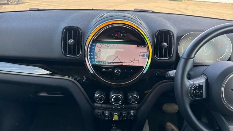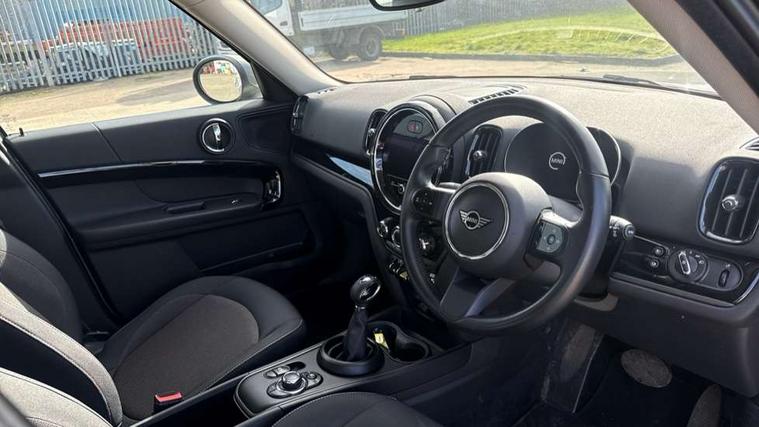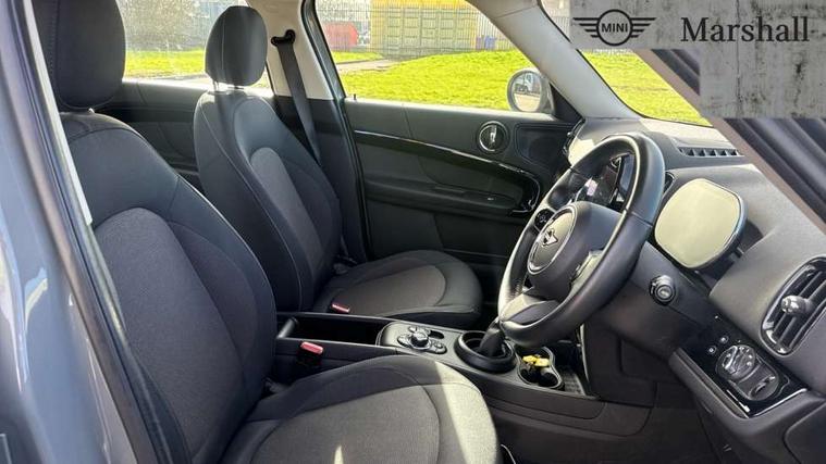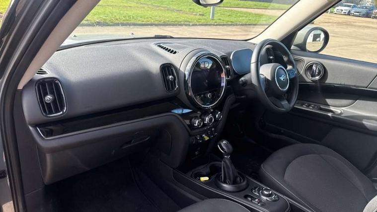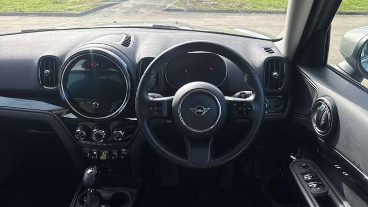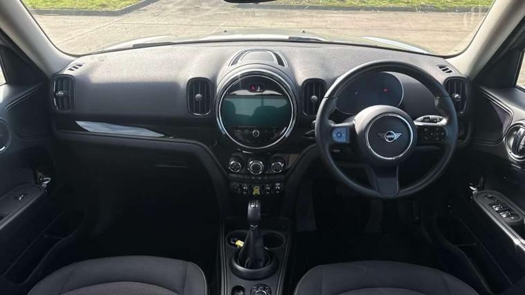 Active Guard incl speed limiting and lane departure functions with auto steering, and front collision warning with brake intervention, Automatic start/stop function with brake energy recuperation, Compatible mobile phone bluetooth with audio streaming, Cruise control with brake assist, eDrive button, Electro-mechanical speed dependant steering assistance, Instrument cluster, On board computer, Rear parking distance control, 36L fuel tank, Automatic transmission, Charging flap on front left lower A-panel, Double Vanos system, Fully variable valve control, High precision injection, Home charging cable, Performance Control, Public charging cable, FM tuner and DAB digital radio, Bonnet scoop, Chrome border honeycomb structure radiator grille with S badge, Chrome fuel filler cap, Day time driving lights, Dynamic brake lights, Electric windows, Heated rear window, Heated windscreen washer jets, LED fog lights, LED Headlights, Metal door sill strips with Cooper S imprint, Model logo, Model logo on Tailgate, Rain sensor with auto headlights, Rear fog lights, Rear window wiper, Side scuttle panel with integrated indicator, Split rear doors, Sun/heat protection glass, Twin exhaust tailpipe, White indicator lenses, 12V socket in centre console, 3 spoke sport leather steering wheel + limiter function and audio controls, 360L luggage compartment capacity, 4 lashing eyes in luggage compartment, 40:20:40 split folding rear seats, Chrome interior highlights, Colour line - Carbon black, Cupholders, English handbook, Floor mats, Front headrests, Glove compartment, Headliner with grab handles and clothes hooks, Height and length steering column adjustment, Interior lighting with 12 basic colours selectable via toggle switch in roof, Isofix rear child seat preparation, Leather gearshift lever and handbrake gaiters, LED reading lights, vanity mirror lights, front foot well light and spotlight on front seats, Manual air conditioning, Mechanical seat adjustment, driver seat height adjust, forward/back and front seats backrest, Multifunction steering wheel, Passenger seat height adjuster, Rear headrests, Storage compartments in doors, Sunvisors with vanity mirrors, Excitement pack - Countryman, Navigation pack - Countryman, 2 tone horn, 3 point seatbelts on all seats, 6 Airbags - front, side, head and seat belt tensioners, Acoustic pedestrian protection, Anti-lock braking system (ABS), DSC - Dynamic Stability Control, Electronic handbrake, Front and rear disc brakes, Hill start assist, Tyre pressure monitoring system, Alarm system with tilt sensor, monitoring doors, bonnet interior and tailgate, Auto drive away locking, Deadlocking function, Electronic vehicle immobiliser, Locking wheel bolts, Start/stop toggle with keyless go, Piano black interior trim, Tool kit,