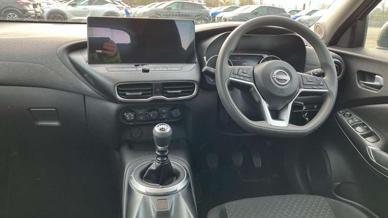 7" full colour TFT screen combimeter, Cruise control + speed limiter, Emergency and breakdown call, Idle start/stop system, Intelligent driver alert system, Intelligent lane intervention, Lane departure warning system, Nissan connect 12.3" touch screen entertainment system, Outside temperature sensor, Power Steering, Rear view camera, Traffic sign recognition, Trip computer, Voice recognition, WiFi connectivity, Wireless Apple CarPlay and Google Android auto, 2 X Rear console USB port, 4 speakers, Bluetooth system, USB, Aux-in and 12V socket, DAB Digital radio, Automatic hazard signal with emergency stop signal, Body colour door handles, Electrically adjustable door mirrors with integrated indicators, Follow me home headlights, Front and rear electric window with one touch driver window, High beam assist, LED 3rd brake light, LED daytime running lights, LED headlamps, LED rear fog lamp, LED rear lamps, Pearl black door mirrors, Rear side wing doors, Rear wiper, Roof spoiler, Shark fin roof antenna in solid Black, Three blink turn signal, 3 height adjustable rear headrests, 3 seat bench in 2nd row, 60/40 split folding rear seat, Cloth upholstery, Driver/passenger sunvisors and vanity mirrors, Front and rear cabin lights, Front armrest, Front door pockets with bottle holders, Front head restraints, Height adjustable driver's seat, Internal chrome door handles, Luggage space lighting, Monoform sporty seats, Multifunction steering wheel, Rear door bottle holders, Single front passenger seat, Smooth synthetic leather steering wheel, Telescopic steering wheel adjustment, Two cupholders in front centre console, Two rear isofix child seat anchorage points with top tether, Welcome light and console tray ambient lighting, ABS with EBD and brake assist, Active ride control, Active Trace Control, Driver and passenger airbags, Driver and passenger side airbags, Electric handbrake with auto hold function, Electronic Stability Programme (ESP), Front and rear curtain airbags, Height adjustable seatbelts, Hill start assist, Intelligent emergency braking with pedestrian and cyclist recognition, Rear door child safety locks, Seatbelt reminder for driver/front passenger and rear seats, Three 3 point rear seatbelts, Traction control, Tyre pressure monitoring system, VDC Dynamic Vehicle Control, Alarm, Immobiliser, Remote central locking, 17" Sakura Flex wheels, Tyre puncture repair kit,