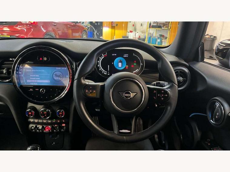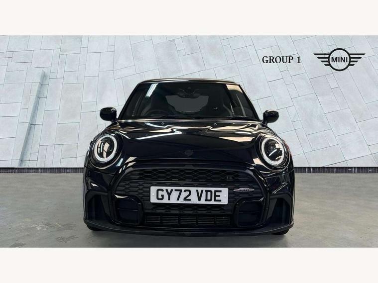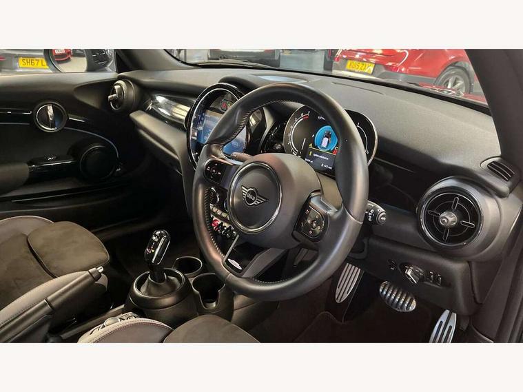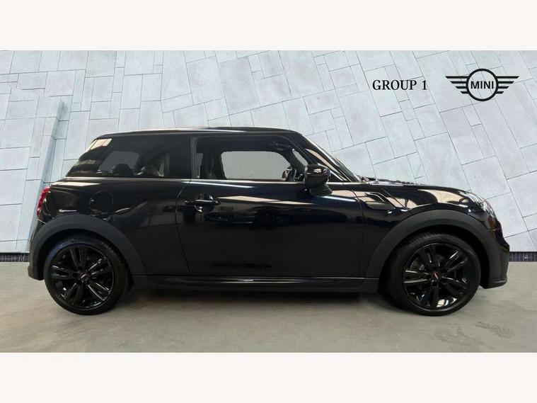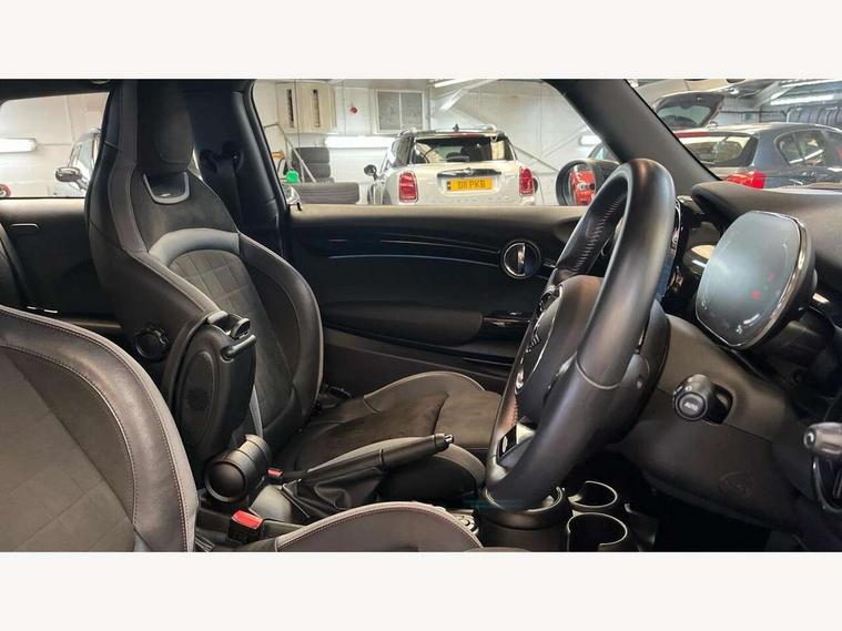 Apple CarPlay, Automatic start/stop function with brake energy recuperation, Compatible mobile phone bluetooth with audio streaming, Cruise control with brake assist, Electro-mechanical speed dependant steering assistance, Flexible car sharing preparation, Instrument cluster, MINI Driving Modes - centre toggle switch to control driving setting (sport, mid and green), Mini E-call, MINI TeleServices, On board computer, Rear park distance control, Service interval indicator, Double Vanos system, Fully variable valve control, High precision injection, Intelligent adaptive suspension, Performance Control, Steptronic transmission with double clutch, 8.8" touchscreen with LED ring, FM tuner and DAB digital radio, 3rd brake light, Automatic headlight activation switch, Body colour fuel filler cap, Chrome border high gloss black slats radiator grille, Dynamic brake lights, Electric front windows, Exhaust tailpipe on left with chrome finisher, Heated rear window, Heated windscreen washer jets, JCW Aerodynamic kit - Front and rear bumpers with sporty JCW styling and part-painted side sills with MINI John Cooper Works door sill finishers, John Cooper Works rear spoiler, LED headlight with closed ring and daytime driving lights, Metal door sill strips with MINI imprint, Model logo Cooper on right of tailgate, Rain sensor window wipers, Rear fog lights, Rear LED lights with union jack design, Rear window wiper, Side scuttle panel with integrated indicator, Sun/heat protection glass, White indicator lenses, 12V Accessory socket in centre console, 2 seat bench in 2nd row, 4 lashing eyes in luggage compartment, 60/40 split folding rear seat, Anthracite headliner including grab handles and clothes hooks, Carbon black colour line - Knee roll and door armrest, Chrome interior highlights, Cupholders, Front and rear isofix with front passenger airbag deactivation, Front floor mats in velour, Glove compartment, Height and length steering column adjustment, Interior lighting with 12 different colours across the dashboard, underneath door bezel with illuminated laser-engraved design on central display, JCW Sport seats with integrated headrests, adjustable thigh support and John Cooper Works logo, Leatherette gearshift lever and handbrake gaiters, LED reading lights, vanity mirror lights, front foot well light and spotlight on front seats, Manual air conditioning, Mechanical seat adjustment - forward/back & backrest for front seats and driver seat height adjust, Multifunction steering wheel, Passenger seat height adjuster, Single front passenger seat, Storage compartments in doors, Sunvisors with vanity mirrors, Walknappa leather steering wheel with grey seam and John Cooper Works badge on Piano Black lower steering wheel spoke, Piano black exterior pack - Mini Hatchback Cooper, 3 point seatbelts on all four seats, 6 Airbags - front, side, head and seat belt tensioners, Anti-lock braking system (ABS), DSC - Dynamic Stability Control, Front and rear disc brakes, Single tone fanfare horn, Tyre pressure monitoring system, Alarm system with tilt sensor, monitoring doors, bonnet interior and tailgate, Electronic vehicle immobiliser, Start/stop toggle with keyless go, Piano black interior trim, Tool kit,