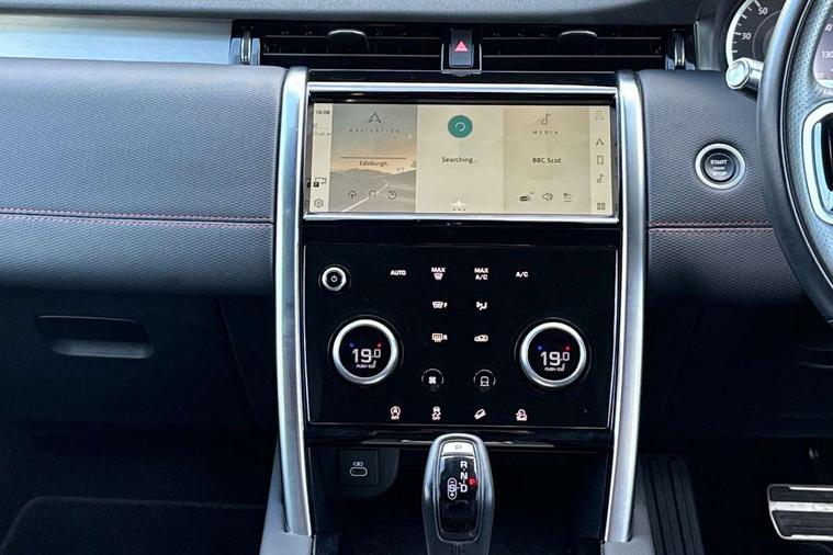 10" touch screen, 3D Surround Camera with 360 View, 180 Rear View, Front Traffic Detection, Forward Vehicle Guidance, Tow Hitch Assist and clear sight Ground View, Android Auto, Apple CarPlay, Driver condition monitor, eCall emergency call system, Front and rear parking aid, InControl remote premium, Lane keep assist, PAS, Pivi Pro connected navigation system with upgraded Infotainment, Powered tailgate/boot lid, Rear view camera, Service interval indicator, Traffic sign recognition with adaptive speed limiter, Trip computer, Wade Sensing, All terrain progress control, Coil suspension system, Diesel particulate filter, Terrain Response 2, Bluetooth connectivity including audio streaming, Digital Audio Broadcast radio-DAB, Steering wheel mounted audio controls, 3rd brake light, Automatic headlights, Day time running light, Electric front/rear windows, No badges, Power fold, auto-dimming, heated door mirrors with approach lights, Privacy glass, Rain sensing windscreen wipers, Rear fog lights, Rear side wing doors, Rear wiper, 3 seat bench in 2nd row, Bright metal pedals, Centre console with armrest, Front passenger isofix child seat attachment, Front passenger seat, Rear headrests, Satin chrome gearshift paddles, Sunvisors with illuminated vanity mirrors, Third row dual adjustable individual seats, Tilt/reach adjustable steering wheel, Black exterior pack - Discovery sport, Online pack - Discovery sport, 3 point seatbelts on all seats, ABS, Brake hold function, Child locks on rear doors, Collision mitigation braking system, Cornering brake control (CBC), Driver/Front Passenger airbags, Drivers knee airbag, Electronic brake force distribution, Electronic parking brake, Emergency brake assist, ESP + traction control, Hill descent control, Hill launch assist, Pedestrian airbag system, Rear seat ISOFIX, Side and curtain airbags for front and 2nd row seats, Trailer stability control, Tyre pressure monitoring system, Battery Back Up System (BBUS) with tilt sensor, Intrusion sensor, Locking wheel nuts, Centre stack rails in noble chrome,