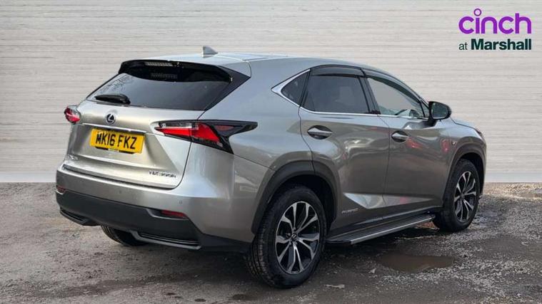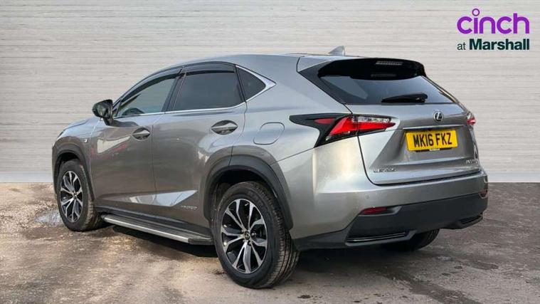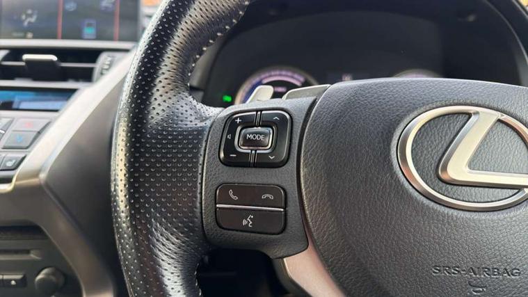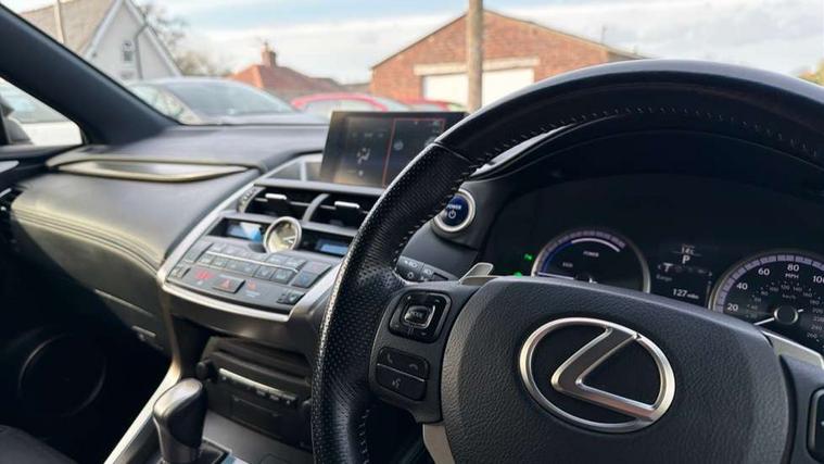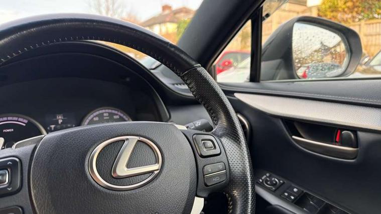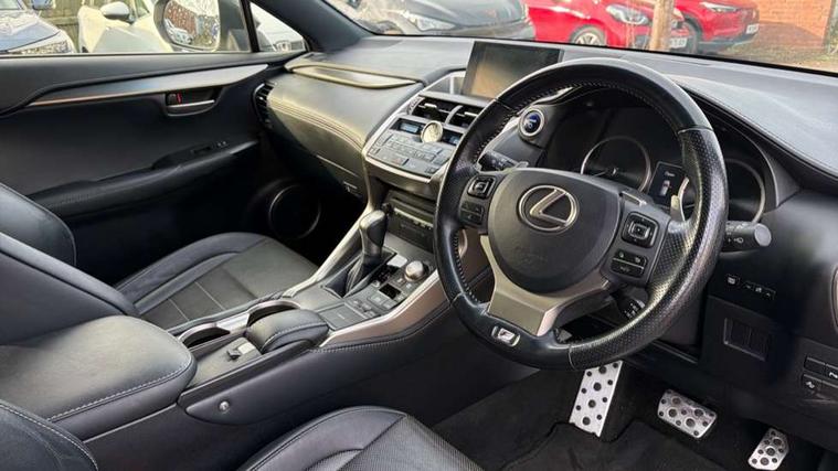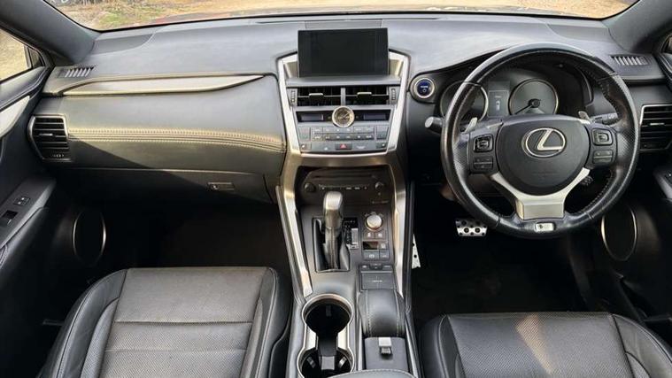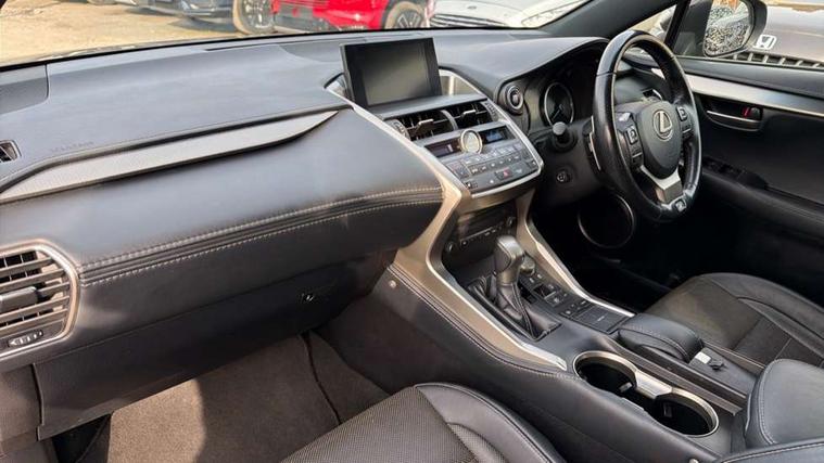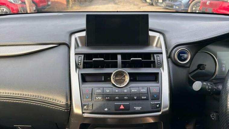 Adaptive cruise control + pre-crash system, Analogue clock, Bluetooth telephone connectivity, Drive mode selector, Front and rear parking sensors, Multimedia display, PAS, Push button starter, Reversing camera, Service interval indicator, Trip computer, Performance dampers, VDIM, Vehicle Stability Control (VSC), 8 Speakers, Aux input, DAB Digital radio, Radio/CD, Steering wheel mounted audio controls, USB connection, Black mirror caps, Body colour bumpers, Electric/heated/folding door mirrors, Electrochromatic rear view mirror, Front and rear electric windows, Headlight washers, Illuminated door handles, LED daytime running lights, LED front fog lights with static cornering light function, LED Headlights, Privacy glass, Puddle lights in exterior door handles, Rain sensor windscreen wipers, Rear wiper, Roof rails, Roof spoiler, Scuff plates, Shark fin roof aerial, 3 spoke leather steering wheel, 60/40 split folding rear seat, 8 way electrically adjustable front seats, Aluminium foot rest, Aluminium pedals, Black roof lining, Driver's lumbar support, Dual climate control air conditioning system, Electric adjustable steering column, Front armrests, Gearshift paddles, Heated front seats, Isofix child seat attachment, Leather gear lever, Leather upholstery, Rear armrest, Rear headrests, Convenience pack - NX, 3x3 point rear seatbelts, ABS, Active front headrests, Curtain airbags, Driver/Front Passenger airbags, Driver/front passenger side airbags, EBD + Brake Assist, Electronic parking brake, Front/rear seatbelt pre-tensioners, Hill start assist, Passenger airbag cut-off device, Rear passenger side airbags, Traction control, Tyre pressure warning, Alarm, Immobiliser, Remote central double locking, Smart keyless entry, Speed sensitive power door locks, Carbon interior trim, Space saver spare wheel,