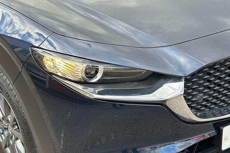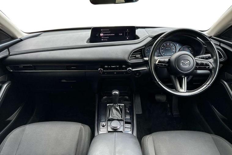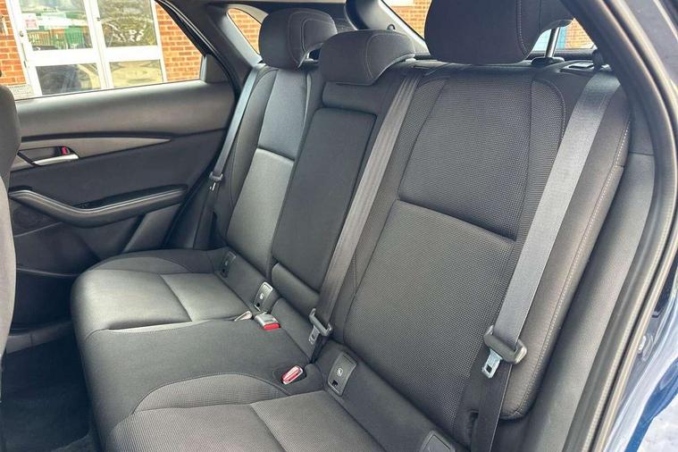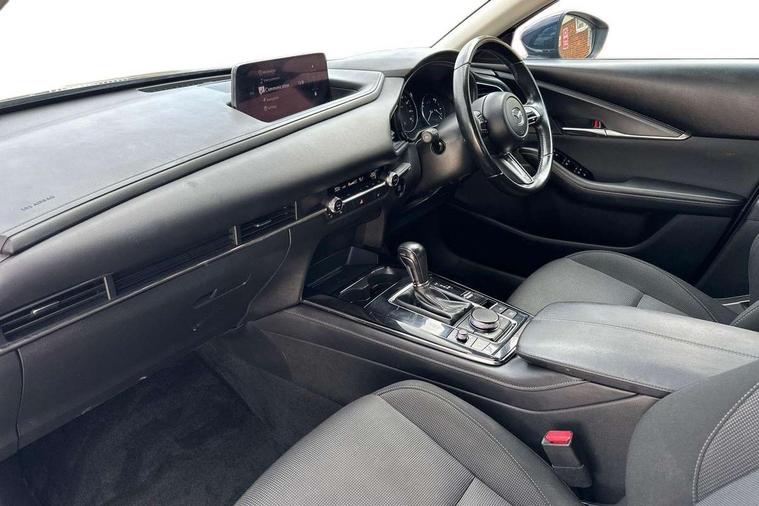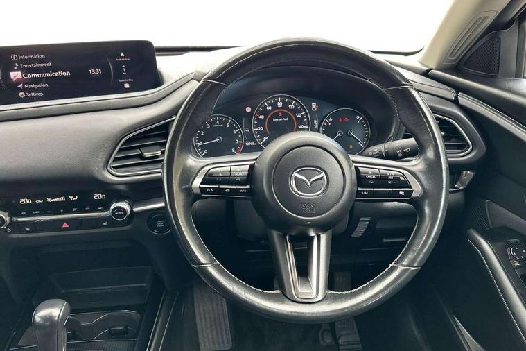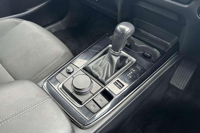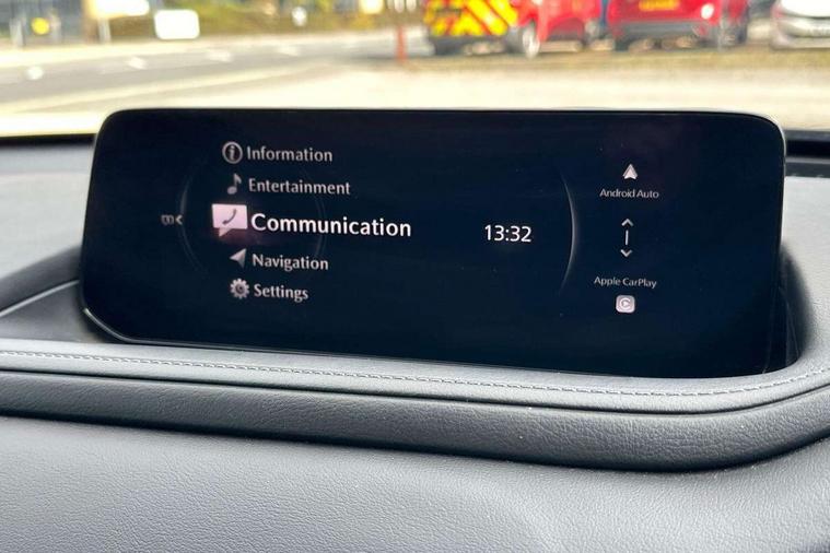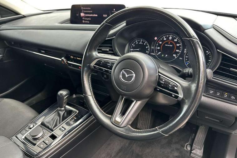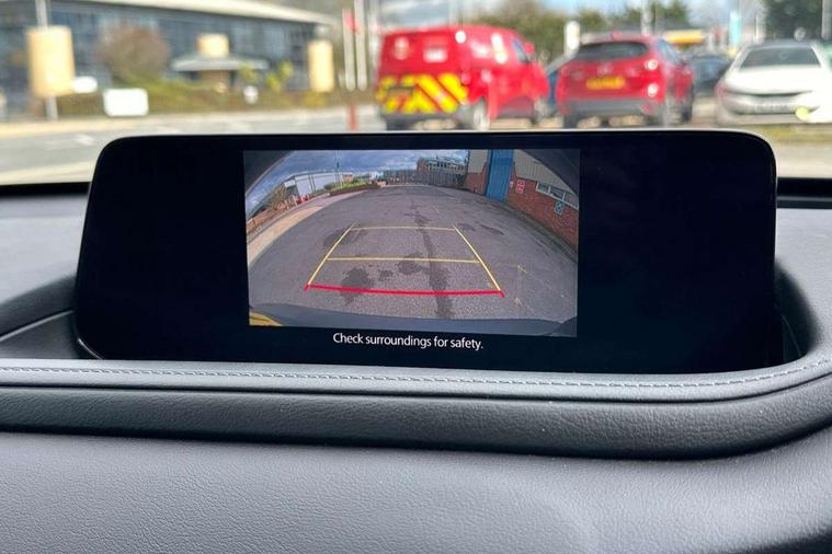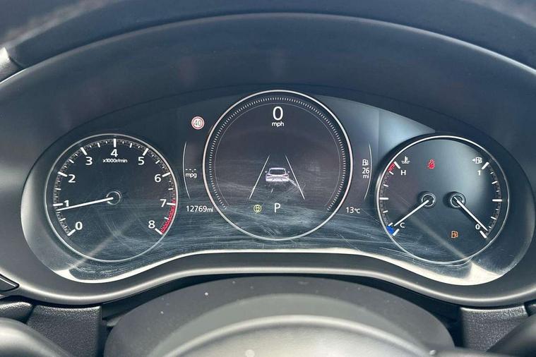 10.25" display with Mazda Connect infotainment, 7" TFT Colour driver instrument panel display, Adaptive cruise control (Mazda radar cruise control) features stop and go, Blind spot monitoring with rear cross traffic alert, Drive mode selector, Driver attention alert system, E-call with GPS, Emergency stop signalling system, Engine start/stop button, Front and rear parking sensors, Integrated bluetooth, Integrated Mazda navigation system, Intelligent speed assist, Lane keep assist system (LAS) with Lane departure warning system (LDWS), Mazda connected services, PAS, Qi wireless charging, Reversing camera, Service indicator, Tailgate, Traffic sign recognition, Trip computer, Windscreen projected colour active driving display (HUD), Wireless Apple CarPlay/Android Auto, Cylinder Deactivation, i-stop, 2 USB charging ports in front inner central armrest, AM / FM / DAB radio with 8 speakers, Multimedia Commander including separate volume dial, Steering wheel mounted audio/bluetooth controls, B-pillar and C-pillar garnishes in satin black finish, Auto dimming driver's door mirror, Auto dimming rear view mirror, Auto headlight levelling, Body coloured, electrically adjustable, heated auto power folding door mirrors with integrated indicators, Chrome finish signature wing in front grille, Coming/leaving home lighting function, Dual chrome exhaust, Dusk sensing headlights, Electric front/rear windows with one touch auto up/down, Front kodo turn signal, Gloss black rear roof spoiler, LED headlights with halogen daytime running lights and high beam control, LED rear combination lights, Rain sensing front wipers with adjustable speed and intermittent wipe, Rear fog lights, Rear side wing doors, Rear wiper, Satin black front grille, Third brake light, 12V power outlet in centre console, 3 seat bench in 2nd row, 60/40 split fold down rear seats, Chrome interior trim accents with steering wheel centre bezel, surround of engine start / stop button and glove box handle, Cloth upholstery with interior accents, Dark cloth door panel inserts, Dashboard, door cards and front centre armrest in black cloth, Driver and front passenger visors with covered vanity mirror and driver ticket holder, Driver seat manual slide, recline, height and seat tilt adjust, Driver, front passenger and two rear door storage, Driver, Front passenger and two rear grab handles with coathooks, Dual zone climate control air conditioning with rear air vents, Folding rear centre armrest with two cup holders, Front and rear (x3) head restraints, Front and rear LED lighting, Front armrest, Front centre storage with two cupholders, Front passenger seatback pockets, Front passengers seat manual slide, recline and height adjustment, Gear shift indicator, Glovebox illumination, Heated front seats with 3 stage setting, ISOFIX child seat anchorage points attached on outer rear seats, Leather wrapped gear shift knob, Leather wrapped steering wheel with telescopic and tilt adjustment, LED luggage compartment lighting, Light roof headlining and pillars, Roof mounted sunglasses holder, Single front passenger seat, 3 point ELR front seat belts x2 with pretensioners, 3 point ELR rear seat belts, Anti-lock braking system (ABS), Drivers knee airbag, DSC - Dynamic Stability Control, Electronic parking brake with auto disengage function and auto hold function, Front and rear curtain airbags, Front dual stage driver and single stage front passenger airbags, Front passenger airbag cut-off switch, Front side airbags, Front smart city brake support, G-Vectoring control plus, Hill launch assist, Manual child lock in rear doors, Mild Hybrid system with regenerative braking, Seatbelt reminder for driver/front passenger and rear seats, Traction control system (TCS), Tyre pressure monitoring system (TPMS), Remote central locking with deadlocking and automatic door lock when driving, Smart keyless entry, Thatcham accredited alarm and immobiliser, 16" Grey metallic alloy wheels, Emergency tyre repair kit,