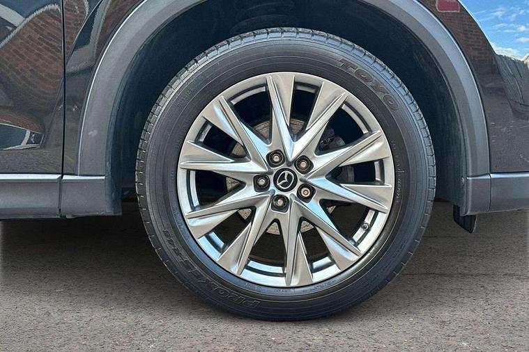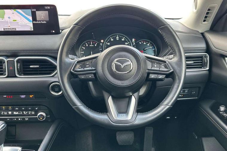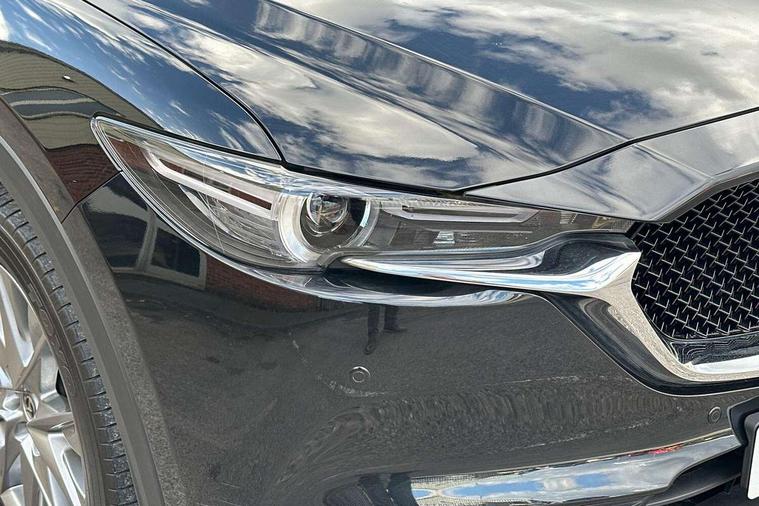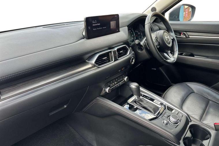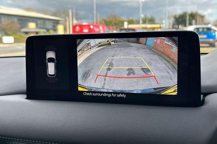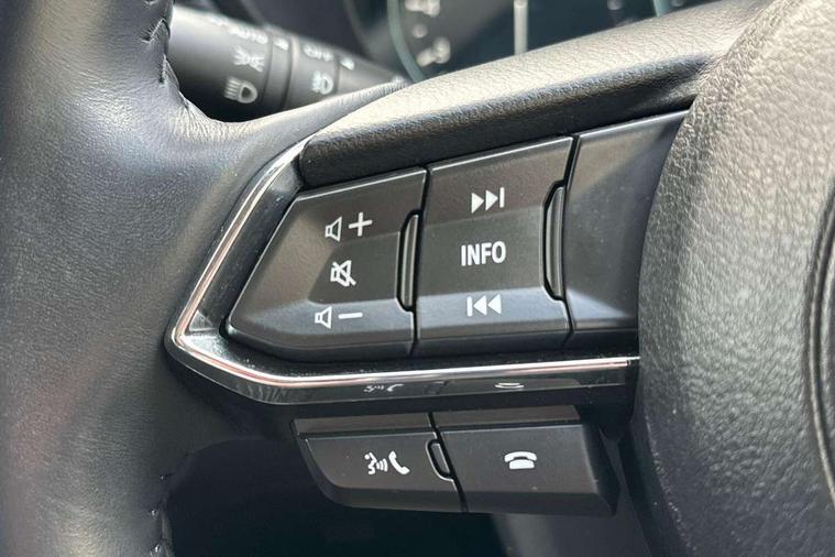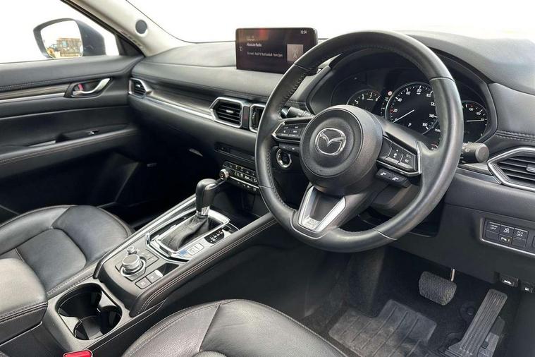 10.25" display with Mazda Connect infotainment, 7" colour TFT display, Apple car play/Android Auto, Blind spot monitoring with rear cross traffic alert, Bluetooth connectivity with voice control, Collision prevention assist, Colour head up display, Connected services, Electric power steering, Emergency stop signalling system, Engine start/stop button, Forward collision warning, Front and rear parking sensors, Integrated navigation system, Intelligent speed assist, Lane departure warning system, Lane keep assist, Power tailgate, Radar cruise control with Stop and Go, Reversing camera, Service indicator, Traffic sign recognition, Trip computer, i-stop, 2 USB sockets in rear, 2x USB sockets in front, AM/FM radio, Bluetooth audio streaming, Bose premium sound system with 10 speakers, DAB Digital radio, Multimedia Commander including separate volume dial, Steering wheel mounted audio controls, Adaptive front lighting system, Auto dimming rear view mirror, Body colour door mirrors, Body colour roof spoiler, Body coloured front bumper with black lower mouldings, Body coloured rear bumper with black lower mouldings, Coming/leaving home lighting function, Door mirror integrated indicators, Dual exhaust pipes, Dusk sensitive headlamps, Electric adjustable/heated/folding door mirrors, Electric front/rear windows/one touch facility, High beam assist, Intermittent rear wash/wipe, LED daytime running lights, LED front fog lights, LED Headlights, LED third brake light, Power tilt/slide sunroof, Privacy glass, Rain sensing front wipers, Scuff plates, Shark fin roof aerial, Signature LED rear combination lights, Windscreen wiper de-icer, 2 cupholders, 3 grab handles with rear coat hook, 40:20:40 Karakuri fold-flat seat system, 6 way electric adjustable passenger seat, 8 way electric driver seat with lumbar support + memory, Driver/passenger front seatback pockets, Driver/passenger sunvisors + illuminated vanity mirrors (drivers with ticket holder), Dual zone climate control, Front and rear door pockets, Front centre armrest, Front centre console storage box, Heated front seats, Heated steering wheel, Height adjustable head restraints, Humidity sensor, Illuminated glovebox, Interior dome light with integral spotlight, Interior incandescent lighting, ISOFIX child seat anchorage points attached on outer rear seats, Karakuri tonneau cover, Leather steering wheel/gearknob/handbrake grip, Leather upholstery, LED interior illumination, Light roof lining, Luggage compartment lighting, Rear air vents, Rear centre armrest with 2 cupholders, Rear headrests, Rear power outlet, Rear seat recline, Sunglasses holder, Tilt/height adjustable steering wheel, 3 point front seatbelts with pre-tensioners, 3 rear 3 point seatbelts, ABS, Advanced Smart City Brake Support - SCBS, DSTC-Dynamic Stability and Traction Control, Dual front airbags, Electronic brake force distribution, Electronic parking brake with auto hold, Front and rear curtain airbags, Front passenger airbag deactivation, Front side airbags, G-Vectoring control, Hill hold assist, Seatbelt reminder front and rear, Smart brake support with forward obstruction warning, Tyre pressure monitoring system, Automatic door locking when moving off, Deadlock, Immobiliser, Power door locks, Remote central locking, Smart keyless entry, Thatcham Cat.1 alarm, Upper dashboard and door trim in wood grain metal, 19" Silver alloy wheels, Tyre repair kit,