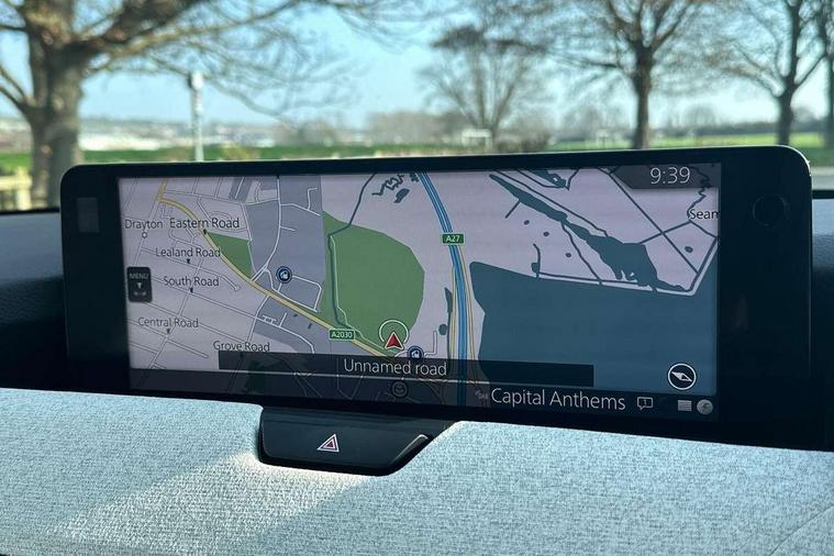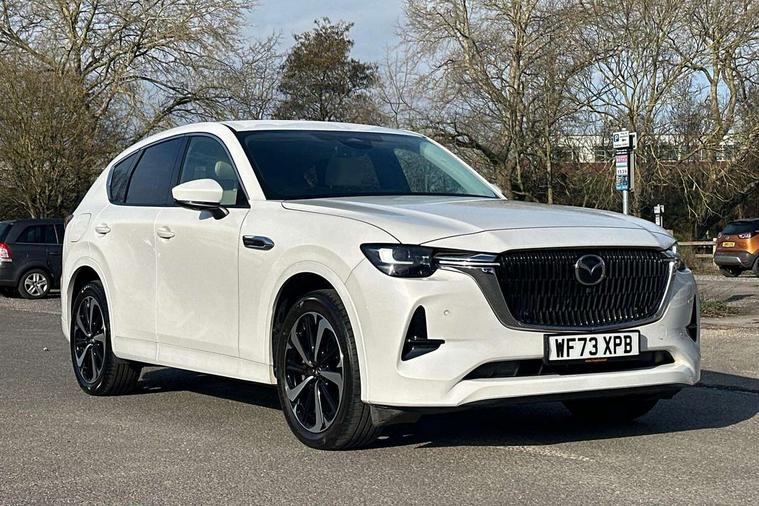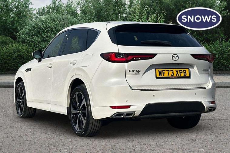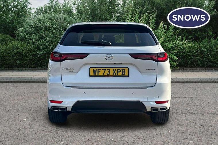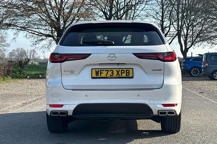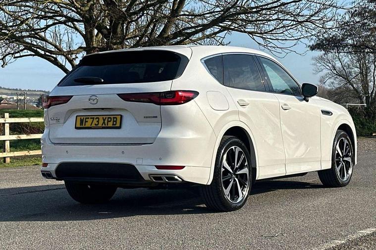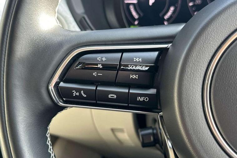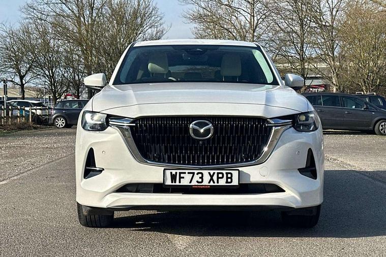 Emergency lane keeping with blind spot assist, Low washer fluid warning light, 12.3" Colour entertainment centre display with mazda connect infotainment, 12.3" TFT Colour display, Adjustable speed limiter, Blind spot assist, Blind spot monitoring with rear cross traffic alert, Dashboard leather with feature stitching, Distance alert system, Driver attention alert system, Driver Monitoring with personal identification, E-call with GPS, Emergency stop signalling system, Exit warning function, Front and rear parking sensors, Ingress / Egress support and automatic driver position guide, Integrated bluetooth, Intelligent speed assist, Kinematic posture control, Lane keep assist system (LAS) with Lane departure warning system (LDWS), Mazda Driver Personalisation System, Mazda Navigation System with european mapping, Multimedia Commander, PAS, Power lift gate with handsfree function, Power start/stop button, Reversing camera with static guide lines, Speed alert, Traffic sign recognition, Trip computer, Windscreen projected colour active driving display, Wireless apple car play/android Auto, Type 2 Mode 2 cable for AC charging via UK 3-pin plug, 7.2 kw On board Charger, Mi-Drive (Normal, Sport, Off-road, Towing and EV mode), Type 2 Mode 3 cable for AC charging via home or public charge points, AM/FM and DAB radio, Bose surround sound system with 12 Speaker, Bose center point, Bass match and audio pilot technology, Steering wheel mounted audio/bluetooth controls, USB-C inputs (x2 front and x2 rear), Auto dimming driver's door mirror, Automatic headlight levelling, B-pillar and C-pillar garnishes in gloss black finish, Body colour roof spoiler, Body coloured bumpers, Body coloured door mirrors, Body coloured wheel arch and side mouldings, Bright decoration panel, Chrome finish signature wing in front grille, Chrome front side garish, Chrome headlight lense, Chrome side window surrounds, Coming/leaving home lighting function, Dusk sensing headlights, Electric front/rear windows with one touch auto up/down, Electrically adjustable, heated auto power folding door mirrors with memory, Frameless auto dimming interior rear view mirror, Front kodo turn signal, Front wiper de-icer, Gloss black bar type front grille, Headlight washers, High beam control, LED 3rd brake light, LED rear signature combination lamps, Rain sensing front wipers with adjustable sensitivity and speed, Rear side wing doors, Rear wiper, Signature LED daytime running lights, 12v power outlet - front, 12V socket in boot, 3 height adjustable rear headrests, 3 seat bench in 2nd row, 40/20/40 split folding rear seats with quick levers in the boot, Ambient lighting, Cargo net, Chrome interior trim accents with steering wheel centre bezel, surround of engine start / stop button and glove box handle, Door panel trim vinyl leather with armrest, Driver and front passenger two rear grab handles with rear coat hooks, Driver and front passenger visors with covered vanity mirror and driver ticket holder, Driver seat electric tilt, slide, recline, height and lumbar adjustment, Driver, front passenger and two rear door pockets, Driver/passenger front seatback pockets, Dual zone climate control air conditioning with rear air vents, Electric telescopic and tilt adjustment steering wheel, Folding rear centre armrest with two cup holders, Front centre storage with two cupholders, Front down lamp with front and rear foot lamps, Front headrests, Front passengers seat electric slide, recline, height and lumbar adjustment, Front seat ventilation with 3-stage setting, Glovebox illumination, Heated front seats with 3 stage setting, Heated leather wrapped steering wheel, Heated outer rear seats with 3-stage setting, ISOFIX child seat anchorage points attached on outer rear seats, Karakuri tonneau cover, Leather wrapped gear shift knob, LED illumination luggage compartment, Nappa leather upholstery, Paddle shift, Practical and spacious front centre armrest storage, Rear seat recline function for rear passenger comfort, Remote fold down rear seats, Roof mounted sunglasses holder, Single front passenger seat, 3 point ELR front seat belts x2 with pretensioners, 3 point ELR rear seat belts, Active bonnet, Anti-lock braking system (ABS), Drivers knee airbag, DSC - Dynamic Stability Control, Electronic parking brake with auto disengage function and auto hold function, Front and rear curtain airbags, Front dual stage driver and single stage front passenger airbags, Front passenger airbag cut-off switch, Front side airbags, Front smart city brake support, Hill decent control, Hill launch assist, Manual rear child locks, Seatbelt reminder for driver/front passenger and rear seats, Traction control, Tyre pressure monitoring system (TPMS), Remote central locking with deadlocking and automatic door lock when driving, Smart keyless entry, Thatcham accredited alarm and immobiliser, Cloth with "X" stitch dashboard panel, White maple wood centre console panel, 20" Black metallic mechined alloy wheels, Emergency tyre repair kit,