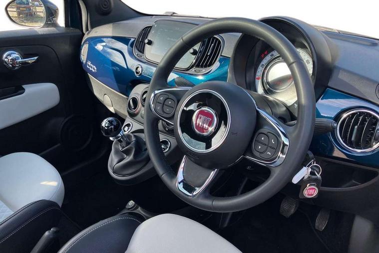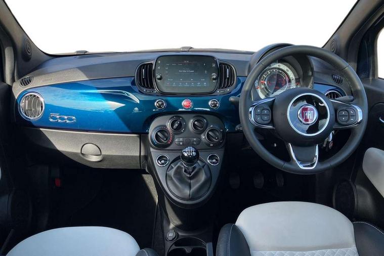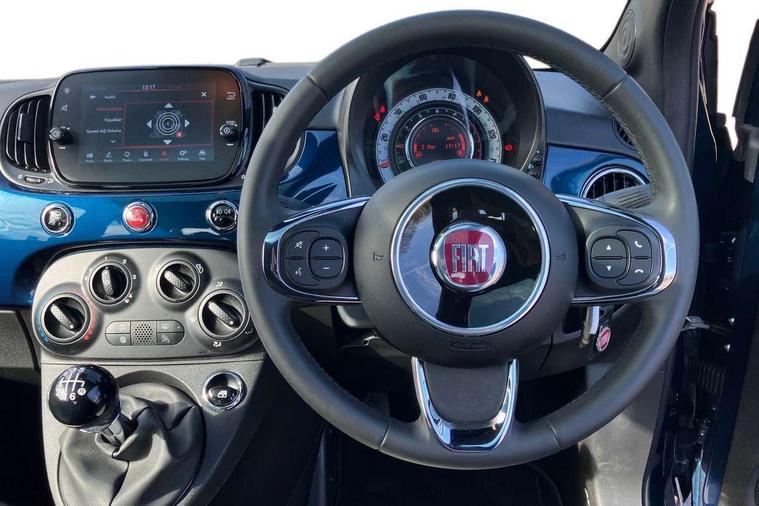 Apple car play/Android Auto, Cruise control, E-call, External temperature gauge, Power assist steering, Rear parking sensor, Speed limiter, Stop/start system, Trip computer, 4 speakers, 7" HD Touchscreen Radio, Bluetooth, USB and DAB, Rear speakers, 3rd brake light, Auto headlights, Body colour bumpers, Body coloured electrically adjustable door mirrors, Chrome plated exterior door handles, Dolcevita badge on fender, Dusk and rain sensors, Electric front windows, Fixed glass sunroof with sunblind, Front fog lights, Halogen headlamps, Heat insulated glass, Heated rear windows with wash wipe, LED daytime running lights, Rear side wing doors, Rear wiper, 1 passenger grab handle, 2 seat bench in second row, 50/50 split folding rear seats with height adjustable rear headrests, Air conditioning, Auxilliary 12V power socket, Chrome kit, Front headrests, Height adjustable drivers seat, Height adjustable steering wheel, Isofix child seat preparation, Single front passenger seat, Techno leather steering wheel with audio controls, 7 airbags - Driver, passenger, side, window and drivers knee airbags, ABS/EBD, ESC + ASR/MSR + HBA + Hill holder, Manual passenger airbag deactivation function, Traction control, Tyre pressure monitoring system, Automatic door locking, Immobiliser, Locking fuel filler cap, Remote central locking, 15" Alloy wheels,