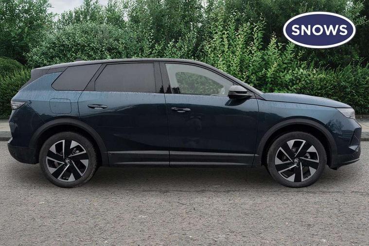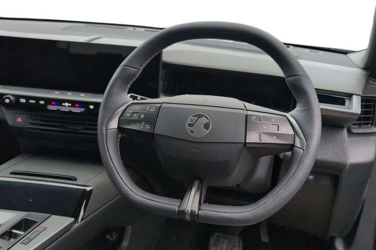 10" digital instrument cluster, 16" multimedia navigation with wireless Apple Carplay/Android auto, 360 degree surround camera, Anticipated intelligent speed adaptation, Central facia display with digital clock, outside air temperature and audio information, Curve speed adaptation, Digital fuel gauge with low fuel level warning light, Digital rev counter, Digital speedometer, Digital water temperature gauge with warning light, Drive mode selector (Eco, Normal, Sport), Driver information - Total mileage, service indicator, oil life, Electric power steering, Front and rear parking sensors, In-crash braking, Intelli-HUD (Extended heads up display), IntelliDrive 2.0 - Semi autonomous lane change assist with lane positioning assist, rear cross traffic alert and side long range blind spot detection, Lights on audible warning, Multi function trip computer - Trip odometer, vehicle range, average speed and fuel economy, instantaneous fuel economy and driving time, Power tailgate, Speed sign recognition, Start/stop system, Vauxhall connect including Emergency call (SOS e-call) and Breakdown call (b-call), Wireless charger for mobile devices, Anti-roll bars, Compound crank rear suspension with coil springs and gas pressure dampers, Independent decoupled MacPherson strut front suspension with gas pressure dampers and coil springs, anti-roll bar, Stability control, 2 rear USB-C sockets, AM/FM and DAB radio, Premium focal Hifi sound system includes 10 speakers and subwoofer, Radio controls on steering wheel, Acoustic windscreen, Auto headlights, Automatic headlight beam levelling, Black door mirrors, Black grained wheel arch claddings, Body colour door handles, Dark tinted rear windows, Electrically defrosting driver and passenger door mirrors, Electrochromic frameless rear view mirror, Front illuminated griffin, Front wiper system spraying directly from wipers, Grained lower door claddings, Heated windscreen, High gloss black front and rear bumpers, High gloss black roof spoiler, Illuminated rear Vauxhall, IntelliLux LED headlights with 3D illuminated vizor, welcome and farewell animation, 11 driving modes and adaptive high beam assist, Intermittent rear window wash/wipe, LED 3rd brake light, LED daytime running lights, LED tail lights, Magic wash, Panoramic opening glass roof, Power folding door mirrors with memory function and reverse mode, Power front and rear windows, Rain sensor windscreen wipers, Rear side wing doors, Rear wipers with camera cleaning, Two speed windscreen wipers with variable intermittent wipe, Welcome lighting, 10 way manual adjustable heated front seats with AGR approved with pneumatic lumbar support, cushion nose extension and power tilt, 2 cupholders with slider, 3 12V plugs, 3 bench rear seats in 2nd row, 3 spoke leather effect steering wheel with dimpling, 7 colour ambient lighting, Automatic air conditioning, Centre console armrest, Chrome effect interior door handles, Clean cabin system, Cooled glove box and central console storage with LED light, Dashboard and door panels polychromatic ambient lighting, Dual zone electronic climate control, Front door storage with 1.5 litre capacity, Front seat back storage pockets, Fully carpeted luggage area, Heated steering wheel, Height adjustable headrests, Illuminated vanity mirrors, Intelli air, Paddle shifts, Pixel storage, Rear armrest, Rear centre seat head restraint, Rear clothes hooks on B pillar trims, Single passenger seat, Sunglasses Box, Touch sensitive front and rear reading lights, Anti-lock braking system (ABS), Automatic emergency braking system, Child proof locks on rear doors, Deactivation switch for front passenger front and side impact airbags, Deflation detection system, Driver airbag, Dual seatbelt pretensioners on front seats, EBD - Electronic brakeforce distribution, Electronic parking brake, Front and rear ventilated discs, Front passenger airbag, Front seat side impact airbags, Full-size curtain airbags for driver and front passenger, Hill assist control, Hydraulic Brake Assist (HBA), Inertia reel lap and diagonal seatbelts for all seats, Load limiters on outer rear seatbelt retractors, Pretensioners on outer rear seatbelt retractors, Rear 3 point ISOFIX, Smart seatbelt reminder for front and rear seats, Tyre pressure monitoring system, Central locking, Deadlocking system, Electronically protected audio equipment, Engine deadlock immobiliser, Keyless entry and start, Locking wheel nuts, Remote security alarm system, Mistral dark ambience, 19" Diamond cut alloy wheels, Tyre repair kit,