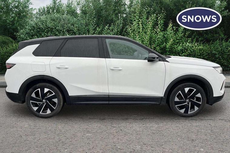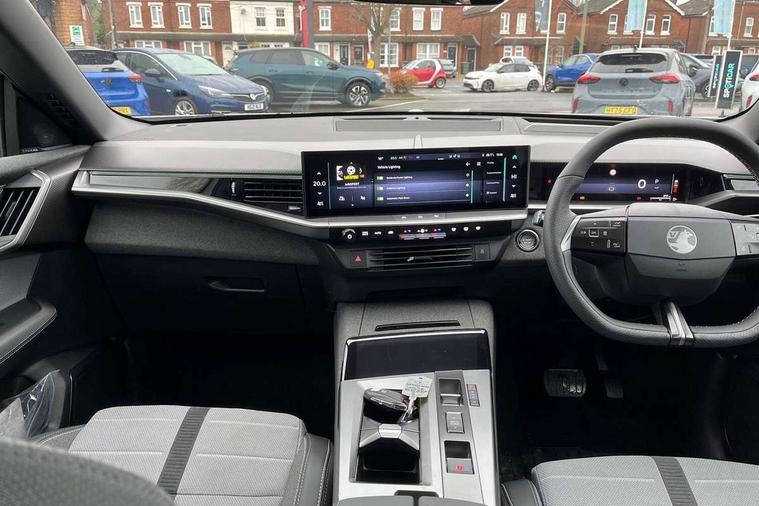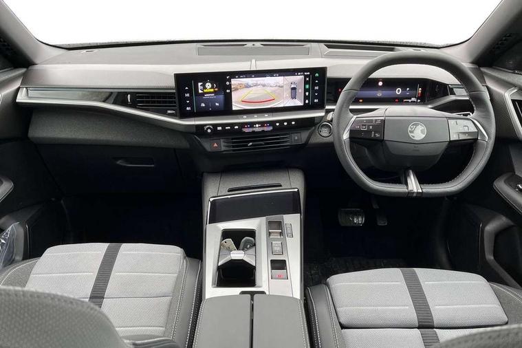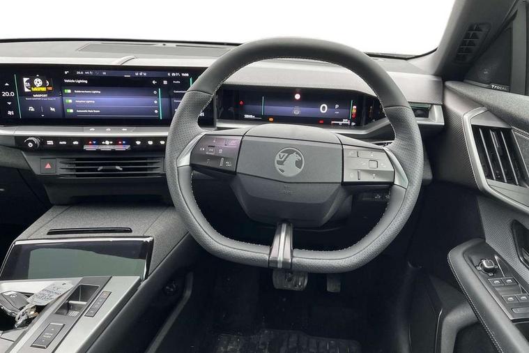 10" digital instrument cluster, 16" multimedia navigation with wireless Apple Carplay/Android auto, 360 degree surround camera, Anticipated intelligent speed adaptation, Central facia display with digital clock, outside air temperature and audio information, Curve speed adaptation, Digital fuel gauge with low fuel level warning light, Digital rev counter, Digital speedometer, Digital water temperature gauge with warning light, Drive mode selector (Eco, Normal, Sport), Driver information - Total mileage, service indicator, oil life, Electric power steering, Front and rear parking sensors, In-crash braking, Intelli-HUD (Extended heads up display), IntelliDrive 2.0 - Semi autonomous lane change assist with lane positioning assist, rear cross traffic alert and side long range blind spot detection, Lights on audible warning, Multi function trip computer - Trip odometer, vehicle range, average speed and fuel economy, instantaneous fuel economy and driving time, Power tailgate, Speed sign recognition, Start/stop system, Vauxhall connect including Emergency call (SOS e-call) and Breakdown call (b-call), Wireless charger for mobile devices, Anti-roll bars, Compound crank rear suspension with coil springs and gas pressure dampers, Independent decoupled MacPherson strut front suspension with gas pressure dampers and coil springs, anti-roll bar, Stability control, 2 rear USB-C sockets, AM/FM and DAB radio, Premium focal Hifi sound system includes 10 speakers and subwoofer, Radio controls on steering wheel, Acoustic windscreen, Auto headlights, Automatic headlight beam levelling, Black door mirrors, Black grained wheel arch claddings, Body colour door handles, Dark tinted rear windows, Electrically defrosting driver and passenger door mirrors, Electrochromic frameless rear view mirror, Front illuminated griffin, Front wiper system spraying directly from wipers, Grained lower door claddings, Heated windscreen, High gloss black front and rear bumpers, High gloss black roof spoiler, Illuminated rear Vauxhall, IntelliLux LED headlights with 3D illuminated vizor, welcome and farewell animation, 11 driving modes and adaptive high beam assist, Intermittent rear window wash/wipe, LED 3rd brake light, LED daytime running lights, LED tail lights, Magic wash, Panoramic opening glass roof, Power folding door mirrors with memory function and reverse mode, Power front and rear windows, Rain sensor windscreen wipers, Rear side wing doors, Rear wipers with camera cleaning, Two speed windscreen wipers with variable intermittent wipe, Welcome lighting, 10 way manual adjustable heated front seats with AGR approved with pneumatic lumbar support, cushion nose extension and power tilt, 2 cupholders with slider, 3 12V plugs, 3 bench rear seats in 2nd row, 3 spoke leather effect steering wheel with dimpling, 7 colour ambient lighting, Automatic air conditioning, Centre console armrest, Chrome effect interior door handles, Clean cabin system, Cooled glove box and central console storage with LED light, Dashboard and door panels polychromatic ambient lighting, Dual zone electronic climate control, Front door storage with 1.5 litre capacity, Front seat back storage pockets, Fully carpeted luggage area, Heated steering wheel, Height adjustable headrests, Illuminated vanity mirrors, Intelli air, Paddle shifts, Pixel storage, Rear armrest, Rear centre seat head restraint, Rear clothes hooks on B pillar trims, Single passenger seat, Sunglasses Box, Touch sensitive front and rear reading lights, Anti-lock braking system (ABS), Automatic emergency braking system, Child proof locks on rear doors, Deactivation switch for front passenger front and side impact airbags, Deflation detection system, Driver airbag, Dual seatbelt pretensioners on front seats, EBD - Electronic brakeforce distribution, Electronic parking brake, Front and rear ventilated discs, Front passenger airbag, Front seat side impact airbags, Full-size curtain airbags for driver and front passenger, Hill assist control, Hydraulic Brake Assist (HBA), Inertia reel lap and diagonal seatbelts for all seats, Load limiters on outer rear seatbelt retractors, Pretensioners on outer rear seatbelt retractors, Rear 3 point ISOFIX, Smart seatbelt reminder for front and rear seats, Tyre pressure monitoring system, Central locking, Deadlocking system, Electronically protected audio equipment, Engine deadlock immobiliser, Keyless entry and start, Locking wheel nuts, Remote security alarm system, Mistral dark ambience, 19" Diamond cut alloy wheels, Tyre repair kit,