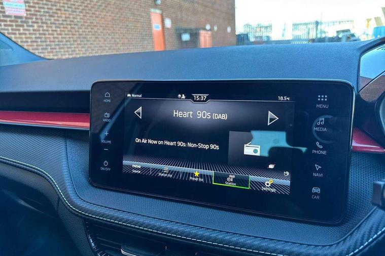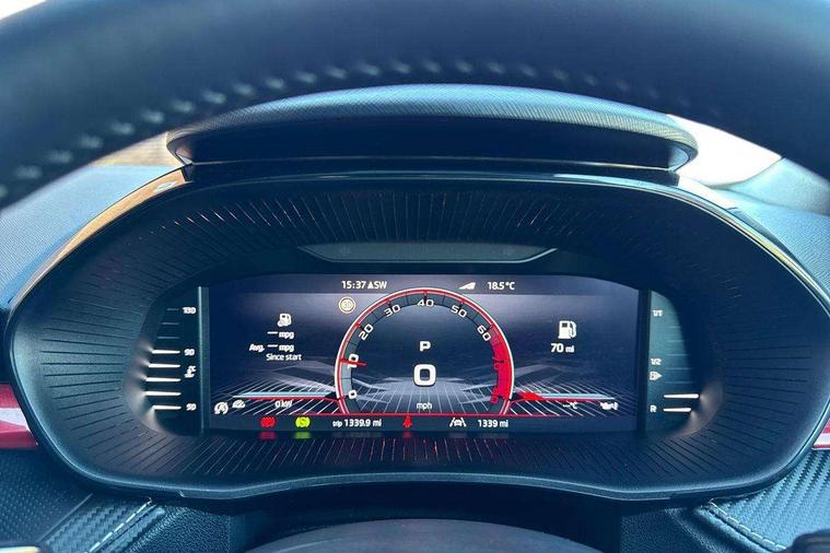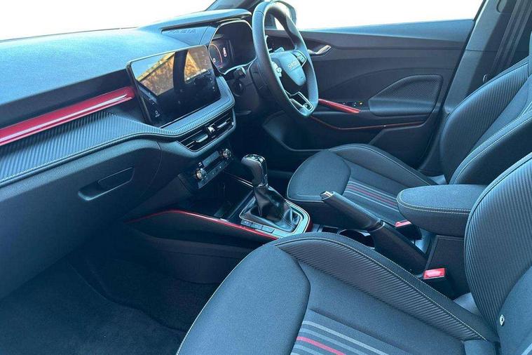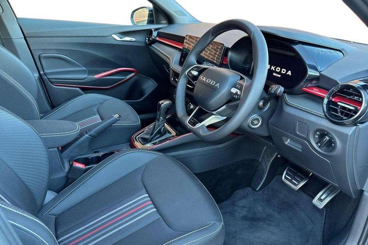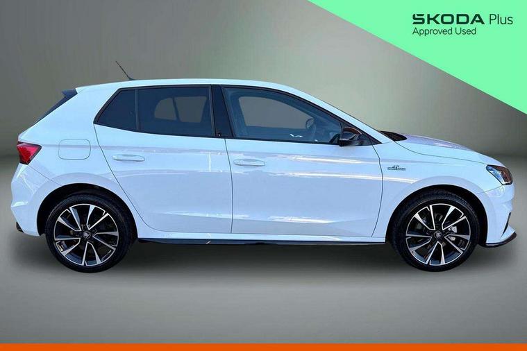 Advanced driver attention and drowsiness monitor, Bluetooth connection, Driver alert system, Electromechanical power steering, Exterior temperature gauge, Service interval indicator, Traffic sign recognition, Virtual cockpit with 10.25" colour display, Wireless SmartLink for Apple CarPlay and Android Auto, 6 Speakers (4 in front and 2 in rear), 9.2" colour display skoda navigation system with voice control and web radio, Auxiliary socket for external MP3 player, DAB digital radio reception, Auto dimming rear view mirror, Black radiator grille, Body coloured bumpers, Chrome window surround, Door mirror integrated indicators, Dynamic headlight range control, Front and rear electric windows, Front window wiper intermittent control, Ice scraper in fuel cap, LED 3rd brake light, LED daytime running lights with coming and leaving home feature, LED rear lights, Monte Carlo badging, Privacy glass, Rear LED fog light, Rear side wing doors, Rear window wiper with washing nozzles, Roof mounted spoiler, SKODA tailgate lettering in black, Sports bumpers, Unique dark chrome design logo on alloy wheels, 2 LED reading lights in front and rear, 3 rear headrests, Aluminium pedals, Backrest split and folding, Black headlining, Central console with fixed cup holder and storage box, Chrome handbrake release button, Door sills with fabia badging, Dual zone air conditioning with climatronic electronic control, Fabric/artificial leather upholstery, Front centre armrest, Front sports seats, Gearshift knob/handle in leather, Hand brake lever handle in leather, Height adjustable front headrests, Height adjustable front seats, Height adjustable steering wheel, ISOFIX and TopTether anchorage points to the outer rear seats, ISOFIX and TopTether on the front passenger seat, Luggage compartment lighting, Manually adjustable lumbar support in front seats, Metallic red interior door handles, Pollen filter, Rear seat bench unsplit, Single front passenger seat, Skoda lettering on steering wheel, Sun visors with mirror and airbag label on passenger side, Textile floor mats, Ticket holder, Umbrella in drivers door, Ambient lighting pack - Fabia Hatchback, Convenience pack - Fabia, Light and view pack plus - Fabia, 3-point height adjustable front seats belts with pretensioner and force limiter, Automatic warning lights in case of crash, Driver and passengers airbag with switch off function, e-Call+, ESC including ABS, MSR, ASR, EDS, HBA and XDS, Front and rear seat belt warning, FRONT ASSIST (AEB City and AEB Inter Urban), Front side airbags, Head airbags, Hill hold control, One tone horn, Pedestrian protection, Three rear 3-points safety seat belts with pretensioner and force limiter including stop function for outer rear seat belts, Tyre pressure monitoring system, Anti-theft alarm system including immobiliser, interior monitoring, backup horn, and towing protection, Central locking with radio remote control, interior controls, SAFE function and 2 foldable keys, Carbon effect door and side trim panels, Carbon effect lower decorative trim with white stitching, Grain satin black central console cover, Monte carlo air vents, Red metallic upper decorative trim, Anti-theft wheel bolts protection, Super-low rolling resistance tyres,