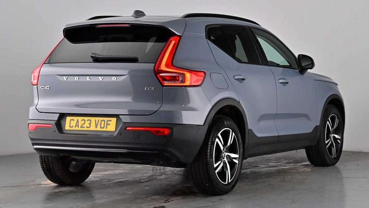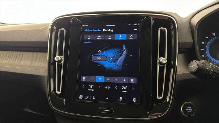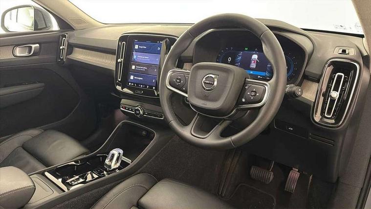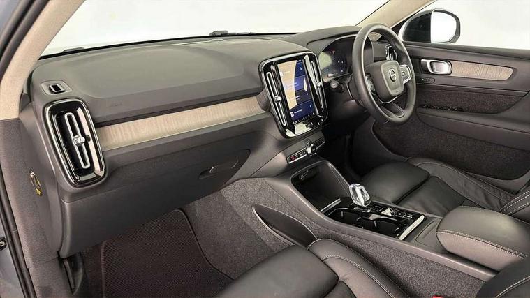 12.3" Progressive Driver Display, 360 degree surround view parking camera with side proximity sensors, 9" centre console portrait touch screen, Adjustable steering wheel force, Bluetooth hands free telephone kit, Cruise control, E-call, Front park assist, Google automatic services - Nav with google maps, apple carplay/android auto, voice recognition with google assistant, Hands free power tailgate, Lane keep assist with driver alert control, Oncoming Lane Mitigation, Rear park assist, Speed limiter, Speed sensitive steering, Wireless/Inductive Mobile Phone Charging, Dynamic chassis, DAB Digital radio, High performance sound, 8 speakers/250W, front USB and 2 rear type C USB, Steering wheel mounted remote controls, Adaptive brake lights with high level LED brake lights, Auto dimming feature for exterior door mirrors, Auto dimming interior mirror, Automatic headlamp levelling, Automatic LED Headlights + Active high beam incorporating daytime running lights, Front aluminium tread plates, Front and rear electric windows, High gloss black front and rear skid plate, High gloss black mesh front grille with high gloss black surround, High gloss black window trim, Home safe and approach lighting, Integrated roof rails in high gloss black, LED front fog lights, Puddle lights, Rain sensor with automatic windscreen wiper activation, Rear side wing doors, Rear wiper, Roof antenna, Roof spoiler, Visible VIN plate, 12V socket in front tunnel console and luggage compartment, 2-Zone electronic climate control with CleanZone air quality system and pollen filter, 3 seat bench in 2nd row, 3 Spoke tailored steering wheel with chrome trim, 60/40 versatile split folding rear seat, A-pillar parking ticket holder, Centre console cupholders and storage, Flexible load floor and grocery bag holder, Floor mats, Front door pocket, front cupholder, ambient front door, rear reading, rear courtesy, instrument panel and tailgate lighting, Front footwell illumination, Front headrests, Front reading light and theatre lighting, Front seat cushion extensions, Front tunnel pocket, Glovebox bag hook, Heated front seats, Height adjustable passenger seat, Height/reach adjustable steering column, High gloss centre tunnel deco, Illuminated glovebox, Illuminated luggage compartment, Illuminated vanity mirrors, Integrated waste bin, Isofix attachments on outer rear seats, Load protection net, Multi directional lumbar support, Power driver seat with memory + exterior mirrors memory, Rear armrest / integral cup holders / storage tray, Rear headrests, Single front passenger seat, Underfloor cargo storage, Climate pack without heated front seats - XC40, 3x3 point rear seatbelts, City safety with steering support with Pedestrian + cyclist + front collision warning with full auto brake and rear auto brake, Drivers knee airbag, Dual stage driver/passenger airbags, Electronic parking brake with auto hold, First aid kit, Front and outer rear seatbelt reminder and pretensioners, Front seats SIPS airbags, Hill descent control, Hill start assist, Inflatable curtain, Passenger airbag cut-off device, Power child locks on rear doors, Road sign information display, Run off Road Mitigation, Run off Road Protection, SIPS (Side Impact Protection System), Slippery road and hazard light alert, Stability and Traction Control with Spin control, Engine Drag Control and Corner Traction Control, Tyre pressure monitoring system, Vehicle deceleration control with Anti-lock Brake System, Electronic Brake Distribution and Emergency Brake Assist, Warning triangle, WHIPS whiplash protection system - front, Anti-theft alarm including immobiliser/volume sensor + level sensor, Key integrated remote control central locking + fuel flap with deadlocking system and auto open/close power windows, Keyless drive includes keyless entry and keyless start, Locking wheel nuts,