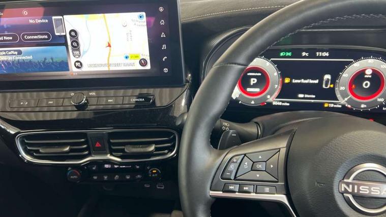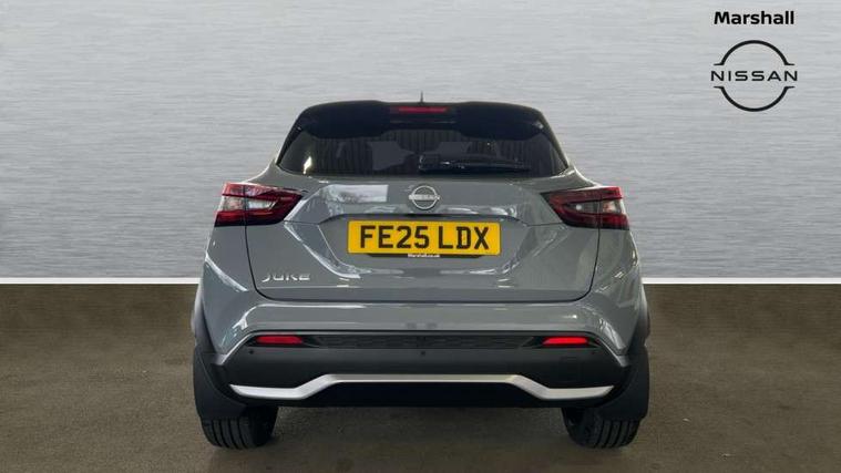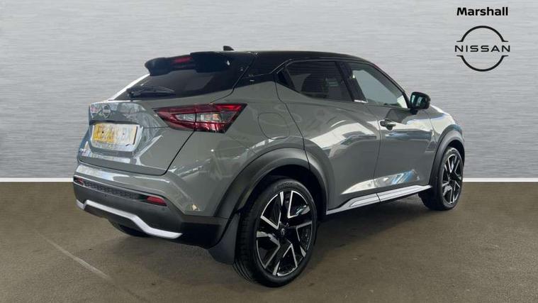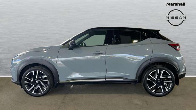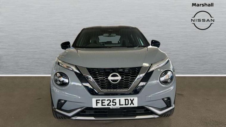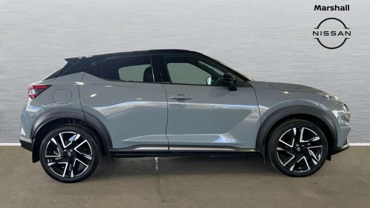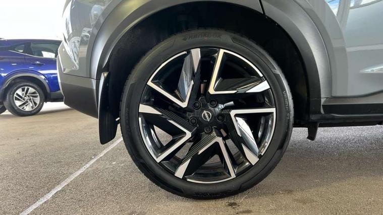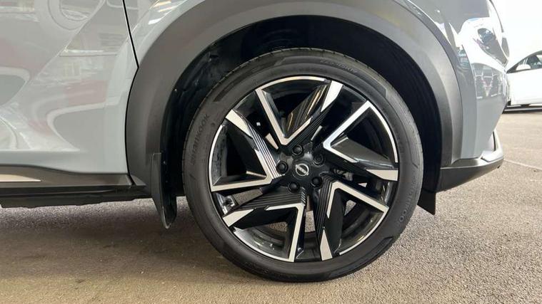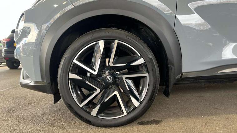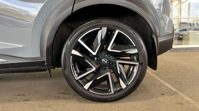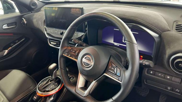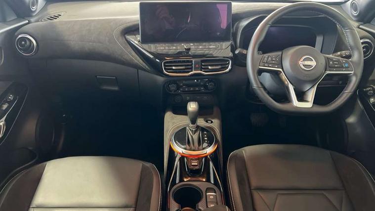 12.3" full colour TFT screen combimeter, Drive modes select (Eco, normal and sport), Emergency and breakdown call, Front parking sensor, Idle start/stop system, Intelligent driver alert system, Intelligent lane intervention, Lane departure warning system, Nissan connect 12.3" touch screen entertainment system, Nissan connect nav with TomTom traffic, Nissan connect services, Outside temperature sensor, Power Steering, Rear parking sensor, Stop/start button, Traffic sign recognition, Trip computer, Voice recognition, WiFi connectivity, Wireless Apple CarPlay and Google Android auto, Wireless Smartphone charger, 10 Bose speakers 8 speakers and 2 headrest speakers for driver/passenger seats, 2 X Rear console USB port, Bluetooth system, USB, Aux-in and 12V socket, Bose personal plus audio system, DAB Digital radio, Auto dimming frameless rear view mirror, Automatic hazard signal with emergency stop signal, Body colour door handles, Electrically adjustable door mirrors with integrated indicators, Follow me home headlights, Front and rear electric window with one touch driver window, High beam assist, LED 3rd brake light, LED daytime running lights, LED front fog lights, LED headlamps, LED rear fog lamp, LED rear lamps, One touch passenger window, Rear privacy glass, Rear side wing doors, Rear wiper, Roof spoiler, Shark fin roof antenna in solid Black, Solid black door mirrors, Solid black front bumper/rear bumper and side skirts inserts, Three blink turn signal, 3 height adjustable rear headrests, 3 seat bench in 2nd row, 60/40 split folding rear seat, Card holder on driver sunvisor, Door ambient lighting, Driver seat back pocket, Driver side rear coat hanger, Driver/passenger sunvisors and vanity mirrors, Front and rear cabin lights, Front armrest, Front door pockets with bottle holders, Front head restraints, Front/rear passenger grab handles, Gear console ambient circle lighting, Height adjustable driver's seat, Internal chrome door handles, Luggage board, Luggage space lighting, Monoform sporty seats, Multifunction steering wheel, Passenger seat back pocket, Rear door bottle holders, Single front passenger seat, Smooth synthetic leather steering wheel, Steering wheel mounted gearshift paddles, Synthetic leather kneepad, Synthetic leather shift knob, Telescopic steering wheel adjustment, Two cupholders in front centre console, Two rear isofix child seat anchorage points with top tether, Welcome light and console tray ambient lighting, Comfort pack - Juke, Heat pack with height adjustable passenger seats - Juke, Interior personalisation pack - Juke, ProPilot pack - Juke Auto, Satin grey exterior personalisation pack - Juke, ABS with EBD and brake assist, Active ride control, Active Trace Control, Driver and passenger airbags, Driver and passenger side airbags, Electric handbrake with auto hold function, Electronic Stability Programme (ESP), Front and rear curtain airbags, Height adjustable seatbelts, Hill start assist, Intelligent emergency braking with pedestrian and cyclist recognition, Rear door child safety locks, Seatbelt reminder for driver/front passenger and rear seats, Three 3 point rear seatbelts, Traction control, Tyre pressure monitoring system, VDC Dynamic Vehicle Control, Alarm, Immobiliser, Intelligent key and start push button with walk away lock and approach unlock functions, Remote central locking, 19" Alloy wheels with deep 3D effect, Tyre puncture repair kit,