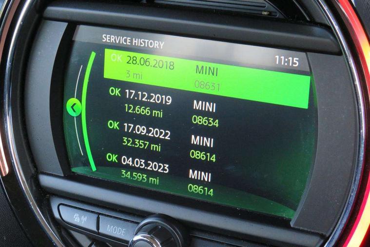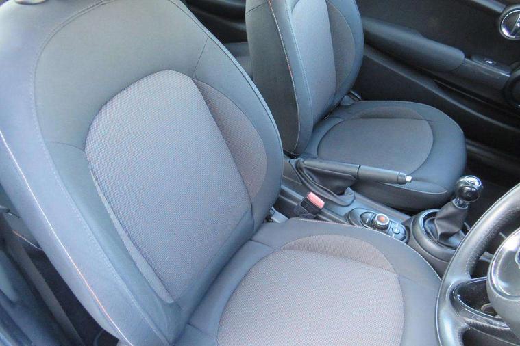 Acoustic seat-belt warning, Basic bluetooth function with USB audio, Brake fluid level warning light, Brake pad wear indicator warning light, DTC - Dynamic traction control, Exterior temperature gauge, Intelligent emergency call, MINI TeleServices, Oil level indicator, On board computer, Push button starter, Service interval indicator, Servotronic PAS, Electronic differential lock, Auxiliary input socket, DAB digital radio module, 2 speed wipers+intermittent wipe, Anti dazzle mirror, Anti trapping/one touch open close front windows, Body coloured bumpers, Chrome bezels around rear lights and headlights, Chrome door handles, Chrome exhaust tailpipe, Chrome grille surround, Chrome plated trim on bottom edge of window, Chrome strip on lower grille, Electric front windows, Electric rear windows, Electrically adjustable door mirrors, Flared wheel arches, Follow me home headlights, Green tinted heat insulating glass, Heated door mirrors/heated windscreen washers, Heated rear window with auto timer, High gloss black tailgate, LED fog lights, LED rear lights, Rear wiper, Roof spoiler in roof colour, Side scuttles, White indicator lights, 2 rear head restraints, 4 boot load lashing points, 4 way manually adjustable passenger seat with height, reach, tilt, backrest and headrest, 6-way manually adjustable driver's seat, Active carbon filter, Adjustable front seats backrest, Air recirculation system, Auxiliary socket in centre console storage compartment, Centre console storage, Driver's seat height adjuster, Driver/passenger sunvisors, Easy entry seats, Front and rear cupholders, Front head restraints, Front passenger grab handle, Gear/selector and handbrake in artificial leather, Internal chrome door handles, Isofix child seat preparation, Luggage compartment lighting, Multifunction steering wheel, Reach + rake adjustable steering column, Rear grab handles, Rear storage trays, Split folding rear seats, Storage compartments in doors, Toolkit in luggage compartment, 3 point seatbelts, 3x3 point rear seatbelts, ABS/EBD, ASC+T, Cornering brake control (CBC), Crash Sensor - activates hazard/interior lighting + unlocks doors, Driver and passenger airbags, Driver/front passenger side airbags, DSC - Dynamic Stability Control, Fuel cut off safety device, Head airbags, Hill start assist, Manual passenger airbag deactivation function, Seatbelt pretensioners, Tyre pressure warning, Ventilated front disc brakes, Drive away door locking, Locking wheel bolts, Remote central locking/doors+fuel cap+tailgate, Second remote key, Thatcham category 1 alarm + immobiliser,