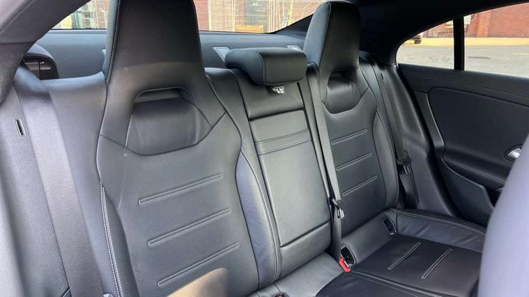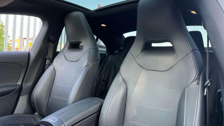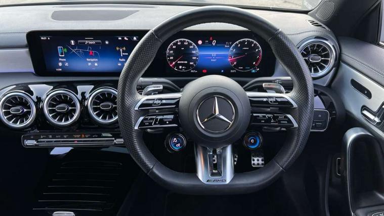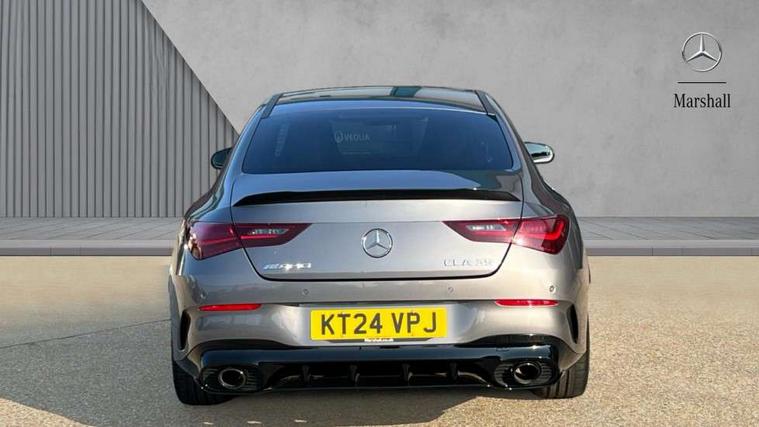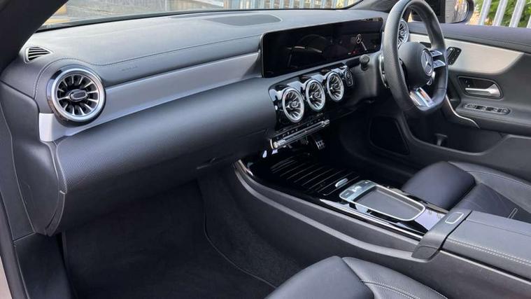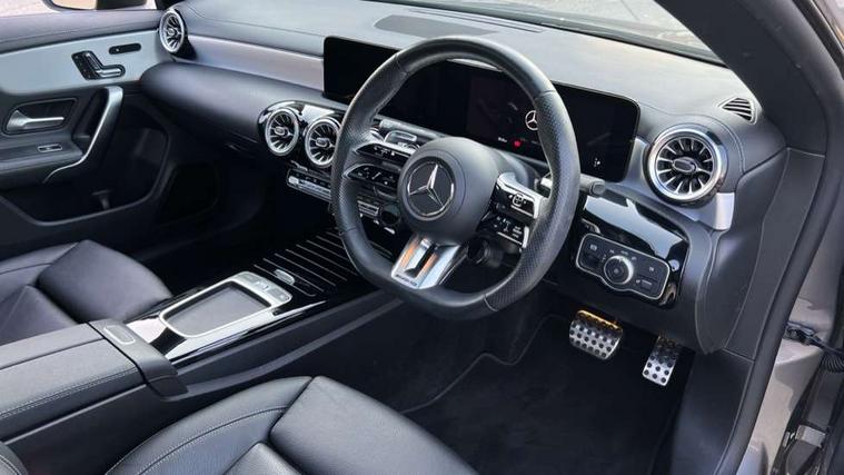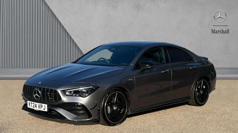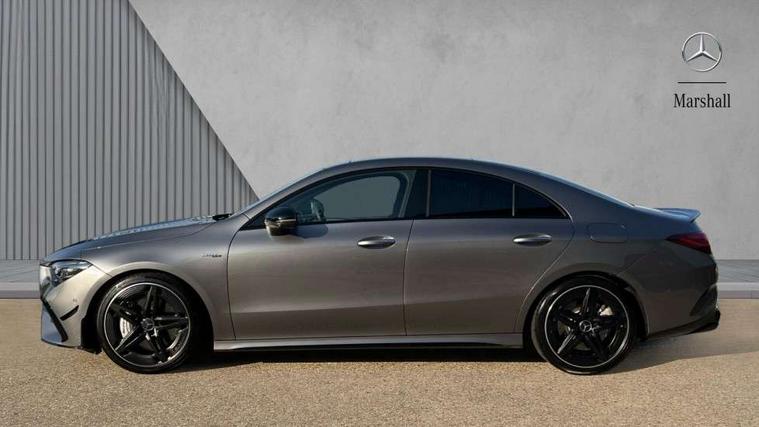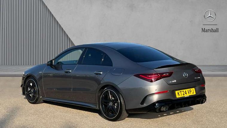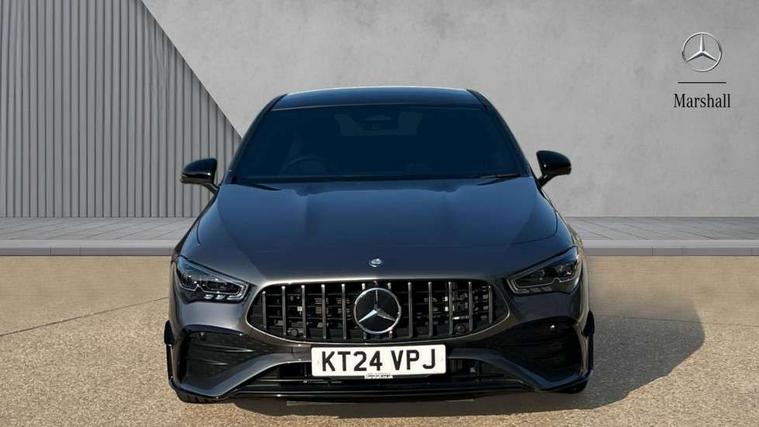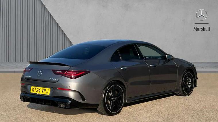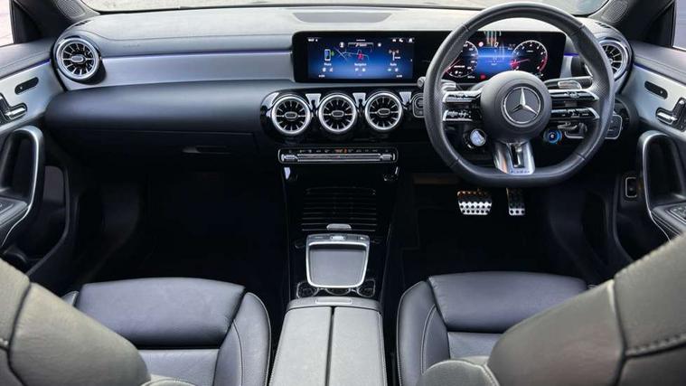 10.25 inch Instrument display with digital cockpit, 10.25 inch touchscreen central media display, 360 degree parking camera, Active lane keeping assist, AMG DYNAMIC SELECT with drive modes(Slippery, Comfort, Sport, Sport+, Individual and Race) incl drift mode via steering wheel shift paddles+Race Start, AMG speed sensitive power steering with two sets of steering characteristics, Attention assist - Monitors steering behaviour and long journey fatigue, Bluetooth connection, Car wash mode, Cruise control with limiter, Direct steer system, ECO start/stop function, Fluid level warning indicator for fuel, oil, coolant and washer fluid, Hard-disk navigation, Hey Mercedes Voice activation, Lamp failure indicator, MBUX augmented reality for navigation, Mercedes me connect including emergency call system, accident recovery, breakdown and maintenance management, Mercedes me remote services, Outside temperature gauge, Owners manual in English, Pre-installation of private car share, Radio aerial integrated into front and rear windshields, Service indicator (ASSYST), Smartphone integration with Apple CarPlay and Android auto, Traffic sign assist, Trip computer in multifunction display with current consumption indicator, Wireless charging in the front centre console, 4MATIC permanent four wheel drive, AMG performance 4MATIC+ with torque control distribution, AMG Ride Control suspension, Rear axle multi-link, DAB digital radio tuner, MBUX multimedia system, Mercedes Benz advanced sound system (225 W) with 10 speakers, 1 central speaker, speakers on doors, a tweeter on door, one sub woofer + boost amplifier, Pre installation for Mercedes Benz Link, USB (type C) ports (2) in stowage compartment and 1 in front of centre console, Adaptive brake lights, AMG emblem on the front instead of the "Mercedes-Benz" laurel wreath badge, AMG Front apron with flics as air deflector elements on the outer air intakes, AMG illuminated door sills with AMG lettering and with exchangeable cover, AMG Rear apron with specific diffuser look with four vertical fins and two round chrome plated tailpipe trim elements with a diameter of 90 mm, AMG Sports exhaust system with two round tailpipes measuring 90 mm in diameter attached in rear apron, AMG lettering plus ribbing on the inside of the, Body colour bumpers, Body colour door handles, Electric panoramic sunroof with automatic tilt and convenience closing fuinctions, rain sensor auto closing and electronic roller sunblind, Electric windows, Electrically adjustable and heated door mirrors with integrated LED indicators, Front splitter and trim elements on the louvres in the outer air inlets in silver chrome, Front wings with TURBO 4MATIC lettering, Hand free access, Headlamp assist automatic headlamp activation, Heated glass rear windscreen + timer control, High gloss beltline strips, High level LED third brake light, Integrated LED daytime running lights, Interior mirror with black reading lamps and frameless, LED tail lamp, Multibeam LED headlamps with adaptive highbeam assist plus, Privacy glass with dark tinting on rear side windows and rear window, Rain sensing windscreen wipers with two sensitivity settings, Rear boot, Rear fog lamp, Rear side wing doors, Rear wheel arch extensions AMG wheels, Variable front intermittent wipers, 3 seat bench in 2nd row, 40:20:40 split folding rear seat backrests, Air conditioning - Two zone thermotronic luxury automatic climate control with display, Air vents with surround in silver chrome, AMG Performance steering wheel in nappa leather, Automatic child seat recognition sensor, Black roof lining, Brushed stainless steel sports pedals with rubber studs, Electrically adjustable front memory seats including 4 way lumbar support, Floor mats with stitched AMG lettering, Fluorescent jacket, Front centre armrest with stowage, Heated front seats, Interior lighting - 64 colour Ambient lighting, Luggage net on driver/front passenger seat backrest, Manually height and reach adjustable steering column, Rear armrest with two integral cup holders for drinks, Rear head restraints, Silver coloured aluminium gear shift paddles on steering wheel, Single front passenger seat, Sport seats with fixed head restraints, Stowage compartment in centre console with retractable cover, Sunvisors with illuminated vanity mirrors, Twin front cupholders, Two outer rear seat isofix and top tether child seat fixing points, Aerodynamics pack - CLA, AMG Night package - CLA 35/45, Keyless go comfort pack - CLA, Light and sight pack - CLA, Mirror pack with Self dimming rear view mirror - CLA, Seat comfort pack - CLA, Active bonnet pedestrain safety measure which detects an impact and raises bonnet by 65mm, Adaptive brake assist with hold function and hill start assist, AMG high performance brake system with red painted brake callipers and black AMG lettering at the front, ventilated and perforated brake discs, Anti lock braking system (ABS) with brake assist, Black seat belts, Brake pad wear warning indicator, Childproof locks manually operated for rear doors and electrically operated for rear power windows, Crash responsive emergency lighting, Driver and front passenger head and sidebags, Driver and front passenger windowbags, Drivers knee airbag, Dual stage driver and front passenger airbags, Electric parking brake, Electronic stability programme with acceleration skid control, ESP curve dynamic assist, Exit warning, Front and rear seatbelt reminder, Front brake calipers with AMG lettering, Front passenger seat occupancy sensor, Sports braking system, Three point rear seat belts, Tyre pressure monitoring system, Warning triangle and first aid kit, Alarm system with immobiliser and interior protection -Thatcham category 1, Guard 360 deg vehicle protection - tow away protection with visual, acoustic warning, interior monitoring, preinstallation for parking damage, Remote central locking and crash sensor with emergency opening function, Light aluminium with longitudinal grain i