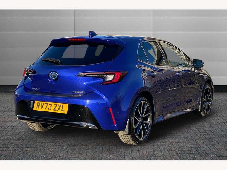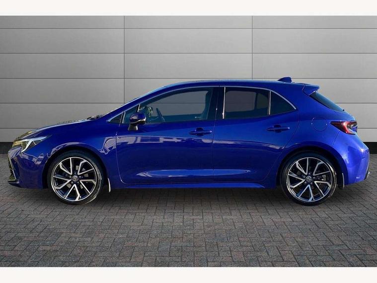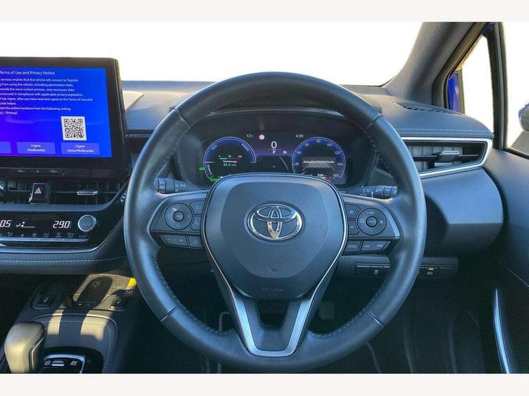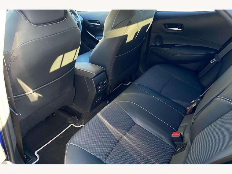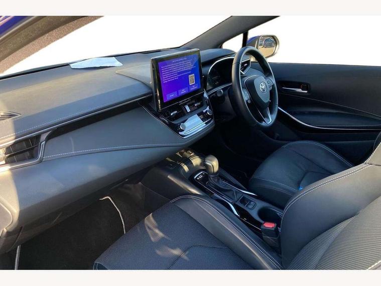 10.5" Multimedia display screen, Attention assist, Blind spot monitor and safe exit assist, Bluetooth telephone connectivity, Connected car functionality upgrade, tracker, remote status and e-care, Drive mode select (Eco, Normal), E-call, Electrically assisted power steering, EV drive indicator, Front and rear parking sensors with auto brake, Full Digital 12.3" TFT Digital Combimeter, Head up Display, Key reminder warning, Lane Departure Alert (LDA) switch on steering wheel, Memory on adjustable speed limiter, MyT connected services, Proactive driving assist (PDA), Rear cross traffic alert, Reversing camera, Smart entry and push button start, Smartphone integration with Apple CarPlay and wired android auto, Tailgate, Toyota remote services, Toyota smart connect navigation, Wireless charger, Gasoline particulate filter, Vehicle Stability Control (VSC), 6 speakers, AM/FM radio, DAB Digital radio, Front USB-C in centre console, Front USB-C in dashboard, Rear USB-C device charger, Smart voice assist/ Voice recognition, USB and Aux in connectors + 12V front outlet, Adaptive high beam system (AHS), Anti-jam protection on power windows, Auto headlight levelling system, Auto up and down function on all power windows, Automatic folding mirrors, Automatic headlights with high beam assist, Black centre and side air vents, Black metallic meshed front grille, Black toyota logo in front, Body coloured bumpers, Body coloured door mirrors, Body coloured front spoiler, Body coloured outside door handles, COROLLA alloy door scuff plates, Electrochromatic mirror, Follow me home headlights, LED daytime running lights, LED front fog lights, LED High mounted stop light, LED multi beam headlights, LED rear combi lights with LED lightguide, Noise reduction layer on windscreen, Piano black diffuser, Power adjustable heated door mirrors, Power front windows, Power rear windows, Privacy glass with UV filter, Rain sensing wipers, Rear bumper decoration with chrome plated inserts, Rear side wing doors, Rear under guard with chrome ornament, Rear window defogger, Rear window wiper, Reverse tilting door mirrors, Roof spoiler, Satin chrome insert on front air vents, Satin chrome insert on front door assist grips, Satin chrome inserts on rear passenger air vents, Shark fin antenna, Tailgate release with push button, Time adjustment on intermittent wiper, Turning signal integrated indicators in door mirrors, Unique grille pattern, Unique lower skirt, Unique side rocker with black insert, UV-filter on driver and passenger windows, 2 Shopping bag hooks in luggage compartment, 3 rear headrests, 3 seat bench in 2nd row, 3 spoke leather steering wheel with satin insert + gear knob, 4 tie down hooks in luggage compartment, 60/40 split folding rear seat, Adaptive cruise control (ACC) switch on steering wheel, Adjustable speed limiter switch on steering wheel, Audio, multimedia and telephone switches on steering wheel, Black armrest on centre console box, Black gear shift console, Boot light, Centre room light, Driver and front passenger personal light, Driver and passenger assist grip, Driver and passenger seatback pockets, Driver and passenger sun visor with mirror and light, Dual zone automatic air conditioning with ECO mode switch, Front and rear cup and bottle holders, Front door pockets, Front head restraints, Front passenger seat, Front sliding synthetic leather armrest, Heated seats, Illuminated entry system in room lamp, ISOFIX seat fixing (2 fixings on rear outer seats), Leather gear shift with satin chrome on gear shift console, Manual height adjustable for driver and front passenger seat, Manually tilt with sliding driver and front passenger seat, Parcel shelf, Perforated leather upholstery, Pollen filter, Power window switches with satin chrome inserts, Rear air conditioning, Rear armrest with 2 cupholders, Rear passenger coat hooks (2), Remote air conditioning, Satin chrome inside door handles, Satin chrome surround on heater control panel, Satin chrome surround on speedometer, Sliding armrest on centre console box, Slow opening glovebox with lights, Sports seats, Textile floor mats, Tilt/telescopic steering column, Voice recognition switch on steering wheel, Whiplash Injury Lessening (WIL) feature (active headrest) for seats, White ambient lighting on open tray and front cup holder, Toyota safety sense 3 pack - Corolla, 3x3 point rear seatbelts, Adjustable driver and front passenger seat belt extender to top anchor point, Anti lock braking system + Electronic brake force distribution, Brake assist function, Child locks on rear doors, Downhill Assist Control (DAC), Electronic parking brake, Emergency brake light signal (EBS), Front passenger airbag on/off switch, Front seatbelt reminder, HAC - Hill start assist control, Rear seat belt reminder, Seatbelt pretensioners and force limiters, Supplemental restraint system (SRS) 7 airbags - dual driver, dual side curtain, side impact and driver knee airbags, Traction control, Tyre pressure warning system, Acoustic vehicle alert system (AVAS), Alarm with motion sensor and immobilizer, Power passenger window lock, Remote central locking + deadlocks, Satin chrome dash trim, Soft touch texture on upper dashboard, Stitching on lower dashboard, Stitching on upper dashboard, 18" Dark grey machined face 5 double spoke alloy wheels, Tyre repair kit, Unique wheel finish with red wheel cap,