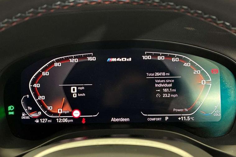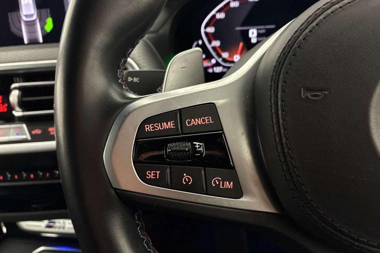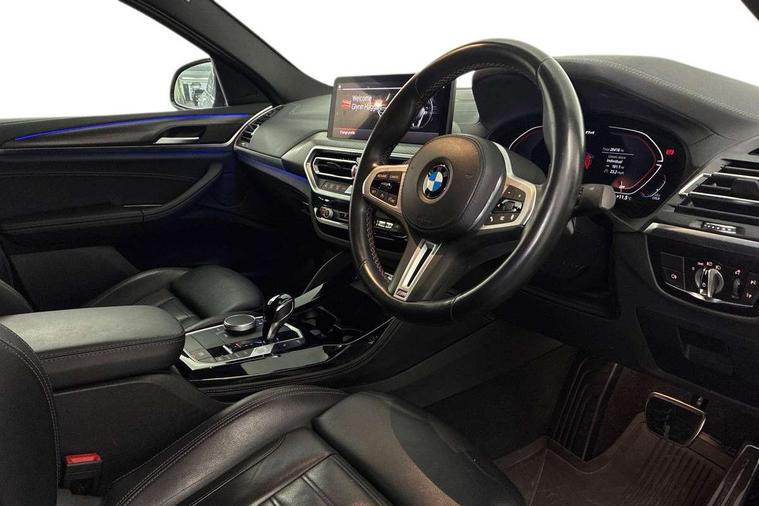 Active Guard, Attentiveness assist, Auto start-stop, BMW ConnectedDrive online services, BMW Live Cockpit Professional with 12.3" instrument display with Intelligent Voice Assistant, BMW Teleservices, Brake pad wear indicator in front and rear, Check Control warning system for monitoring of lights and door/luggage compartment open warning, Condition based service - BMW service history, electronic service booklet, integrated owner's handbook, Electric bootlid, iDrive Controller with 8 favourite buttons, Instrument cluster with speedometer with mph readout, tachometer, fuel gauge and oil temperature gauge, Lights on warning by audio warning signal when ignition is switched off, Oil sensor for level and grade, warning by check control system, On board computer - average speed+fuel consumption, service interval, clock/date, odometer/trip meter, outside temperature display and ice warning, Optimum shift indicator, Personal Profile - automatic lock when driving away selectable, Run flat indicator, Variable sports power steering, Common rail technology, Diesel particulate filter, Double VANOS, Drive performance control - ECO PRO, comfort and sport modes, EU6 emissions management, Five link rear suspension, High precision injection, Larger capacity fuel tank, M Adaptive suspension, M Sport differential, Performance Control, Sport automatic transmission with gearshift paddles, Twin scroll turbocharger with Valvetronic, BMW professional radio/CD/MP3, DAB tuner, Acoustic glass, Automatic windscreen wipers and automatic headlight, Black chrome tailpipe finishers, Black finish on B pillars, Black kidney frame and nuggets painted in high-gloss black, BMW emblem base at rear in high-gloss black, Body colour door handles, Body colour roof mouldings, Body coloured bumpers, Direction indicator, side repeaters, integrated in exterior mirrors, Dynamic brake lights, Electric folding wing mirrors with auto dimming, Electric front and rear windows with fingertip open/close + anti-trap facility and comfort closing function, Electrically adjustable door mirrors, Electro-chrome auto-dimming rear view mirror, Energy absorbing foam within the front bumper, Exhaust tailpipes - dual, round, split left and right, Extended high gloss shadow line, Front and rear bumper system with replaceable deformation elements, Full LED L shape 3D tailights, Glacier silver metallic matt in side sills, Green tinted heat insulating glass, Heated windscreen washer jets, High beam assistant, High gloss black front door sill finishers with BMW designation, LED daytime running lights, LED High level third brake light, LED Indicators, Lightweight engineering, M aerodynamic bodystyling, M black mirror caps, M designation side exterior badges, Model designation, Shark fin antenna, Sun protection glass, Visible VIN plate, Welcome light carpet, Windscreen wipers with adjustable interval, 12V power socket in front centre console, 3 zone automatic air conditioning, 40:20:40 split folding rear bench seat, Ambient lighting, Anthracite headlining, Automatic interior light when door is opened/ignition switched off or via remote key, Electric adjustable front seats with memory function for driver seat, Foldable storage floor with compartment, Front and rear bottle holders integrated into door trim storage compartments, Front and rear side armrests integrated into door trim, Front centre armrest with storage compartment, Front/rear reading lights, Heated front seats, Height adjustable front/rear head restraints, Interior lighting - front centre over interior mirror with soft light, rear centre and front and rear footwell lighting, Leather gear knob, Luggage compartment lighting, M Sport multifunction leather steering wheel, Parcel shelf removable and storable under boot floor, Reach + rake adjustable steering column, Rear centre armrest with 2 cupholders, Storage compartment in rear centre console and front/rear door trims, Storage compartment lighting in front center armrest, Sunvisors with vanity mirrors and ticket pocket, Three rear headrests, Toolkit located in luggage compartment, Two front cupholders with removable oddments tray/lid, Connected package pro - X4, 3 point seatbelts on all seats, Active protection, ADB - Automatic Differential Brake, Anti-lock braking system (ABS) with brake assist, Automatic Stability Control (ASC), Battery safety cut-off, BMW emergency call, Brake drying, Brake energy regeneration, Braking pre-tensioning, CBC - (Cornering brake control), Child proof locking system in rear door, Child seat ISOFIX attachment rear outer seats, Crash Sensor - activation of central locking release, hazard warning light and interior lighting, Deactivation of fuel pump in the event of a crash, Driver/front passenger airbag, Driver/front passenger side airbags, Dynamic brake control, Dynamic stability control + (DSC+), Dynamic Traction Control - DTC, Electromechanical parking brake, Front and outer rear pyrotechnic belt tensioners, Front passenger manual airbag deactivation, Front seatbelt force limiters, Hill descent control, Hill start assist, ITS head airbags for front/rear, M Sport seatbelts, Seat belt security check for driver and front passenger, Side impact protection, Twin horns, Tyre pressure sensors with three level warning strategy, Ventilated front and rear disc brakes, Warning triangle and first aid kit, Alarm system (Thatcham 1) with remote control and electronic engine immobiliser, Central locking switch for all doors, fuel filler cap and luggage compartment, Incorrect fuel protection system, Start/stop button with comfort go keyless engine start and auto start stop deactivation button, Two remote control integrated key, Reduced rolling resistance tyres,